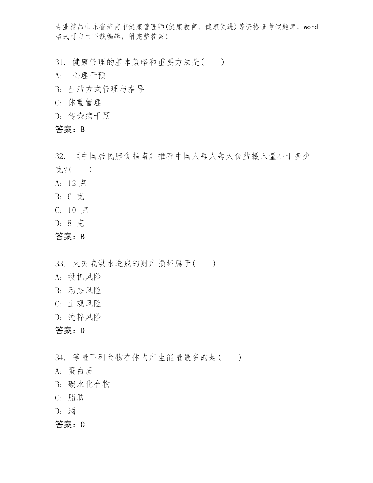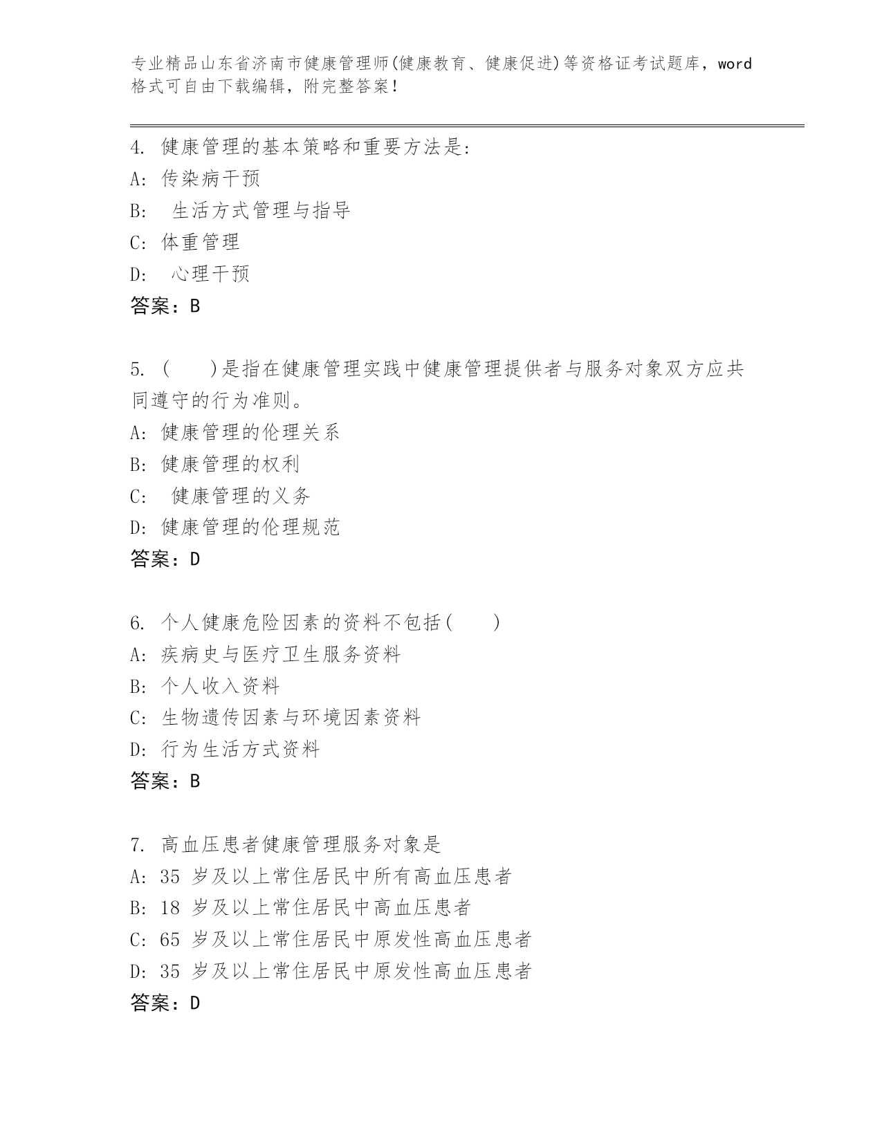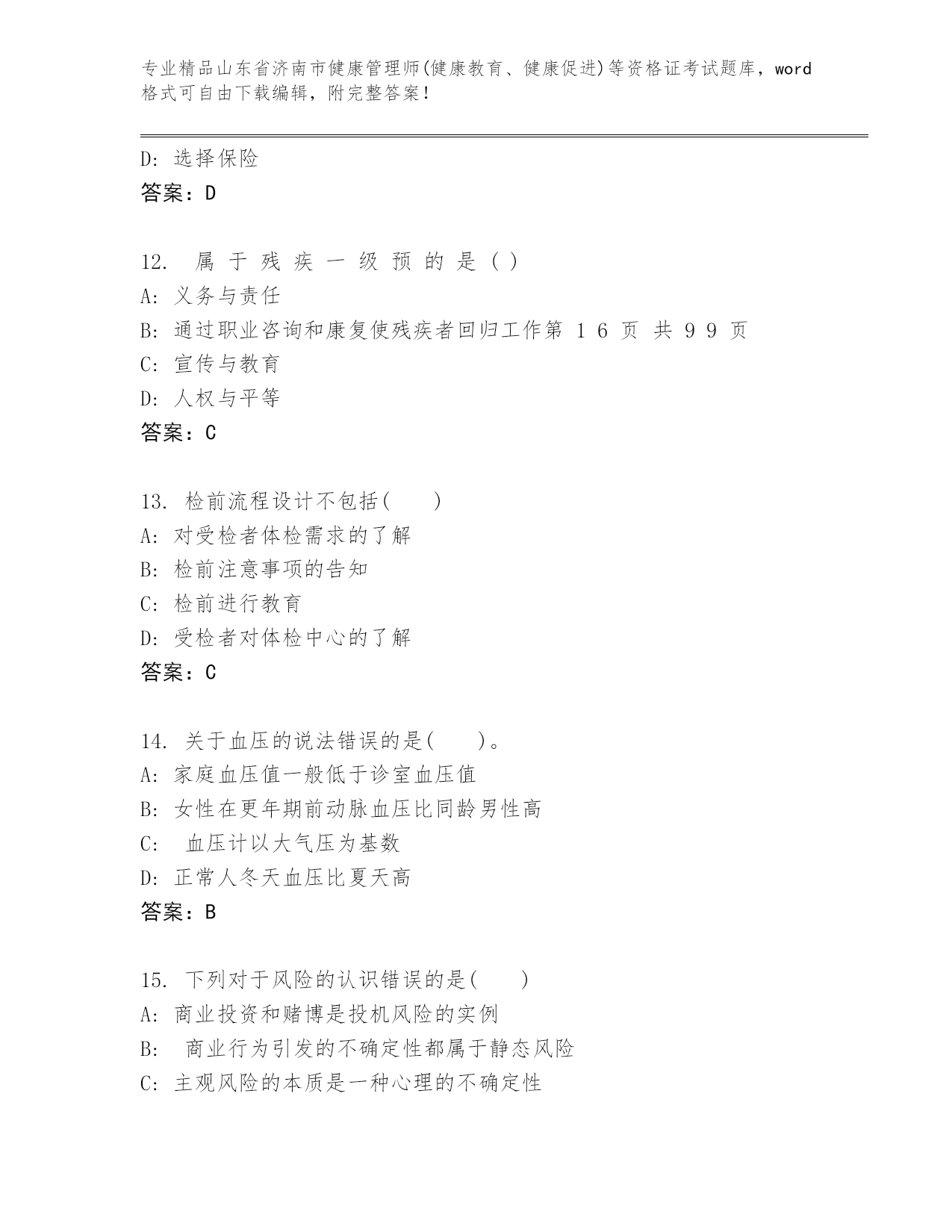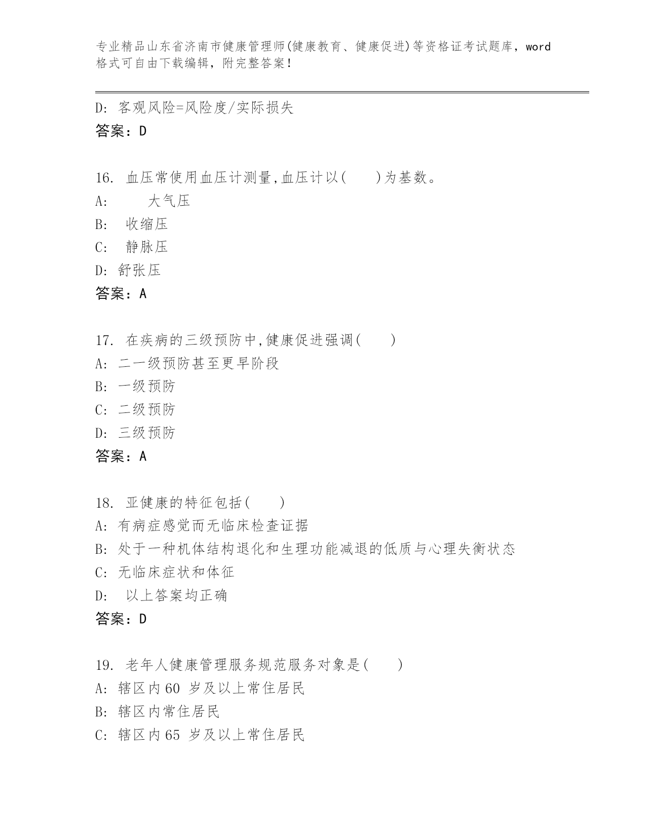 精心整理山东省济南市健康管理师(健康教育、健康促进)等资格证考试大全答案下载