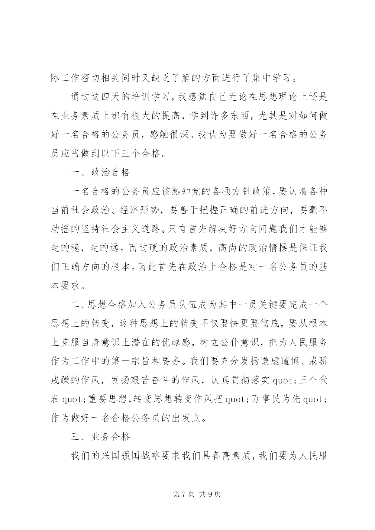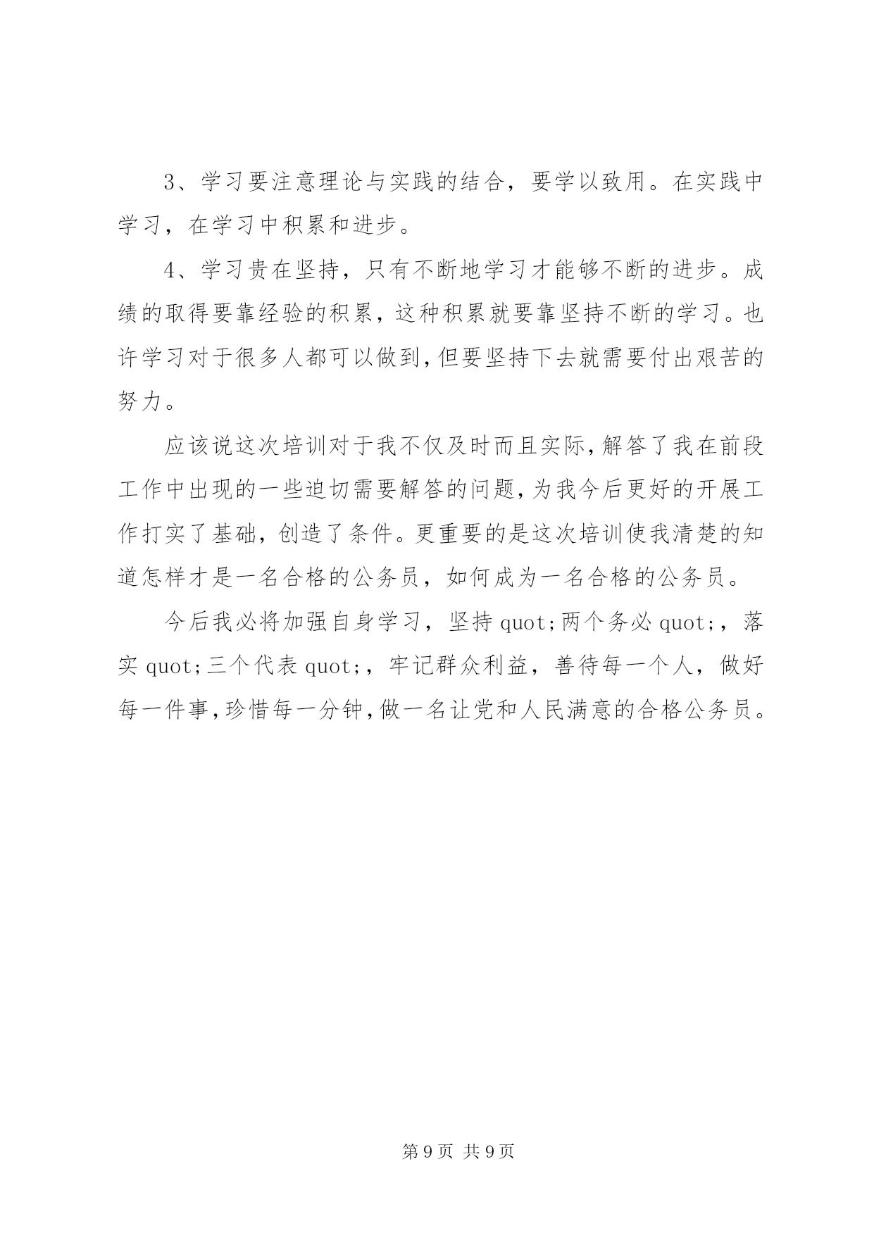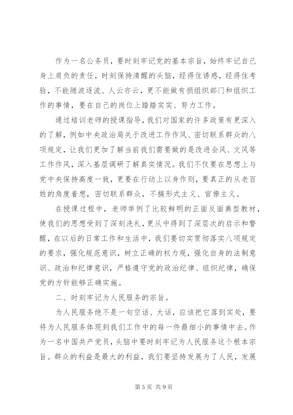 第PAGE\*Arabic\*MERGEFORMAT9页共NUMPAGES\*MERGEFORMAT9页初任公务员培训心得体会新录用公务员初任培训心得体会1在公务员初任培训这段时光里,在培训学校领导和老师的精心组织下,我始终以高昂的热情、严谨的态度全身心地投入到学习当中去,比较好的完成了培训任务,培训之后收获很多。一、明确了主角,提高了认识。透过学习培训,我深刻认识到作为一个国家公务员为人民服务并不是一件简单的事情,不仅仅要有主观上的热情和干劲,还要求有扎实的业务知识和作为公务员务必具备的潜力,才能到达为人民服务的要求才不会被人民淘汰。首先,公务员务必是人民的公仆,而不是凌驾于人民头上的官,我们最主要的目标就是为人民群众带给最大、最多、最好的服务。第二,公务员队伍务必是一个高效的团队。在高度的服从之下的同时,也要具有必须的能动决定潜力。高效还要求公务员精通业务知识和行政知识,具备较强的协调潜力,并且这些知识和潜力也要随时代的快速发展而不断更新。所以一名合格的公务员务必有较强的学习潜力和强劲的动力。二、增长了知识和见识,提高了潜力。为了让我们尽快地掌握为履行职责所务必的基本知识,为今后的工作做好准备。透过学习公务员法,我们了解了公务员的权利和义务。透过学习公务礼仪,我们了解了公务员还要有一个良好的个人形象。公文写作与处理是公务员的必修课,掌握了必须的公文写作方法和技巧hellip;hellip;在学习之余大家认真整理笔记、相互交流学习心得,巩固了学习成果。当然我们不能把学习的知识仅仅停留在书本上,要理论和实践相结合,做到知行统一,学以致用。为广大人民群众和社会带给优质高效的服务。三、认清了形势,看到了差距。知识经济是我们面临的机遇和挑战,这对国家公务员提出了更高的要求。知识经济要求我们应当具备:1、较高的理论素养,坚定的政治信念和坚强的党性。只有具备了较高的理论素养,才能在当今这个多元化的政治经济格局中把握时代的脉搏,不被表面现象所迷惑。2、既有深度又有广度的合理的知识结构。国家公务员要加速更新知识,树立创新意识。国家公务员只有具备创新奋进的精神,不因循守旧,不满足于现状,才能及时吸收、消化新知识,适应新状况,否则有可能被甩在时代的后面。3、国家公务员要不断提高决策水平和管理水平。为了适应四个现代化的要求,国家公务员应努力学习现代管理理论和方法,使自我不但具有必须的科学技术的造诣,而且有相应的组织潜力、协调潜力、决断潜力以及经济核算潜力,提高决策、管理水平。四、学员之间增进了了解,建立了深厚的友谊。我们这些学员有的是市里的各部门、有的是镇乡街道,大家来自各个不一样的单位和岗位,这次培训是难得的沟通和交流的机会。在这十多天的时光里,我们互相关心,互相帮忙,互相学习,大家增进了了解建立了深厚的友谊。本次初任培训虽然时光短暂,却有着重要的好处。初任培训只是打下了一个理论基础,今后工作中将遇到的各种问题和各种复杂状况我将用心做到:一是要加强学习,坚持谦虚谨慎的作风。不断加强政治理论的学习,加强法律知识的学习和行政管理等知识的学习,提高自我的理论素养、知识水平和实践潜力。二是要增强为人民服务的意识。时刻牢记为人民服务的宗旨。要牢固树立立党为公,执政为民的观念,树立正确的权力观,增强廉政意识,严格自律。努力成为贴合人民不断提高的要求的国家公务员,为社会主义建设事业做出应有的贡献。新录用公务员初任培训心得体会2作为20xx新录用公务员,有幸参加了新录用公务员初任培训学习,认真系统地学习了由市人社局有关领导和党校老师就十x届x中全会关于全面深化改革的相关精神、公务员职业道德建设、公务员公文写作、公务员行为规范与政务礼仪、公务员党风廉政建设及应对突发事件知识等各方面领域理论知识,内容涵盖了机关工作的方方面面,使大家对机关工作有了深刻的了解,增强了做好本职工作的信心。此次培训的学员都是通过笔试、面试层层选拔后被录用的。在全新的工作环境中,相对来讲,我们具备。年富力强、精力充沛;思想活跃、思维敏捷;适逢自我发展的良好时机等优势,这也的确能为我们今后开展工作提供益处。但与此同时,我们也存在。社会阅历浅、缺乏实践经验,解决矛盾和问题的能力不够;世界观的改造有待于在实践中不断地培育和强化;没有经历过艰苦环境的磨练,艰苦奋斗精神不足等问题。通过培训,我认清了公务员岗位的重要、认清了自身的不足和努力方向,更使我深刻的认识到,要成为一名合格的公务员,必须不断加强学习,全方位提高自身的素质能力,不断迎接新挑战,从而成为深化改革的亲历者、实践者、维护者、捍卫者。我认为做好一名合格的公务员应当做到以下几点。一、坚定思想政治。要做一名合格的公务员,首先应该在思想政治方面严格要求自己,把握正确的思想政治方向。要认真学习好党的各项路线、方针、政策,