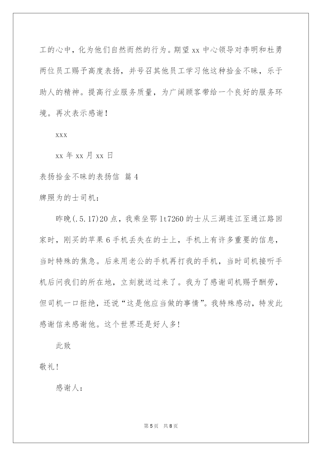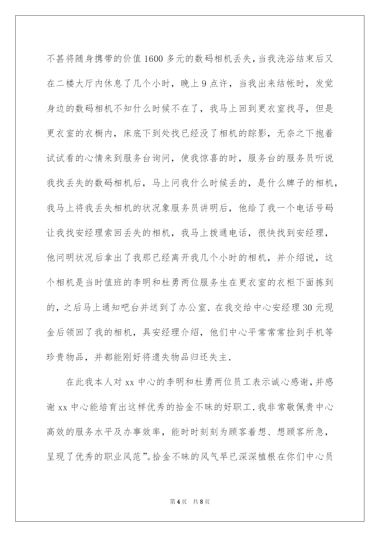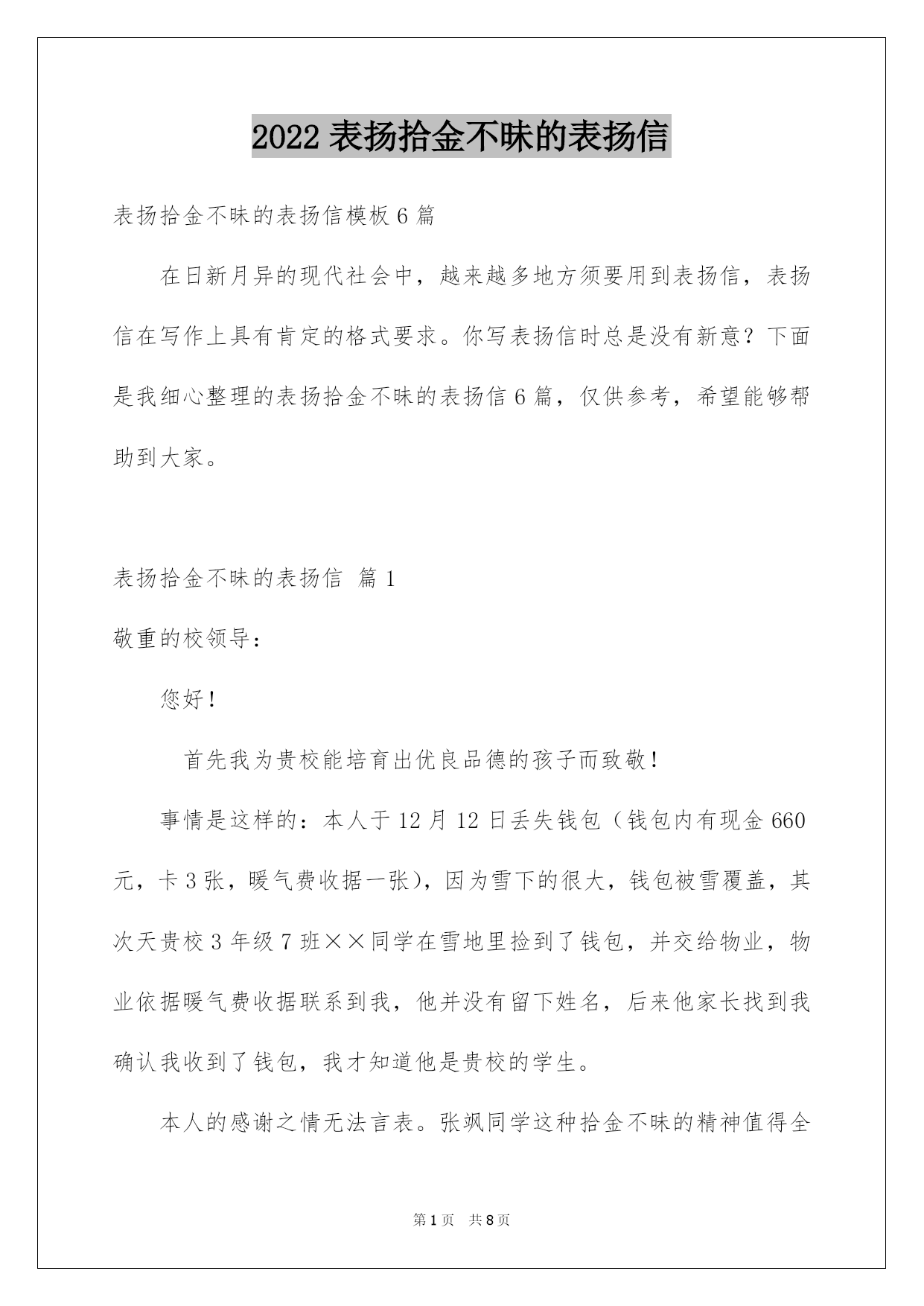 2022表扬拾金不昧的表扬信【编辑原创推荐】.docx