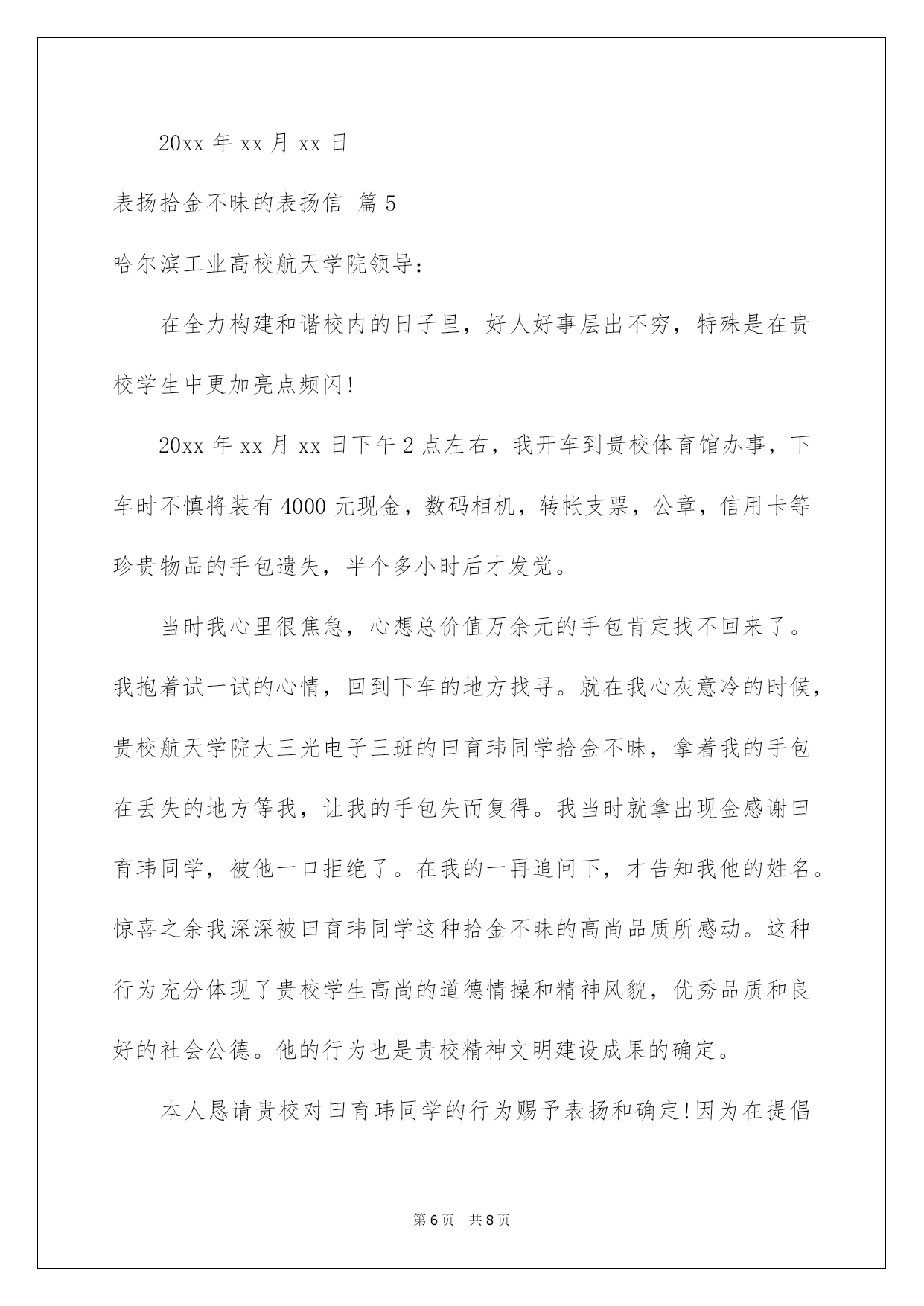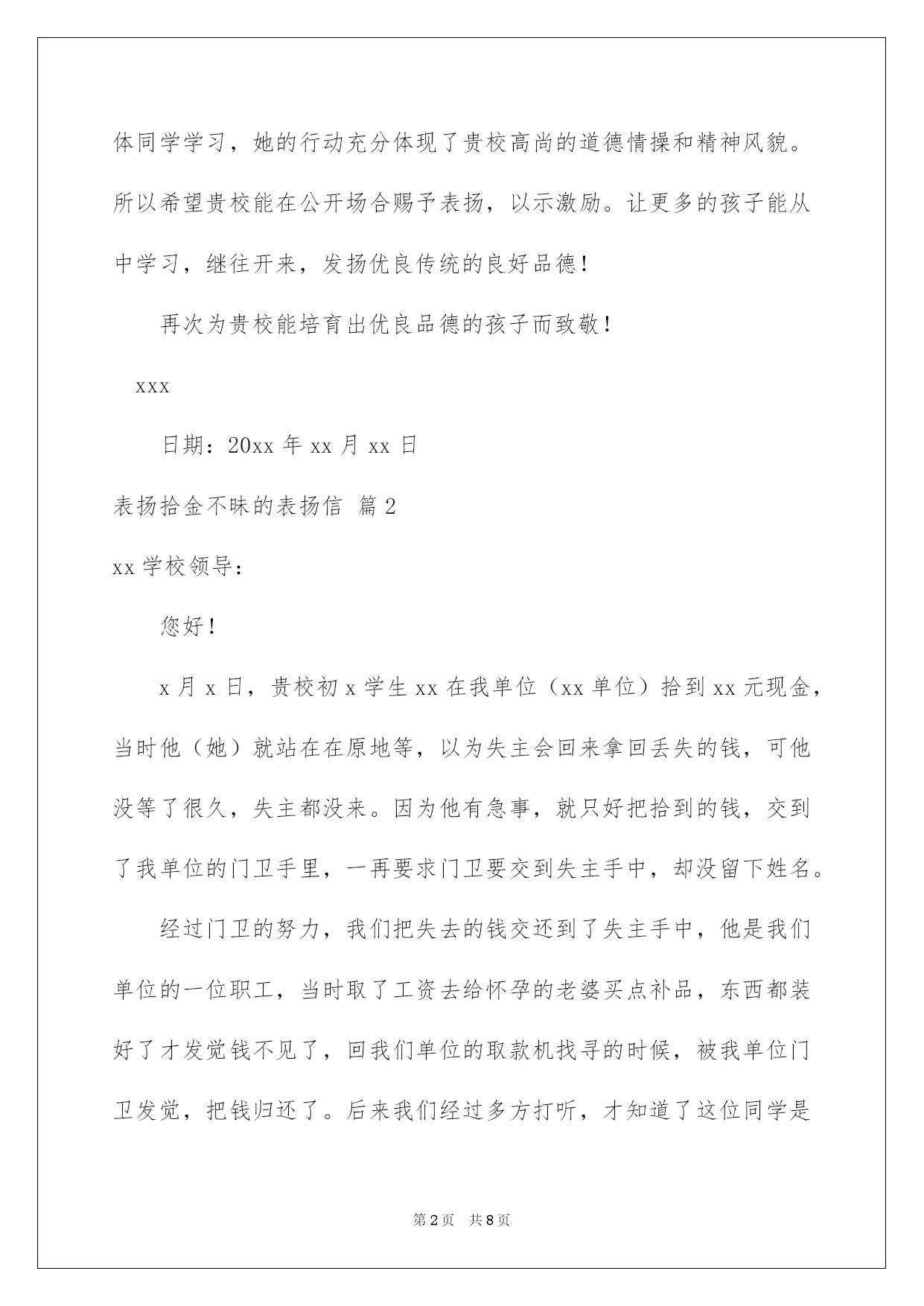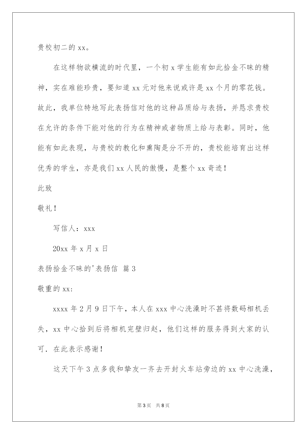 2022表扬拾金不昧的表扬信【编辑原创推荐】.docx
