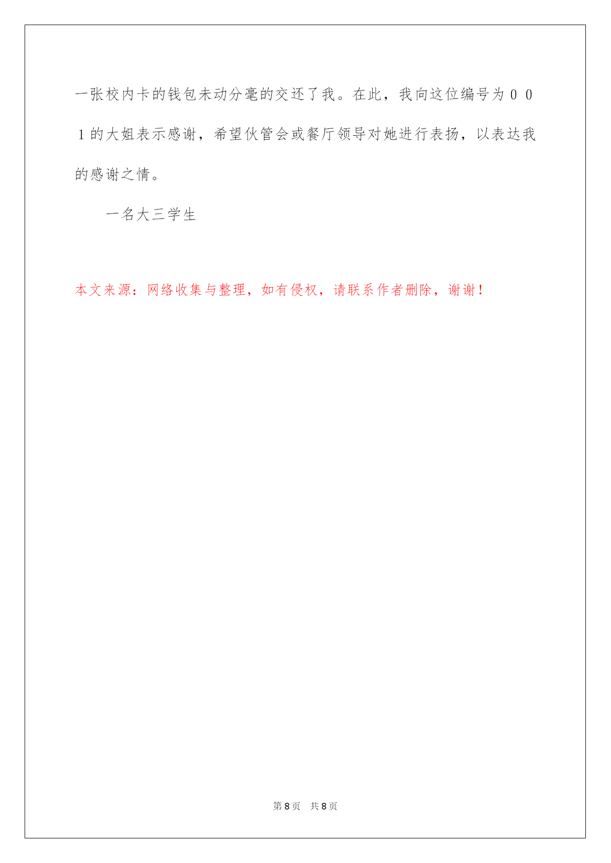 2022表扬拾金不昧的表扬信【编辑原创推荐】