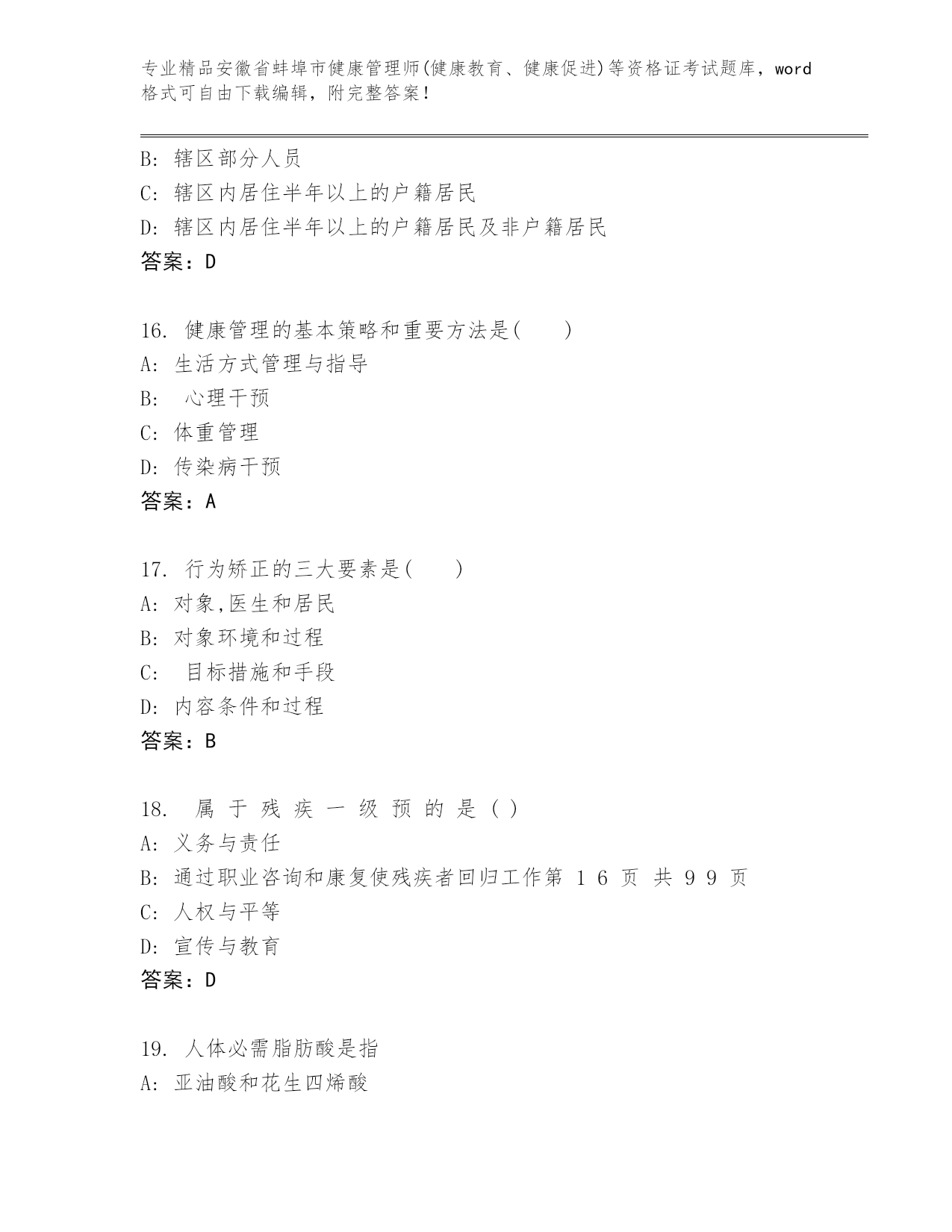 历年安徽省蚌埠市健康管理师(健康教育、健康促进)等资格证考试通用题库【易错题】.docx