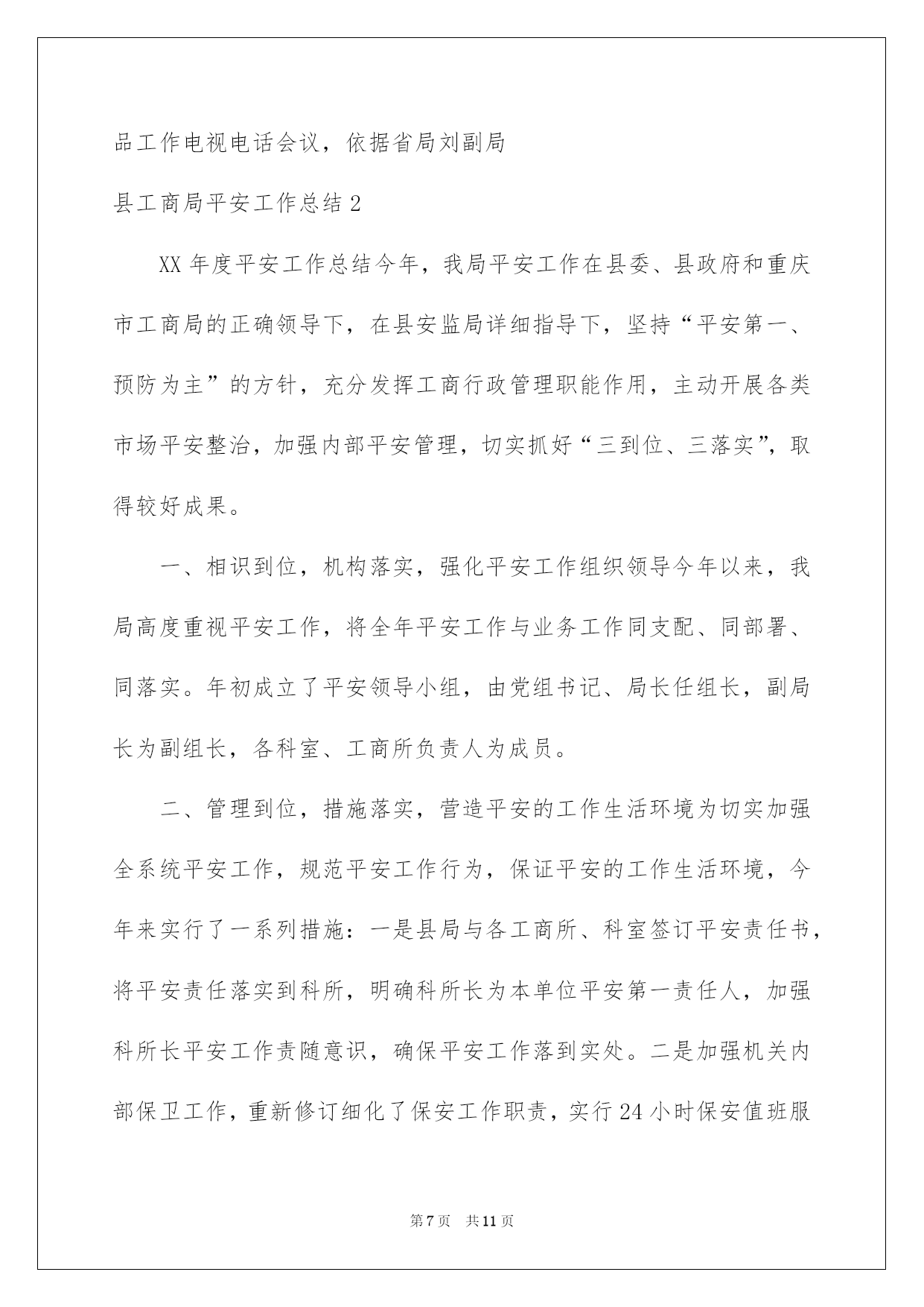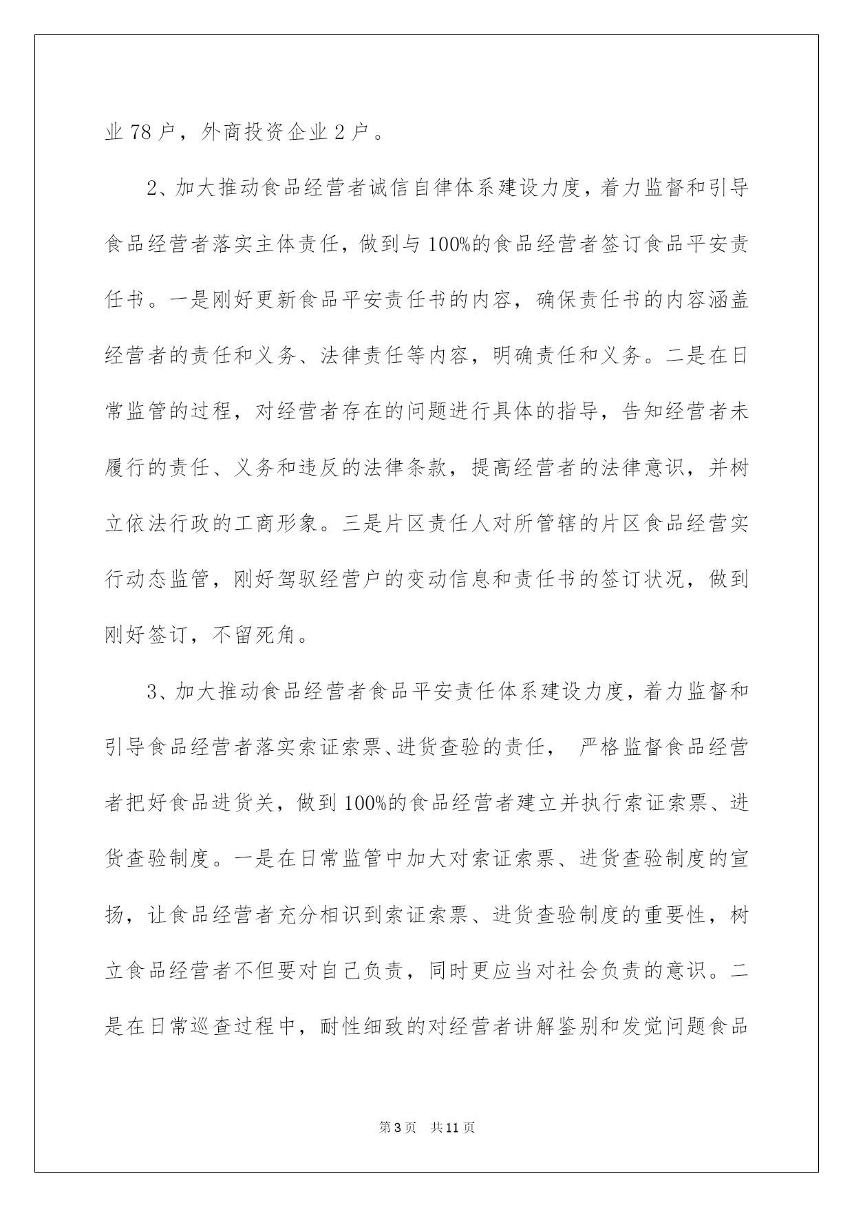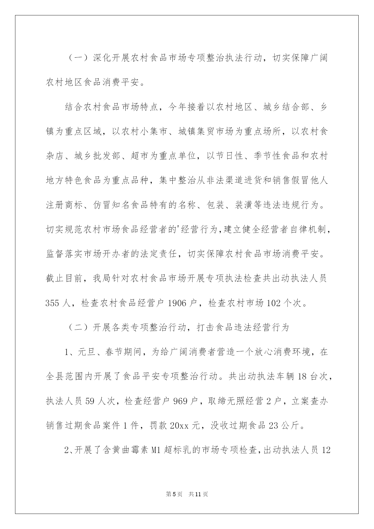第PAGE\*Arabic\*MERGEFORMAT11页共NUMPAGES\*Arabic\*MERGEFORMAT11页第PAGE\*MERGEFORMAT11页共NUMPAGES\*MERGEFORMAT11页第PAGE\*MERGEFORMAT11页共NUMPAGES\*MERGEFORMAT11页第PAGE\*MERGEFORMAT11页共NUMPAGES\*MERGEFORMAT11页第PAGE\*MERGEFORMAT11页共NUMPAGES\*MERGEFORMAT11页第PAGE\*MERGEFORMAT11页共NUMPAGES\*MERGEFORMAT11页第PAGE\*MERGEFORMAT11页共NUMPAGES\*MERGEFORMAT11页第PAGE\*MERGEFORMAT11页共NUMPAGES\*MERGEFORMAT11页第PAGE\*MERGEFORMAT11页共NUMPAGES\*MERGEFORMAT11页第PAGE\*MERGEFORMAT11页共NUMPAGES\*MERGEFORMAT11页第PAGE\*MERGEFORMAT11页共NUMPAGES\*MERGEFORMAT11页2022县工商局安全工作总结县工商局平安工作总结总结是在某一时期、某一项目或某些工作告一段落或者全部完成后进行回顾检查、分析评价,从而得出教训和一些规律性相识的一种书面材料,它可以促使我们思索,让我们好好写一份总结吧。总结怎么写才不会一模一样呢?以下是我帮大家整理的县工商局平安工作总结,希望能够帮助到大家。县工商局平安工作总结120xx年,我县工商局在市工商局和县委政府的正确领导下,根据省、市工商局的统一部署,全面落实全国工商行政管理工作会议和云南省工商系统食品平安监管工作会议的支配,以科学发展观为指导,切实履行流通领域食品质量监管职能,把加强食品平安、保障消费者的身心健康与人身平安,作为践行执政为民的动身点和落脚点。以保障流通环节食品平安为目标,坚持标本兼治、重在治本和打防结合的原则,深化开展流通环节整治执法行动,强化日常规范监管,推动完善经营者自律体系,健全和落实食品平安监管各项制度,主动构建长效监管机制,切实维护食品市场秩序,主动促进经济社会平稳较快发展和社会和谐稳定。一、狠抓食品平安监管,全面推行“四个百分百”XX县工商局在流通环节食品平安监管工作中,根据市局的工作要求和部署,狠抓食品平安监管,全面推行“四个百分百”:1、加大推动食品平安日常监管规范化建设力度,着力提升食品平安监管依法行政水平,做到100%的食品经营户证照齐全合法。在食品平安监管工作中,我局结合实际,突出重点,坚持标本兼治、打防结合、分类监管、综合治理的原则,一是在作出食品流通许可确定的过程中,在遵循便民、高效的基本原则的同时,严格把好审核关,依据日常监管过程中驾驭的信息和当事人提出的行政许可申请,对不符合条件的提出整改要求,条件符合后发放行政许可;二是在个体工商户验照、换照过程中,对实际不经营的经营户,一律要求变更许可登记项目后在进行验照、换照,确保登记信息精确有效,对尚未取得食品流通许可的,取得行政许可后方可验照、换照。三是依据有关要求,规范乳制品等重点监管食品的行政许可行为。截止11月,我县现有各类流通环节食品经营主体1244户,其中个体工商户1164户,内资企业78户,外商投资企业2户。2、加大推动食品经营者诚信自律体系建设力度,着力监督和引导食品经营者落实主体责任,做到与100%的食品经营者签订食品平安责任书。一是刚好更新食品平安责任书的内容,确保责任书的内容涵盖经营者的责任和义务、法律责任等内容,明确责任和义务。二是在日常监管的过程,对经营者存在的问题进行具体的指导,告知经营者未履行的责任、义务和违反的法律条款,提高经营者的法律意识,并树立依法行政的工商形象。三是片区责任人对所管辖的片区食品经营实行动态监管,刚好驾驭经营户的变动信息和责任书的签订状况,做到刚好签订,不留死角。3、加大推动食品经营者食品平安责任体系建设力度,着力监督和引导食品经营者落实索证索票、进货查验的责任,严格监督食品经营者把好食品进货关,做到100%的食品经营者建立并执行索证索票、进货查验制度。一是在日常监管中加大对索证索票、进货查验制度的宣扬,让食品经营者充分相识到索证索票、进货查验制度的重要性,树立食品经营者不但要对自己负责,同时更应当对社会负责的意识。二是在日常巡查过程中,耐性细致的对经营者讲解鉴别和发觉问题食品的相关学问,让经营者自觉抵制假冒伪劣商品和不合格食品。三是对检查过程中发觉