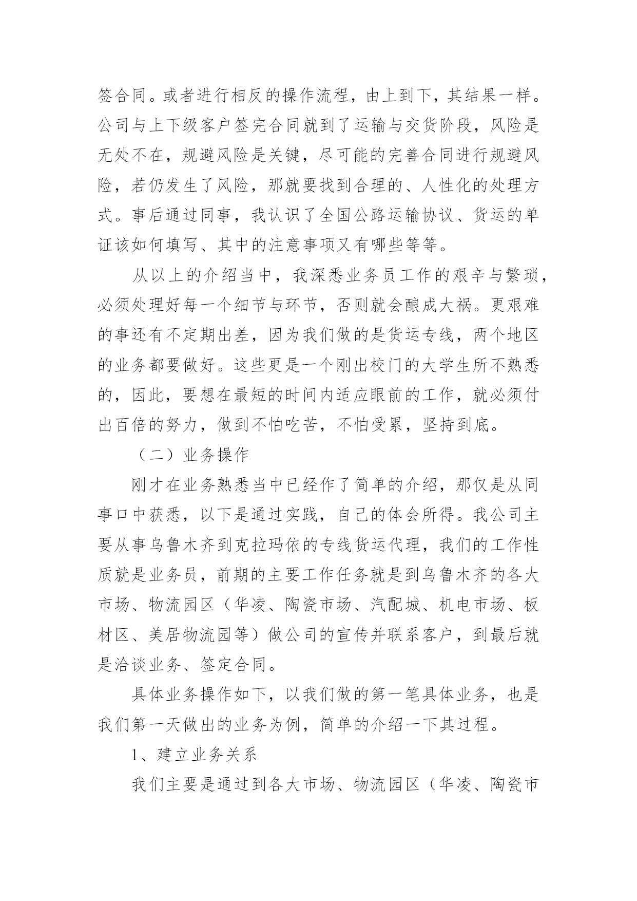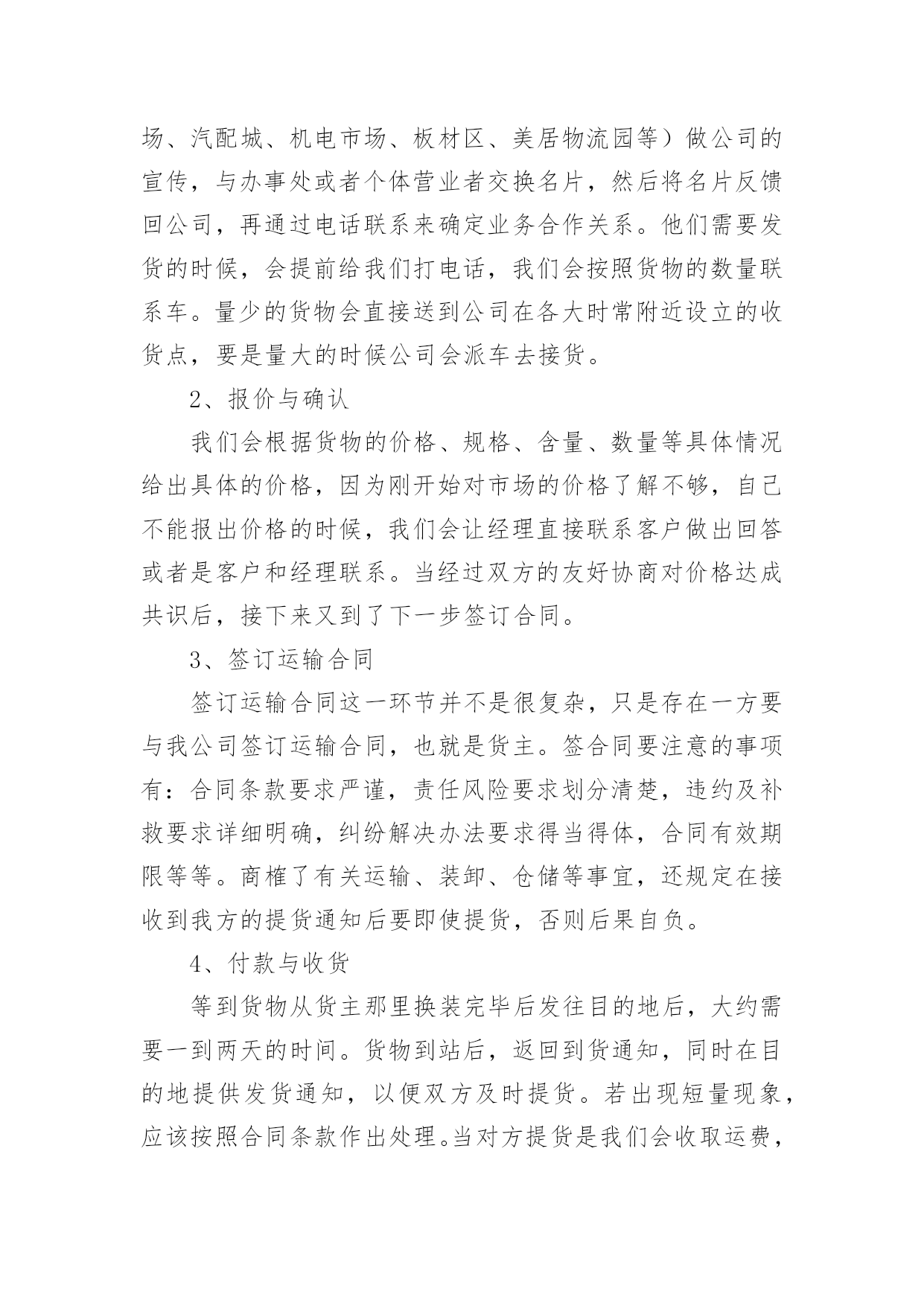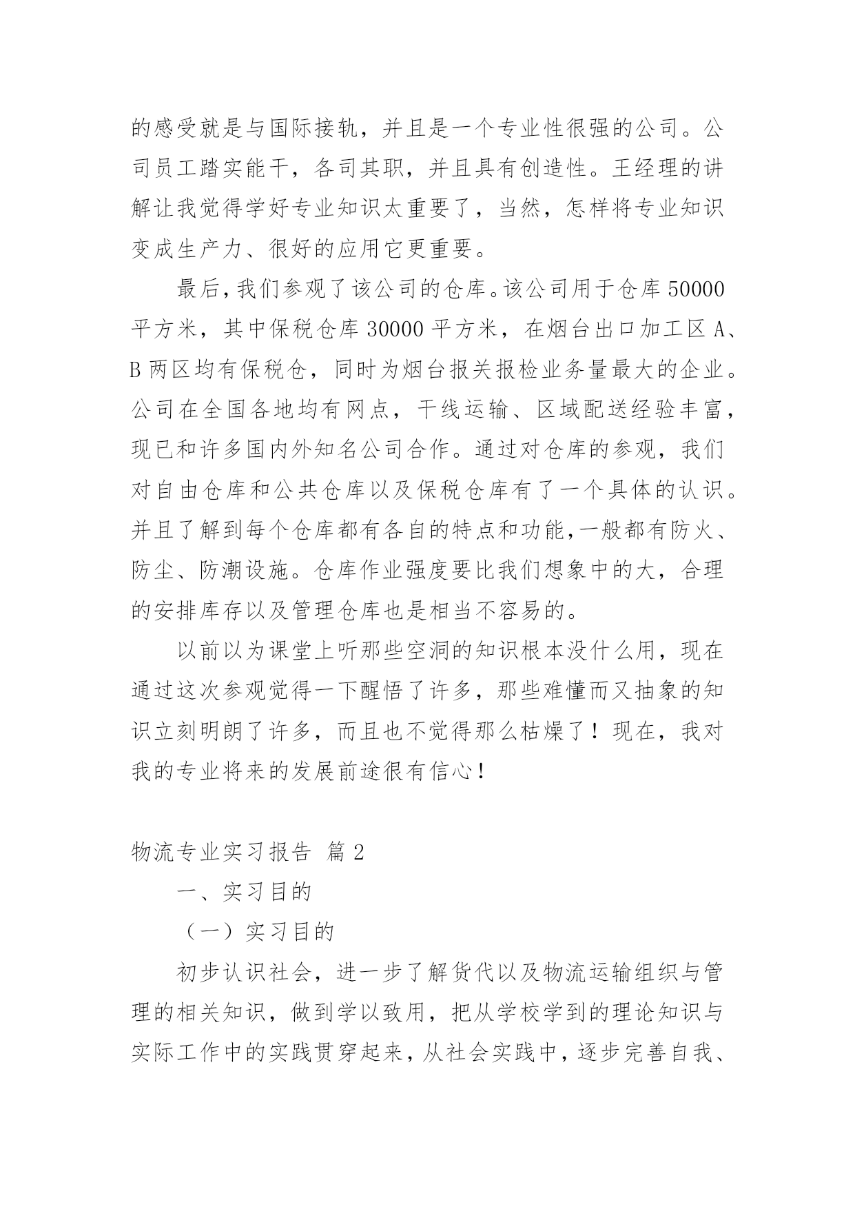 物流专业实习报告【必备】物流专业实习报告4篇随着社会不断地进步,报告十分的重要,我们在写报告的时候要避免篇幅过长。我敢肯定,大部分人都对写报告很是头疼的,以下是小编收集整理的物流专业实习报告4篇,欢迎阅读与收藏。物流专业实习报告篇1为期两周的终于结束了,我们还意犹未尽,感受颇丰。这次实习是以参观为主,学校里的刘老师主要负责我们这次实习。她带领我们三个班的同学在两周内共参观了六个地方,它们分别是:宅急送物流配送中心、北明全程保税物流、家家悦物流、烟台中外运国际物流有限公司、烟台福山上汽实业有限公司、东方海洋。学校里的班车负责接送我们。这次实习的目的主要是了解第三方物流物流服务的特点、主要设备和作业流程,通过实习将理论与实际操作相结合,在实践中提高运用知识的能力,锻炼实际操作的能力,为今后的学习工作积累经验。这次实习让我明白专业知识应与实践相结合,这样才能更高的运用知识,并在工作中发挥知识的力量。这次实习让我受益匪浅!汽车载着我们来到了xx宅急送公司,这是他们的一个分公司。首先它给我的感受是地方不大,但却整洁有序。每个工人都穿着统一的工作服,而且也十分热情。进入院内我们并没有马上参观,而是宅急送经理给我们做了个简单的公司介绍。经他的介绍,我们了解到宅急送于19xx月18日,在北京一个不足20平米的小屋里成立,专门从事小件快运。截至20xx年,宅急送总资产超过2亿元,员工8000名,车辆1500台,年货物周转量3200万件年递增率超过65%,为“20xx年中国成长企业百强”第4名,“20xx国最具竞争力的物流企业”。由此可见,它的成长是多么的不容易。我还注意到宅急送的商标,是一个猴子拎着一个包裹,好像还翻了个跟头,整个商标采用绿色描绘。后来得知商标的寓意。猴子使人想到灵敏快捷、一个跟头十万八千里的孙悟空,拎着的包裹代表从事的小件快运,圆圈寓意门到门的服务,绿色象征生命,象征宅急送永远充满活力。听完经理的介绍,我们开始正式参观了。这次参观由宅急送公司的林姐负责给我们介绍。进入库房首先看到的是一台分拣机,分拣机负责将到达的货物分拣出来,再统一安排配货发送到各个地方。紧接着映入眼帘的是各个进货港和发货港。这些区域是用来存放货物的(包括到站的货物和分拣后待发的货物)。这些区域空间很小,但流通量却很大,可见对工人的工作效率要求很高。林姐告诉我们宅急送的合作伙伴很多,像诺基亚、爱普生、西安杨森、熊猫移动、浪潮LG、波导等国际国内上千家著名企业都有很好的合作,结下了深厚友谊。现在库房里还存有少量的LG手机。另外,林姐还给我们介绍了封签等相关事宜。一楼是作业层,二楼是办公层。办公层里大部分是女性员工在工作,主要作业分工有客服、业务受理、项目攻关等。她们的工作量也很大,每天都要工作到很晚,目的是把业务信息处理好,只有业务信息处理好,各个环节才能正常运转。另外,林姐还向我们展示了各种单据,让我们了解一下单据的写法以及功能和作用。我发现他们的企业文化很好,每个月还要评选优秀员工,将他们张贴在表彰栏上以鼓励员工努力工作。更有意思的是他们把已婚员工的婚纱照和孩子满岁照都收集过来贴在墙上展览,员工休息的时候可以过来看看,感觉公司就像一个大家庭似的,特别温暖。在这样的企业里,员工们很自然的就拧成一股绳,团结在一起了。xx全程物流有限公司由xx物流有限公司、xx物流有限公司与xx物流有限公司三方合资成立的大型物流国有企业。进入该公司给我的感觉是好大、好整洁,办公楼是办公楼,厂房是厂房,各自有秩序的进行工作。接待我们的是人事部的一位和公司王经理。首先他们安排我们在员工培训室给我们讲解了有关公司的概况,并且给我们放映了公司宣传片,让我们对公司有了一个初步的了解。后来,王经理又针对他们的业务模式给我们做了长达一个小时的介绍和说明。他的话让我们非常兴奋,因为从他的话中我感受到物流并不是一个人人都可以做的低级工作,真正的物流是一个非常具有技术含量的工作。物流工作者需要具备十分广泛的物流专业知识。五六十一种服务性的行业,怎样准时、安全、高效的将货物送达并尽可能使成本降低是物流工作中的重点。xx给我的感受就是与国际接轨,并且是一个专业性很强的公司。公司员工踏实能干,各司其职,并且具有创造性。王经理的讲解让我觉得学好专业知识太重要了,当然,怎样将专业知识变成生产力、很好的应用它更重要。最后,我们参观了该公司的仓库。该公司用于仓库50000平方米,其中保税仓库30000平方米,在烟台出口加工区A、B两区均有保税仓,同时为烟台报关报检业务量最大的企业。公司在全国各地均有网点,干线运输、区域配送经验丰富,现已和许多国内外知名公司合作。通过对仓库的参观,我们对自由仓库和公共仓库以及保税仓库有了一个具体的认识。并且了解到每个仓库都有各自的特点和功能,一般都有防火、防尘、防潮设施。仓库作