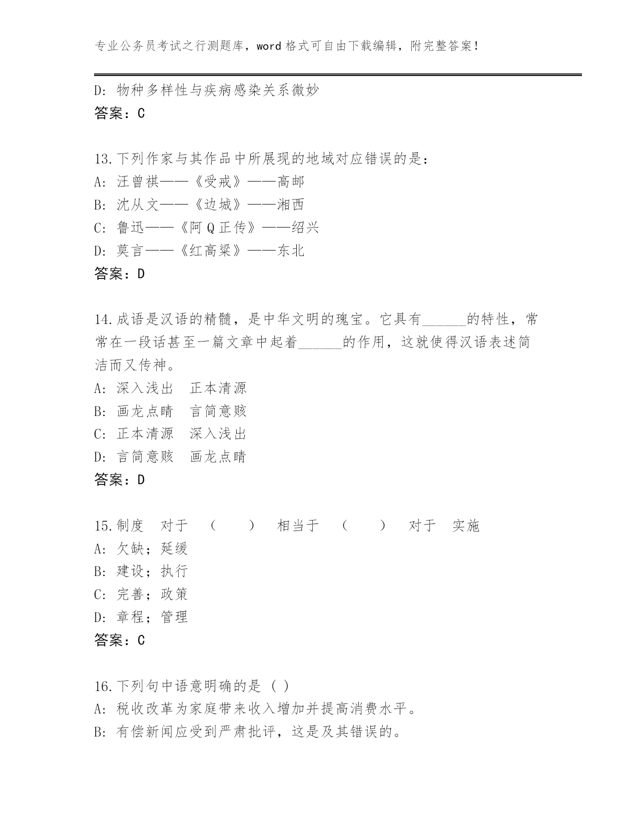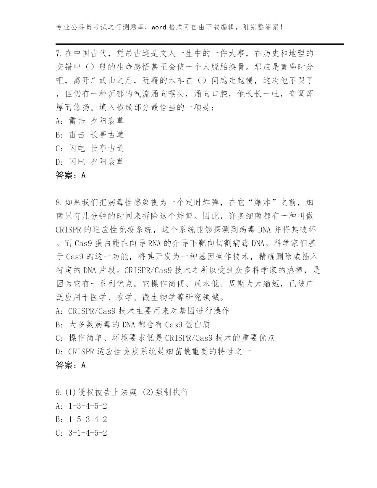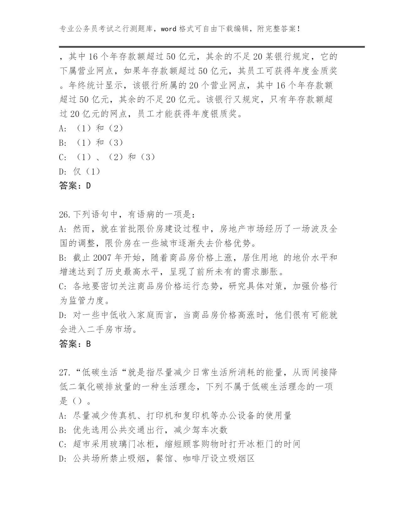 2024年云南省麒麟区公务员考试之行测题库及答案.docx