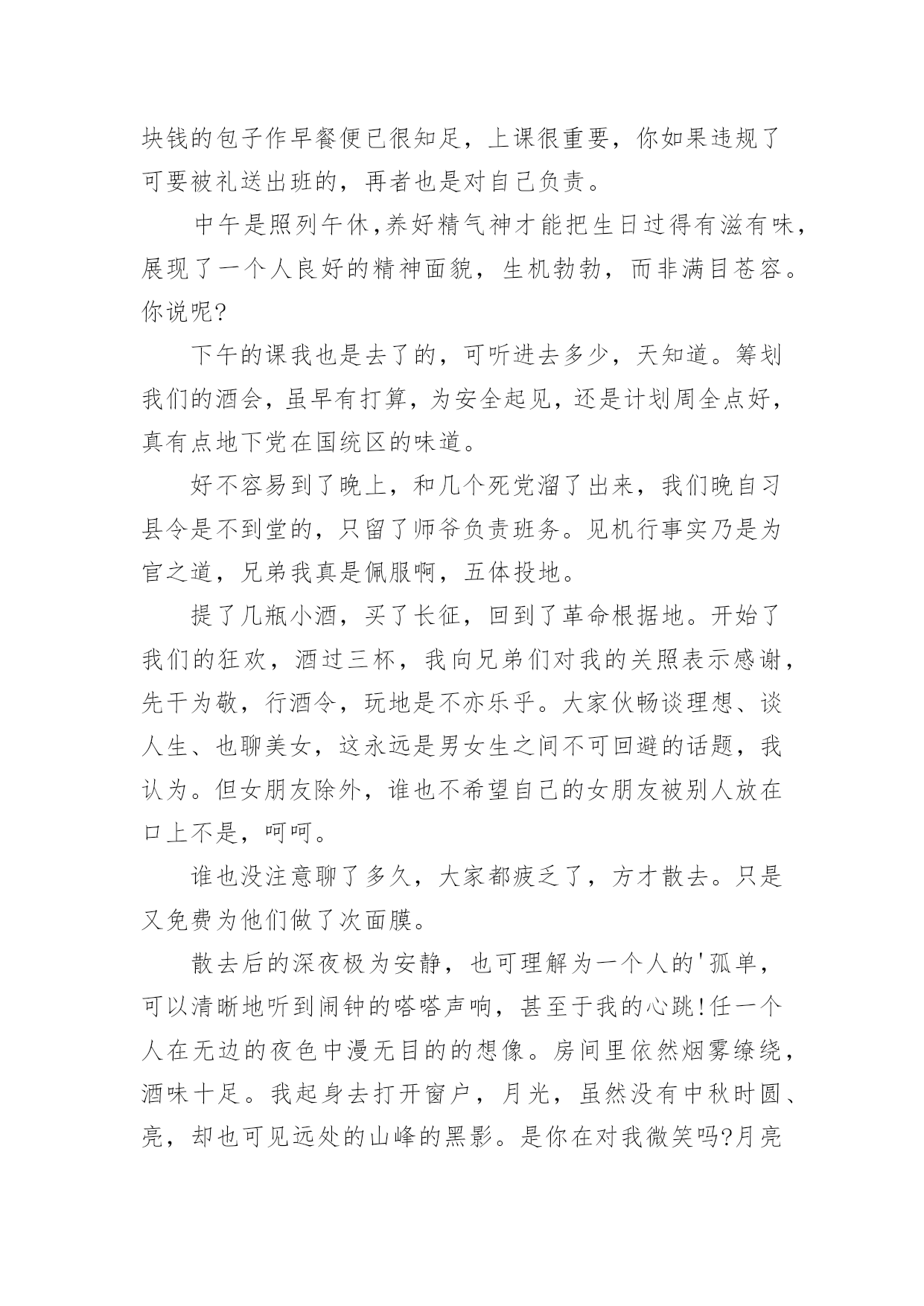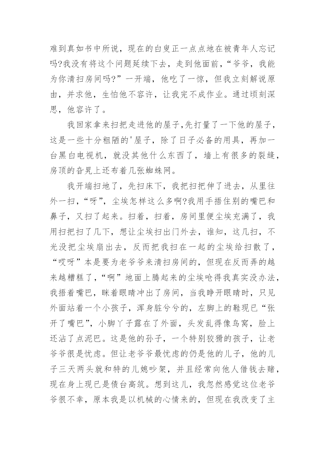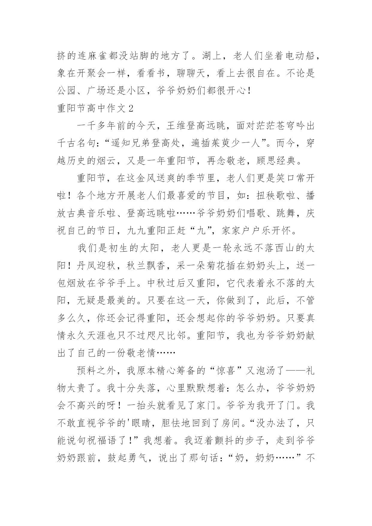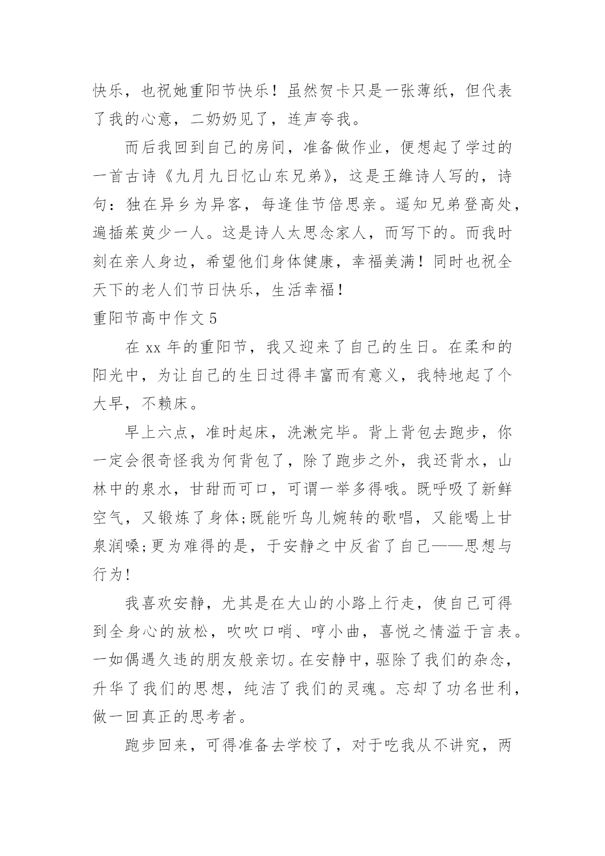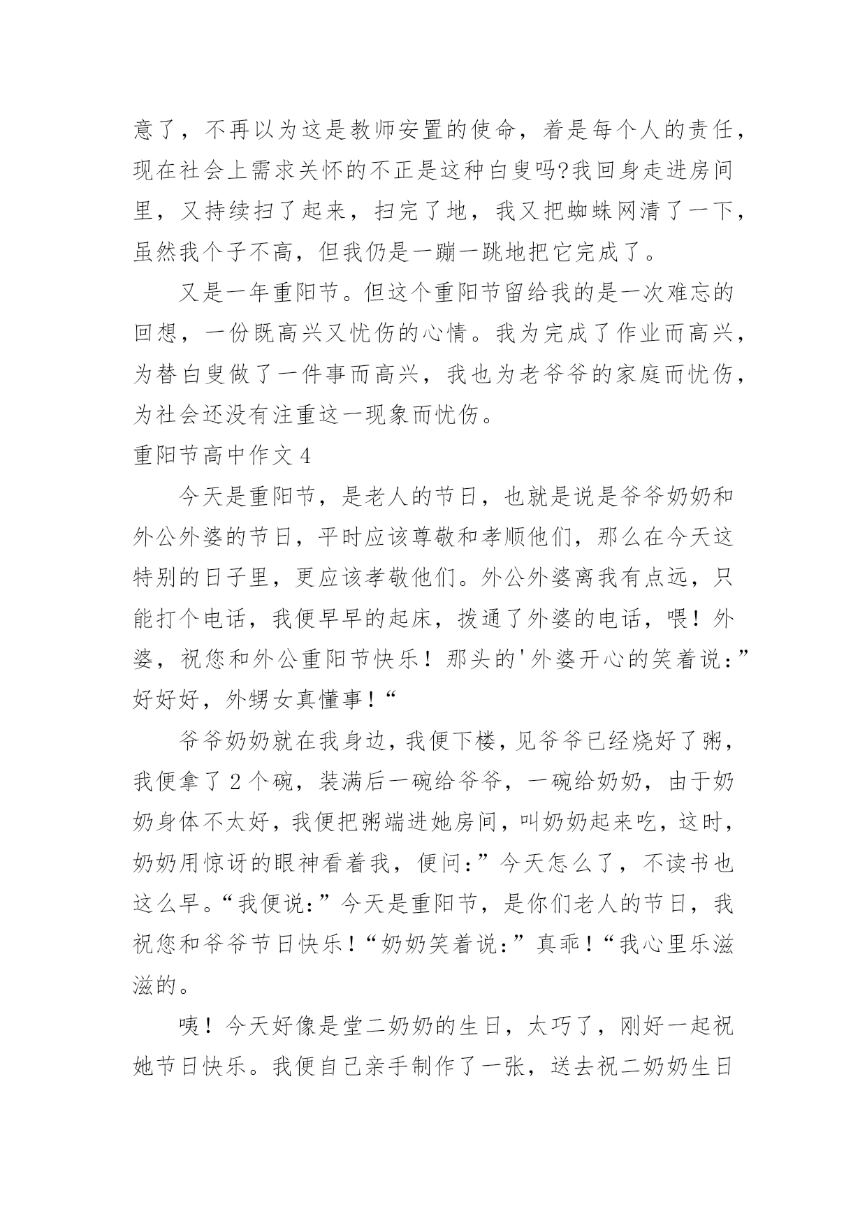 重阳节高中作文重阳节高中作文无论是在学校还是在社会中,说到作文,大家肯定都不陌生吧,作文是通过文字来表达一个主题意义的记叙方法。如何写一篇有思想、有文采的作文呢?以下是小编为大家整理的重阳节高中作文,仅供参考,大家一起来看看吧。重阳节高中作文1农历九月九日是我国的一个传统节日——重阳节。这天早晨,爷爷和外公穿上漂亮的新衣服,戴上爸爸为他们买的礼帽。奶奶和外婆在梳妆台前梳头发,穿上美丽的裙子和新衣,准备出去游玩。爸爸、妈妈和小姨忙着为爷爷、奶奶、外公、外婆做重阳糕和米果糖等各类点心。同学们和大哥哥、大姐姐去干休所、敬老院看望老人们,帮老人们理发、洗衣服、做饭、扫地、擦窗户。重阳节是老人们最高兴的'一天。这天,老人们去公园玩不用买票,坐公交车也不用投币,医院免费为老人看病。小区里的爷爷呀、奶奶呀,不是约着一起去公园玩,或去广场散步,就是到楼下花园里的小亭子里打牌、下棋。社区的广场上呢,老人们有的唱歌,有的跳舞,有的聊天,有的溜狗或放鸟。个个说说笑笑,很开心!翠湖就更不用说了,爷爷奶奶们让公园的道路变成了一条“老人河”,挤的连麻雀都没站脚的地方了。湖上,老人们坐着电动船,象在开聚会一样,看看书,聊聊天,看上去很自在。不论是公园、广场还是小区,爷爷奶奶们都很开心!重阳节高中作文2一千多年前的今天,王维登高远眺,面对茫茫苍穹吟出千古名句:“遥知兄弟登高处,遍插茱萸少一人”。而今,穿越历史的烟云,又是一年重阳节,再念敬老,顾思经典。重阳节,在这金风送爽的季节里,老人们更是笑口常开啦!各个地方开展老人们最喜爱的节目,如:扭秧歌啦、播放古典音乐啦、登高远眺啦……爷爷奶奶们唱歌、跳舞,庆祝自己的节日,九九重阳正赶“九”,家家户户乐开怀。我们是初生的太阳,老人更是一轮永远不落西山的太阳!丹凤迎秋,秋兰飘香,采一朵菊花插在奶奶头上,送一包烟放在爷爷手上。中秋过后又重阳,它代表着永不落的太阳,无疑是最美的。只要在这一天,你做到了,此后,不管多么久,你还会记得重阳,还会想起你的爷爷奶奶。只要真情永久天涯也只不过咫尺比邻。重阳节,我也为爷爷奶奶献出了自己的一份敬老情……预料之外,我原本精心筹备的“惊喜”又泡汤了——礼物太贵了。我十分失落,心里默默想着:怎么办,爷爷奶奶会不高兴的呀!一抬头就看见了家门。爷爷为我开了门。我不敢直视爷爷的'眼睛,胆怯地回到了房间。“没办法了,只能说句祝福语了!”我想着。我迈着颤抖的步子,走到爷爷奶奶跟前,鼓起勇气,说出了那句话:“奶,奶奶……”不知怎么的,我突然有些口吃。“怎么了孩子?”奶奶问道。“今,今天是重阳节,祝,祝你们节日快乐!”,我终于说出了那句话。“哟,我们的宝贝孙子长大了!”爷爷激动地说。他们一把抱住我,呵呵地笑着。我也乐了,之前的失落一扫而光,顿时来了劲儿:“爷爷奶奶,我今天下午带你们去登山吧!”“好!好!好呀!”爷爷奶奶异口同声地回答。下午,我搀扶着爷爷奶奶,来登山。虽然他们有一把年纪了,但身体硬朗,比我跑得还快!我们终于登上了山顶。秋风送爽,吹得我们头发都飞起来了。回头一看,爷爷奶奶望着茫茫苍穹笑了,笑得如此甜蜜,仿佛年轻了十岁。重阳节,秋风送来的节日,她带来的不仅是节日,还有浓浓的敬老情。当我们的长辈们正沐浴在这天地之中时,重阳节已经悄然而去。但它并不会带走爷爷奶奶的欢乐,更不会带走我们的敬老情,它就像太阳一样无法缺少。让我们一起,把重阳节永远刻在我们心中,永远弘扬,永远传承!重阳节高中作文3再过几天便是九九重阳节了,校园组织了一次活动,让我们星期六、星期天为白叟做一件事写在日记本上,“啊”,我一会儿蒙住了,我的外公外婆住得很远,爷爷奶奶现已去事了,我该为谁去干事呀?今日早上,我正站在家门口为这事忧愁,忽然,一位70岁左右的白叟从我眼前走过,然后走进我家门前那幢小小的房子去了。咦!我怎样没想到这位就住在我家对面的白叟呢?难到真如书中所说,现在的白叟正一点点地在被青年人忘记吗?我没有将这个问题延续下去,走到他面前,“爷爷,我能为你清扫房间吗?”一开端,他吃了一惊,但我立刻解说原由,并求他,生怕他不容许,让我完不成作业。通过顷刻深思,他容许了。我回家拿来扫把走进他的屋子,先打量了一下他的屋子,这是一些十分粗陋的'屋子,除了日子必备的用具,再加一台黑白电视机,就没其他什么东西了,墙上有很多的裂缝,房顶的旮旯上还布着几张蜘蛛网。我开端扫地了,先扫床下,我把扫把伸了进去,从里往外一扫,“呀”,尘埃怎样这么多啊?我用手捂住别的嘴巴和鼻子,又扫了起来。扫着,扫着,房间里便尘埃充满了,我用扫把扫了几下,想让尘埃扫出门外去,谁知,这几扫,不光没把尘埃扇出去,反而把我扫在一起的尘埃给扫散了,“哎呀”本是要为老爷爷来清扫房间的,但现在反而弄的越来越糟糕了,“啊”地面上腾起来的尘埃呛得我真实没办法,我捂着嘴巴,眯着眼睛冲出了