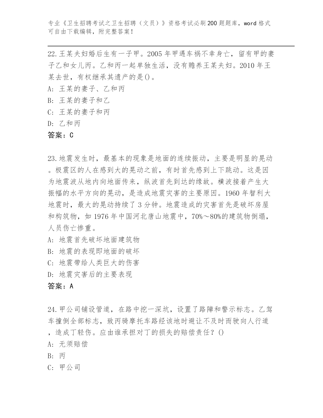 甘肃省《卫生招聘考试之卫生招聘(文员)》资格考试必刷200题大全含答案下载