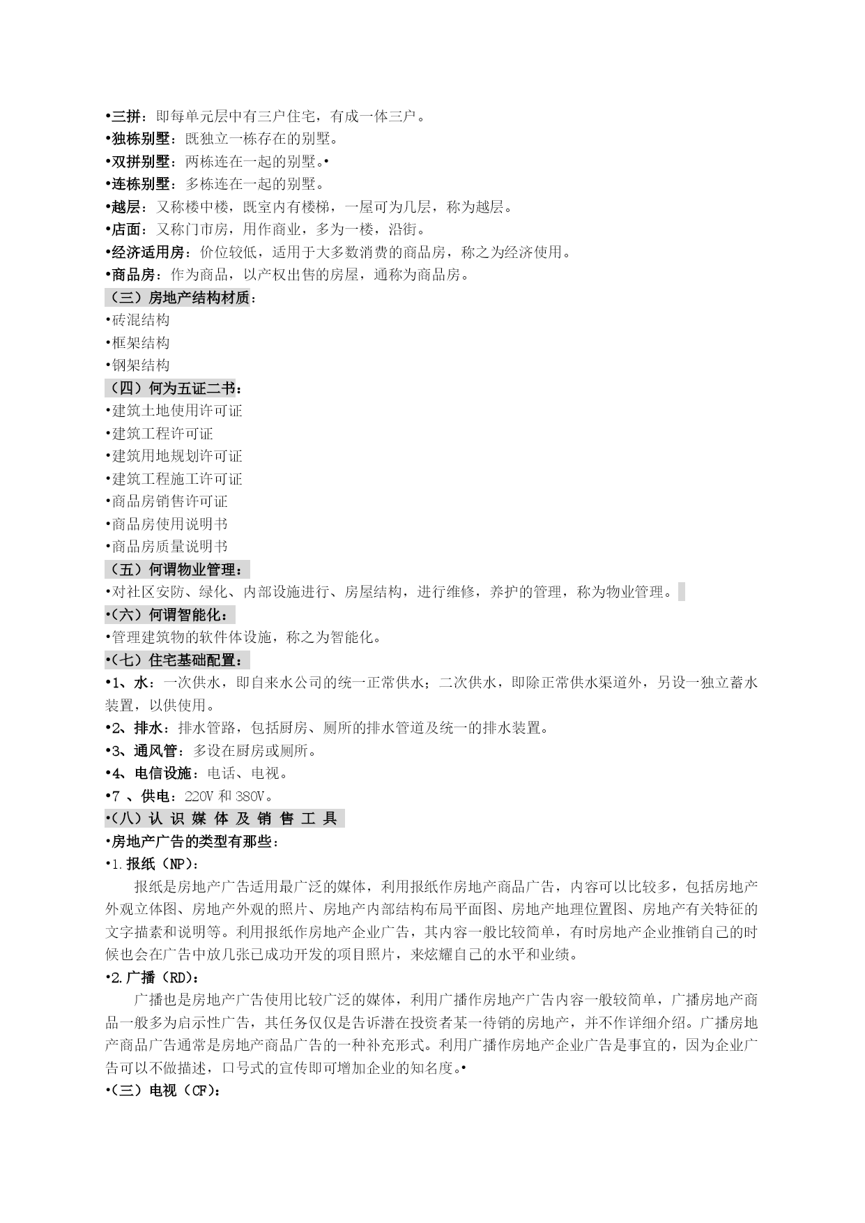 置业顾问培训讲义目录第一章认识代销第二章公司架构第三章现场架构第四章销售人员基本概念第五章房地产基本知识第六章认识媒体及销售工具第七章市场调研第八章如何掌握顾客第九章如何成为一名优秀的业务员第十章接电话技巧第十一章销售技巧第十二章跟踪客户技巧第十三章促使成交技巧第十四章相关法律•一、认识代销业房地产业作为第三产业的支柱产业,是一项涉及到金融、建筑、装潢等多方面的行业。而房地产业本身也是由多个环节组成的。从房地产开发、房地产销售到物业管理,是一个很长的过程,而且任何一个环节出现问题都会导致过程中出现偏差。所以,在房地产业的高速发展中,对各个环节的要求也越来越高,从而导致各个环节的工作都需要有专业的人才从事,以前一家公司完成整个过程的时代将一去不复返。•从房地产的发展趋势中可以看出,今后开发商将专门负责开发(建房子),销售商将专门负责销售(卖房子),物业管理公司将专门负责对成熟小区的管理(把小区内的各项管理事务再分包给专业公司来负责,如保安、绿化等)。我们所要负责的,正是其中的一个环节——销售。就是把开发商正在建造的房子或已建造完成的房子,通过广告吸引客户至现场,从而把房子买掉的过程。•这个行业虽然不像房地产开发需要很多的资金投入,但对专业性的要求会更高,其中代销业还可在分成四个部分:•(一)纯企划:就是由开发商出广告费,企划公司根据项目特点,为其进行一系列的广告策划,不包括现场销售。(二)企划销售:由开发商提供广告费用,代销公司根据项目的特点,将项目重新定位,从前期的案前准备、广告策划以及现场的销售进行一系列的整体运行。(三)包柜:代理销售者或公司仅负责销售,而企划则由其它的广告公司负责(四)包销:与企划代理的区别在于,由代销公司来承担广告费用,因此包销的风险性在代销业中是最大的。房地产相关行业组织图:开发商设计院土地取得设计规划代销公司金融机构行销包装施工兴建建筑公司落成入住经营管理物业管理二、公司架构•董事长•总经理•资讯部企划部管理部••资讯部(企业管理咨询、内训)•企划部(地产策划、销售)•管理部(财务、人事、总务)••••企划部•市场调查科:市场开发、市场调查、市场评估、产品研究、产品规划、业务招商开发•策划科:策划、文案、媒体计划、SP活动计划•设计科:美术设计、VI设计、户型建议、户型家具配置、3D效果•销售科:案前作业、开发商沟通、销售人员培训、现场销售•三、现场架构•专案:个案开发,与开发商的谈判,配合公司签定代销合同,针对市场拟订产品规划,制定并随时调整行销策略,媒体方向确定,广告预算的执行与控管,现场重大事物的处理。•副专案:配合专案,对行销策略及企划方向的建议,统一调配现场,总结现场不足,随时对业务员的销售给与帮助,与开发商建立良好的沟通协调管道。•行政专案:辅助专案,现场文件的运用整理,零用金的管制、请款,耗材用品的控制,现场出勤管理,制度运作及规范事项的落实。制作请款明细表格并交于财务部统一向开发商请款。•组长:组的核心,调动组员积极性,带领全组完成销售目标,了解组员情况,解决组内问题,遇到问题及时反映柜台,并制定小组销售方向。•••组员:第一线作战人员,缔造销售业绩,完成公司交办事项,配合现场整体运作。•四、销售人员基本概念•(一)销售顾问职责:•1、公司形象代表.•作为一个房地产公司销售人员是代表公司面对客户,其形象代表公司形象,服饰整洁与稳重会给客户留下好印象,增加对公司的信心,拉近双方距离。•2、公司经营传递者.•销售人员明确自己是公司与客户的中介,其主要职能把公司经营传递给客户,达到销售目的。•3、客户的购房引导者,专业顾问.•销售人员要利用专业的熟悉为客户提供咨询便利服务,从而引导顾客购楼。•4、将楼盘推荐给客户的专家.•销售人员要有绝对的信心,并必须做到三个相信:•相信自己所代表的公司.•相信自己所推销的能力.•相信自己所推销的商品.•这样才能充分发挥推销人员的推销技术。因为:首先相信自己的公司。在推销活动中销售人员不但代表公司,而且其工作态度、服务质量、推销成效直接影响到公司的经济效益、社会信誉和发展的前景。其次相信自己。相信自己能够完成推销任务的能力,是推销成功信心的来源,并能产生动力与热情,充满自信和信心去全心投入,创出最好水平。最后相信自己所推销的商品。对于有需求的顾客,相信自己推销的商品货真价实,从而也相信自己的商品能成功的推销出去,这样就可以认定自己是推销楼盘的专家。••••5、将客户意见向公司反映的媒介.•6、客户是最好的朋友.•销售人员应努力采取各种有利手段树立更好的形象、诚恳的态度,拉