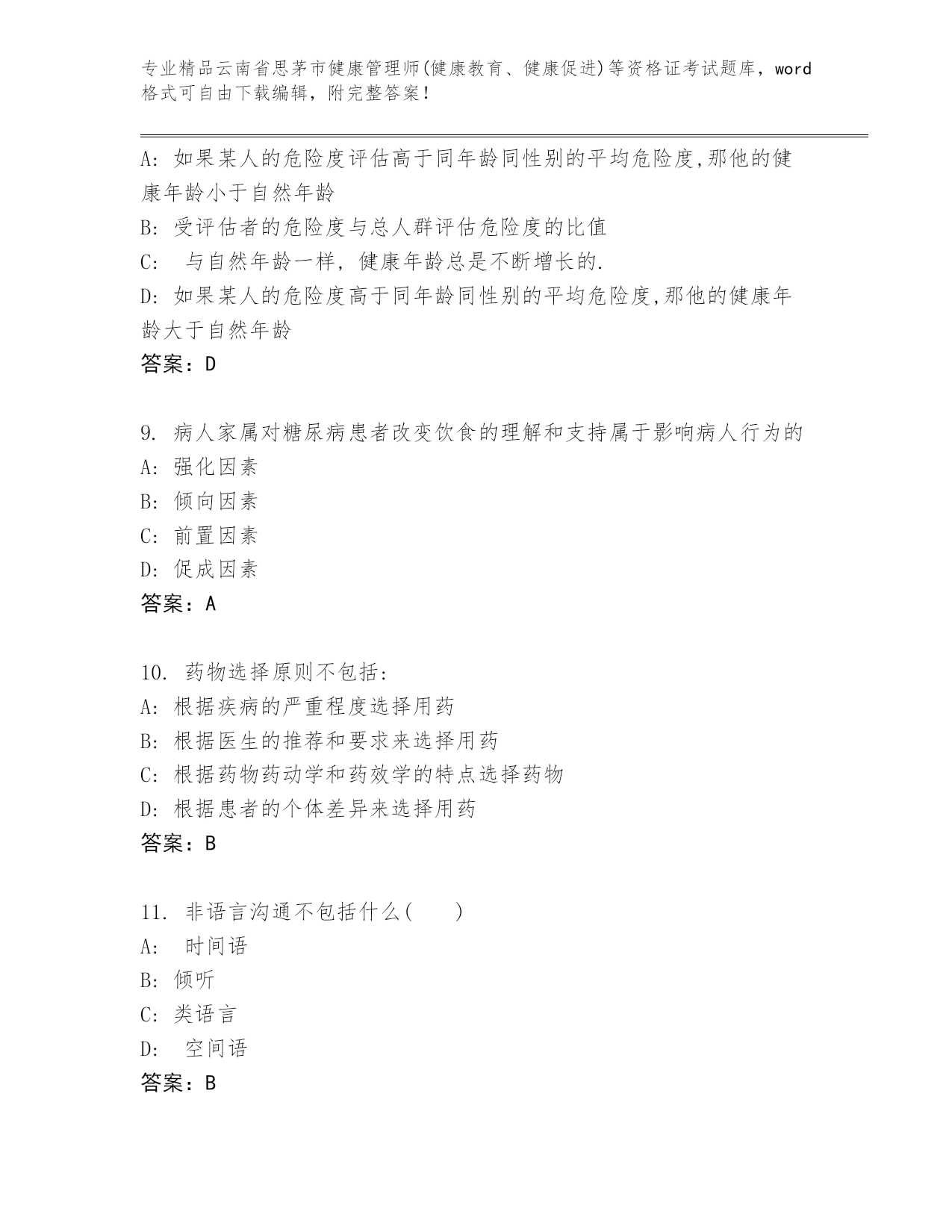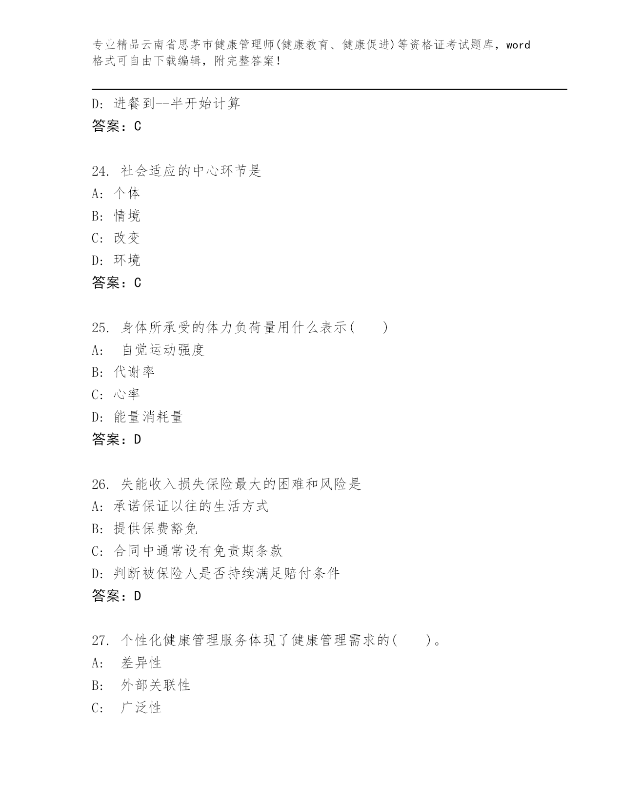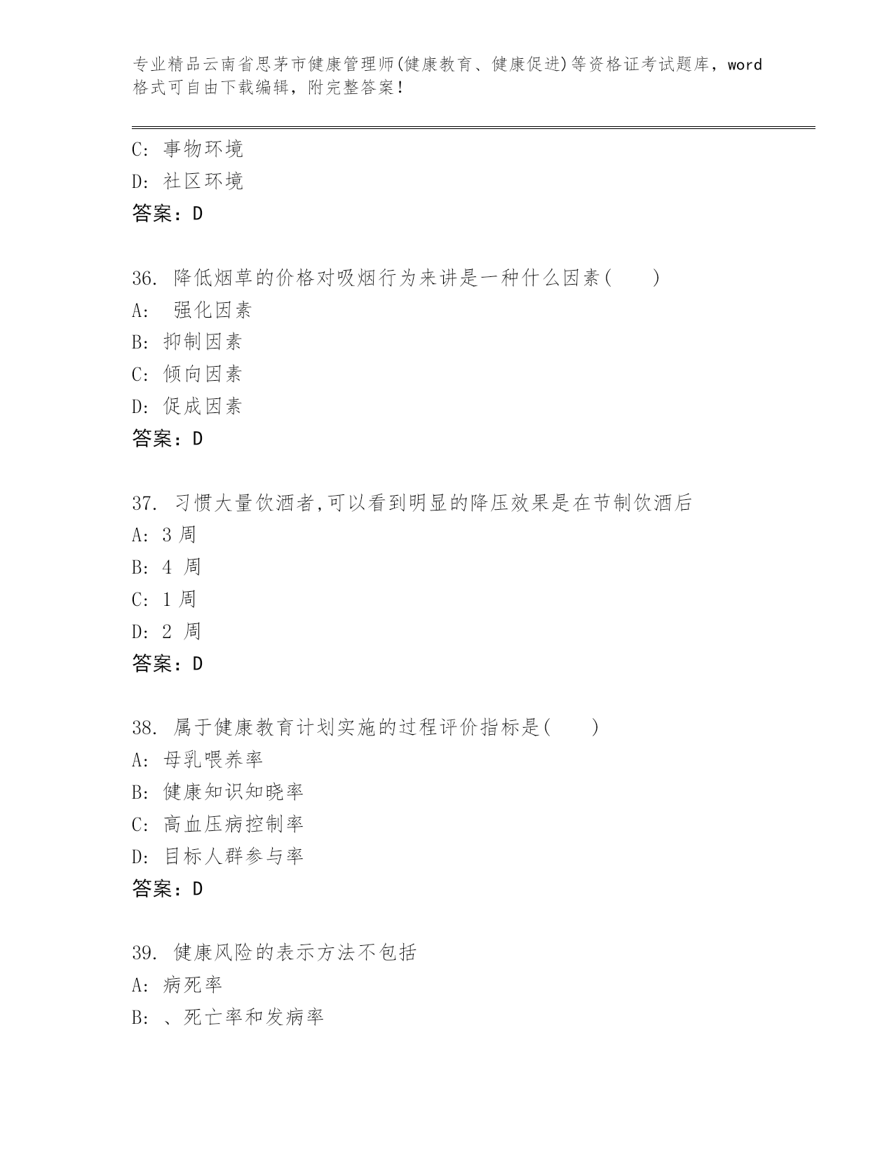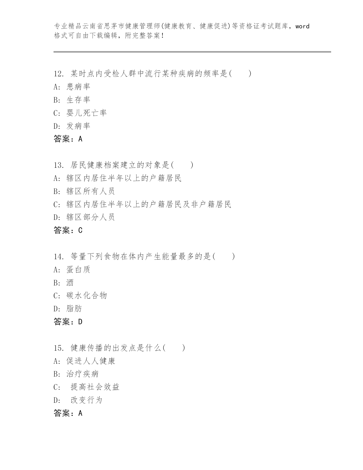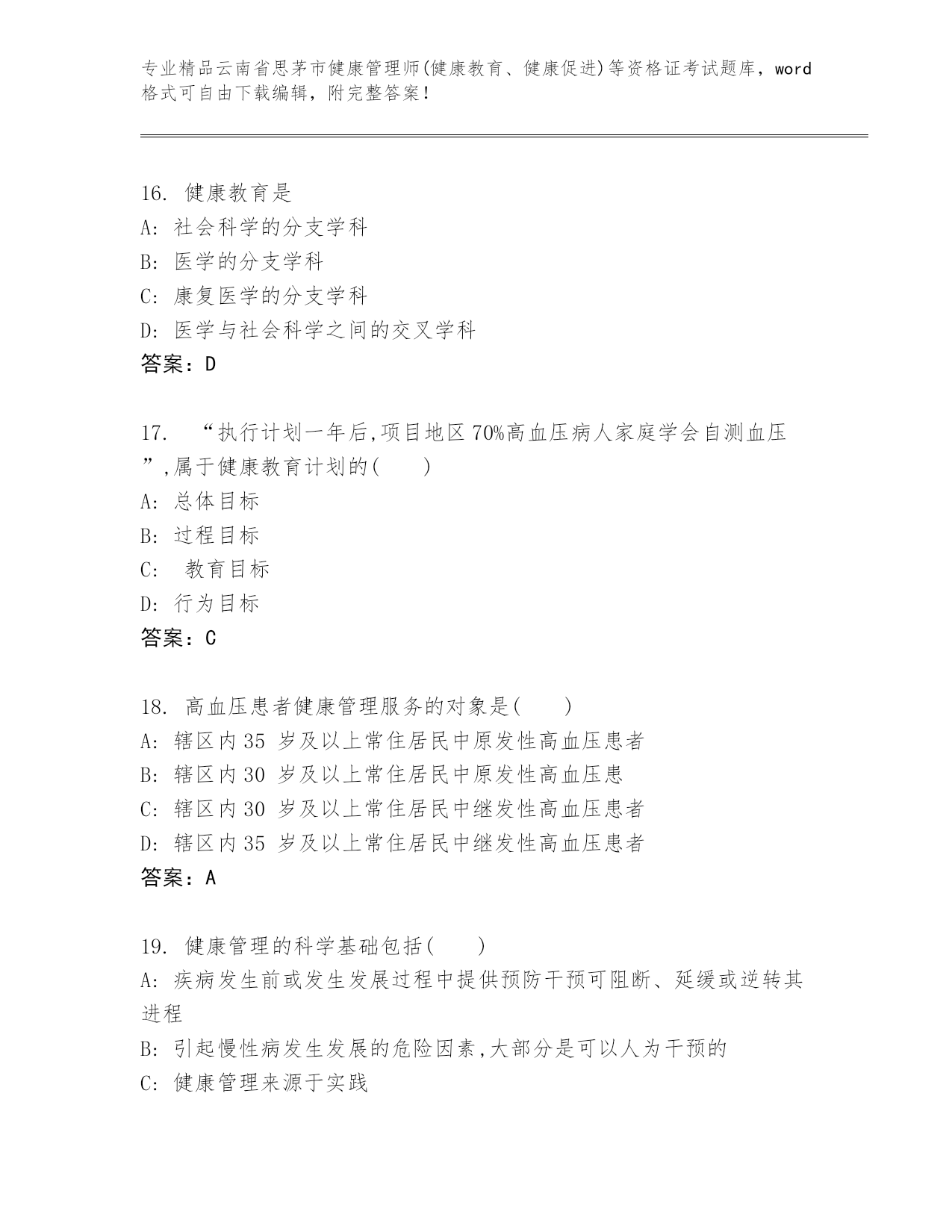 精品云南省思茅市健康管理师(健康教育、健康促进)等资格证考试大全【夺冠系列】