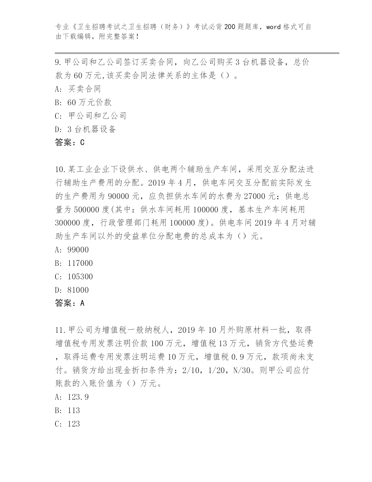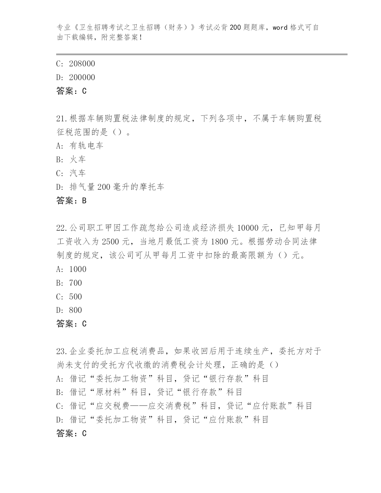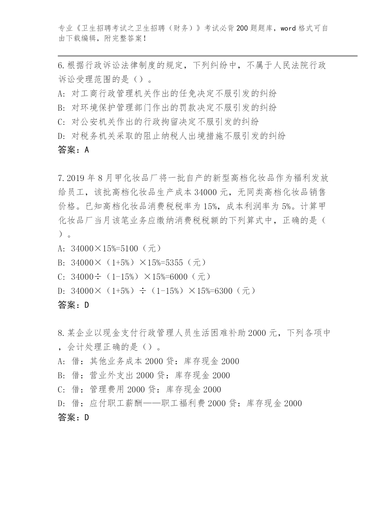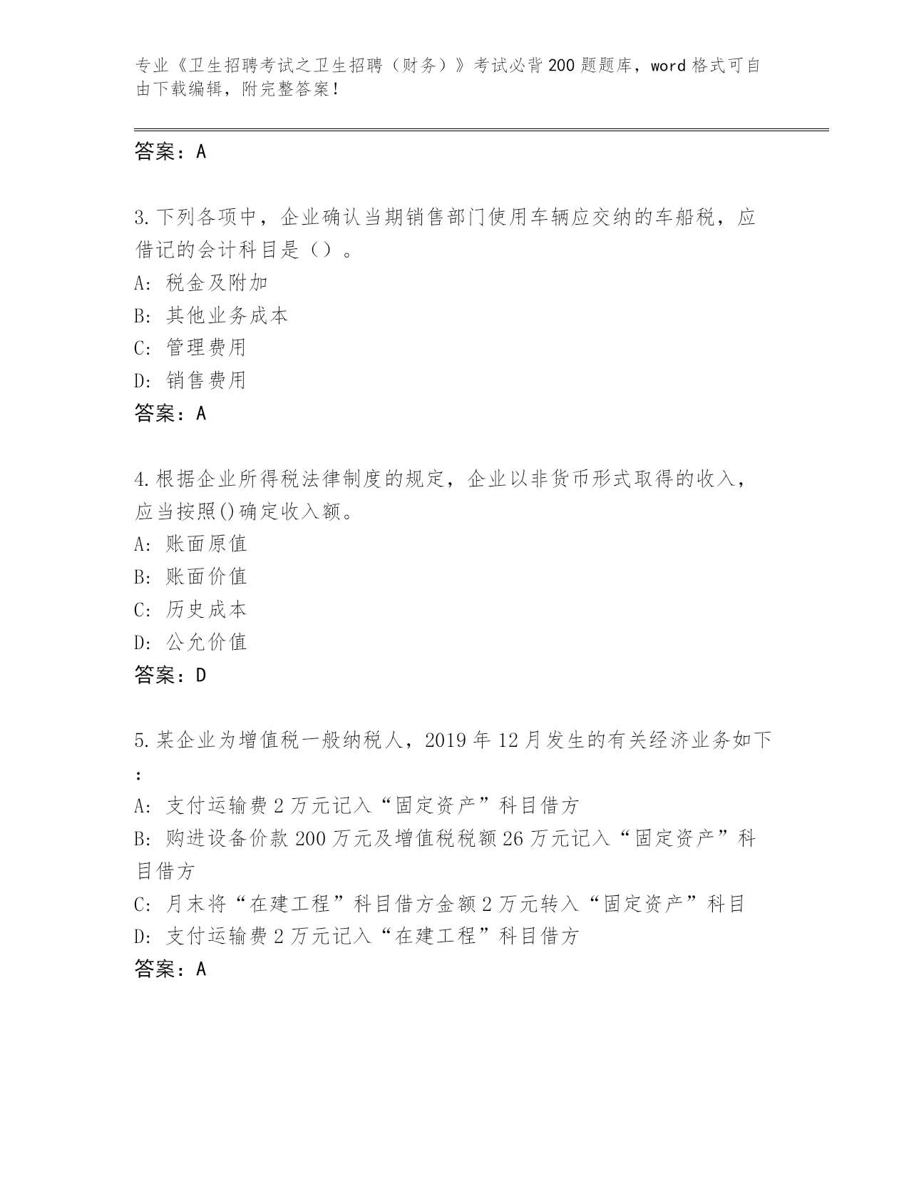 2024江苏省滨湖区《卫生招聘考试之卫生招聘(财务)》资格考试必背200题内部题库附答案(考试直接用)