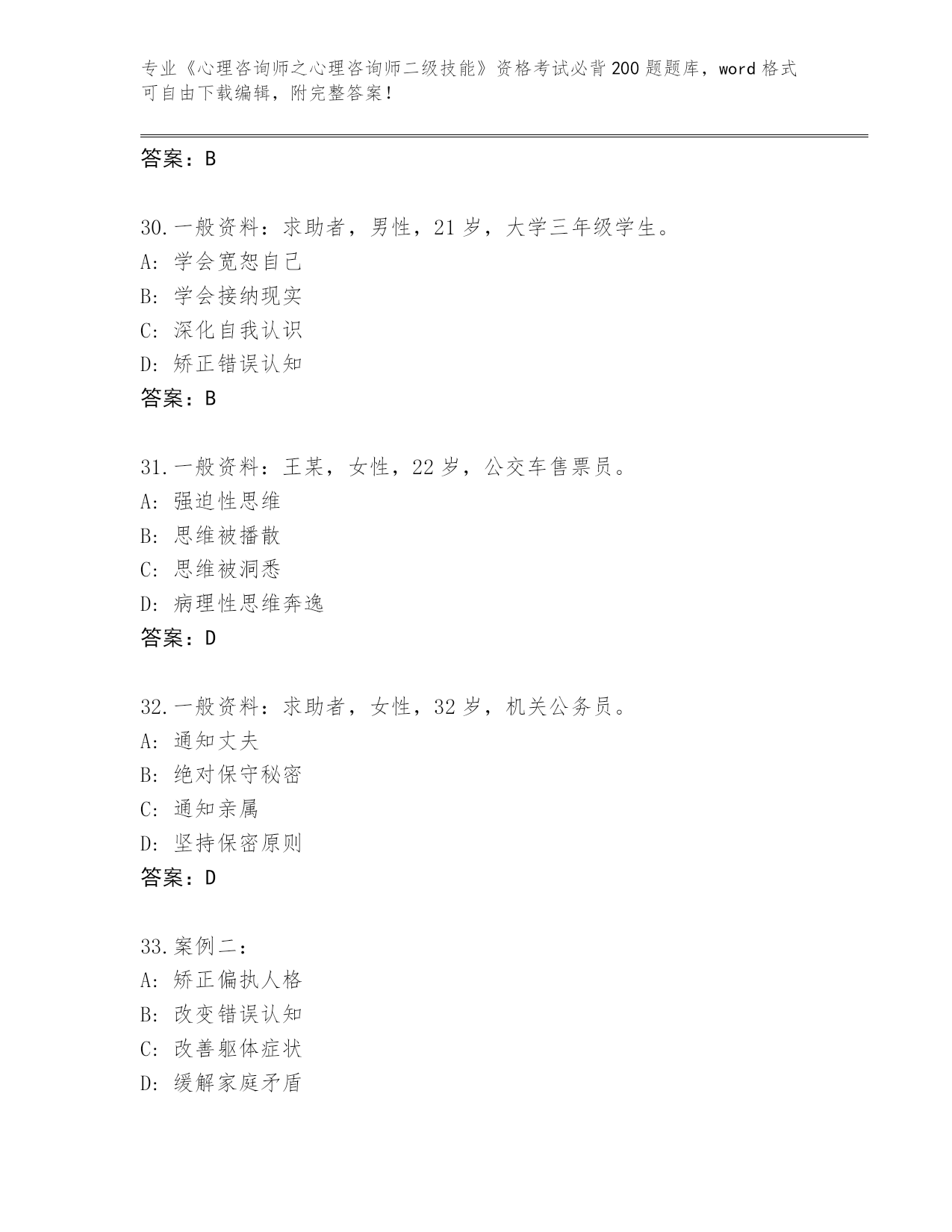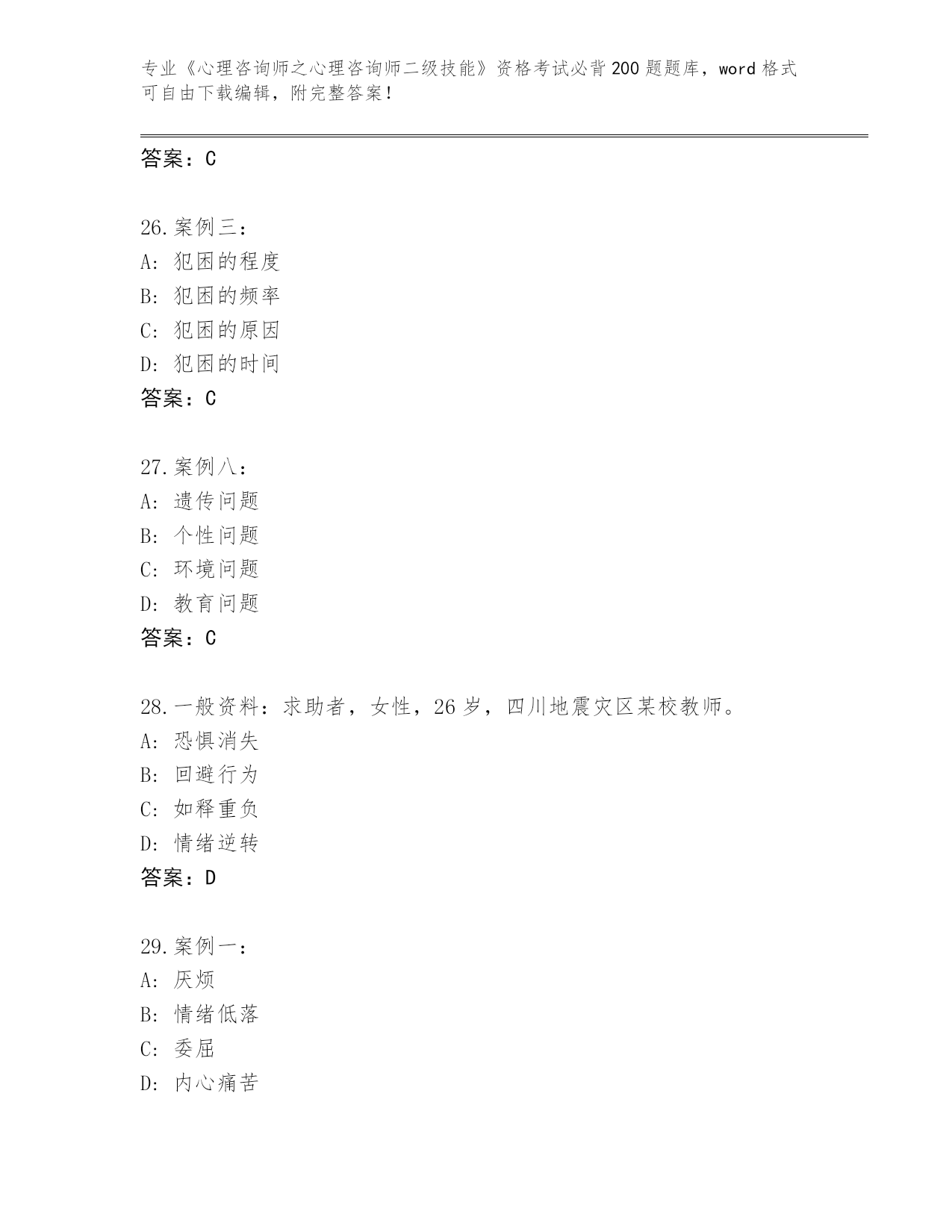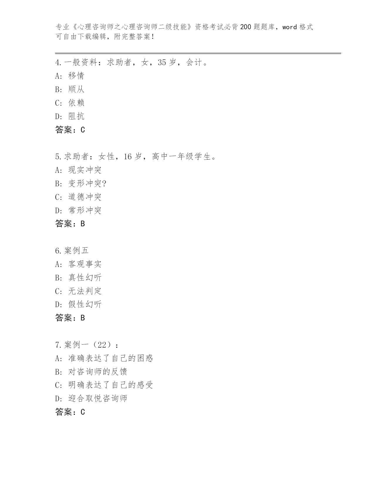 山东省莱城区完整版《心理咨询师之心理咨询师二级技能》资格考试必背200题题库【网校专用】