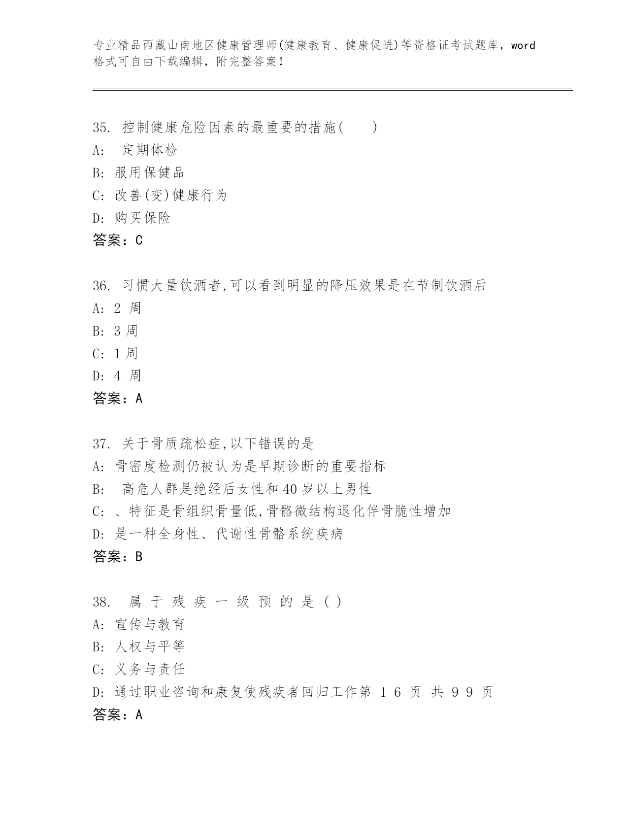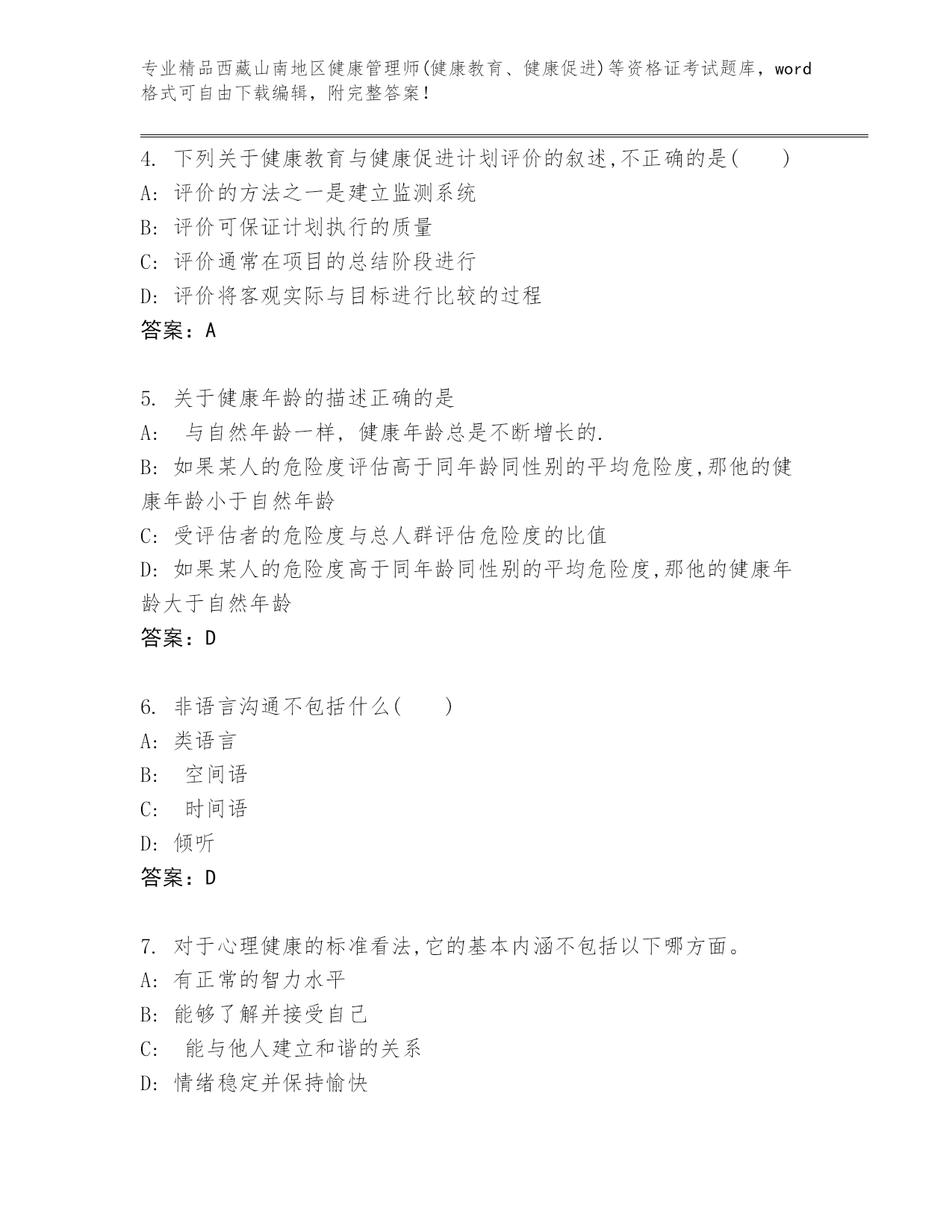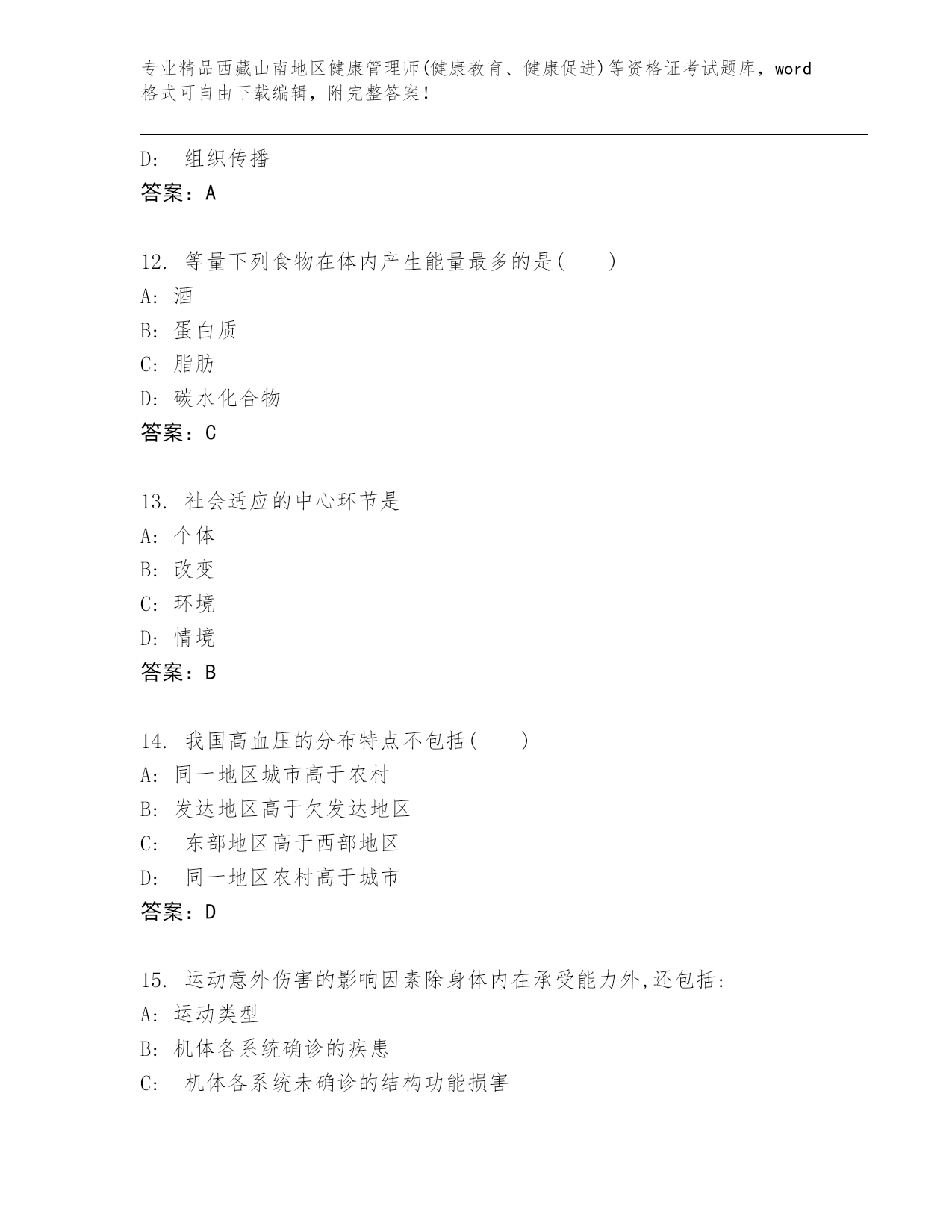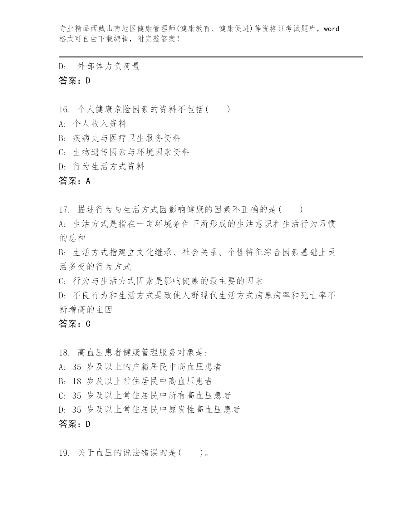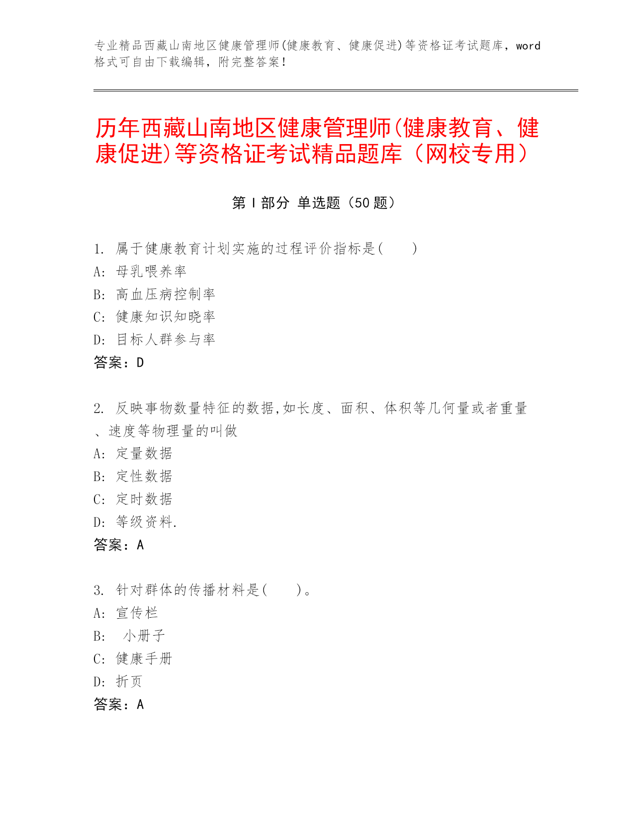 历年西藏山南地区健康管理师(健康教育、健康促进)等资格证考试精品题库(网校专用).docx
