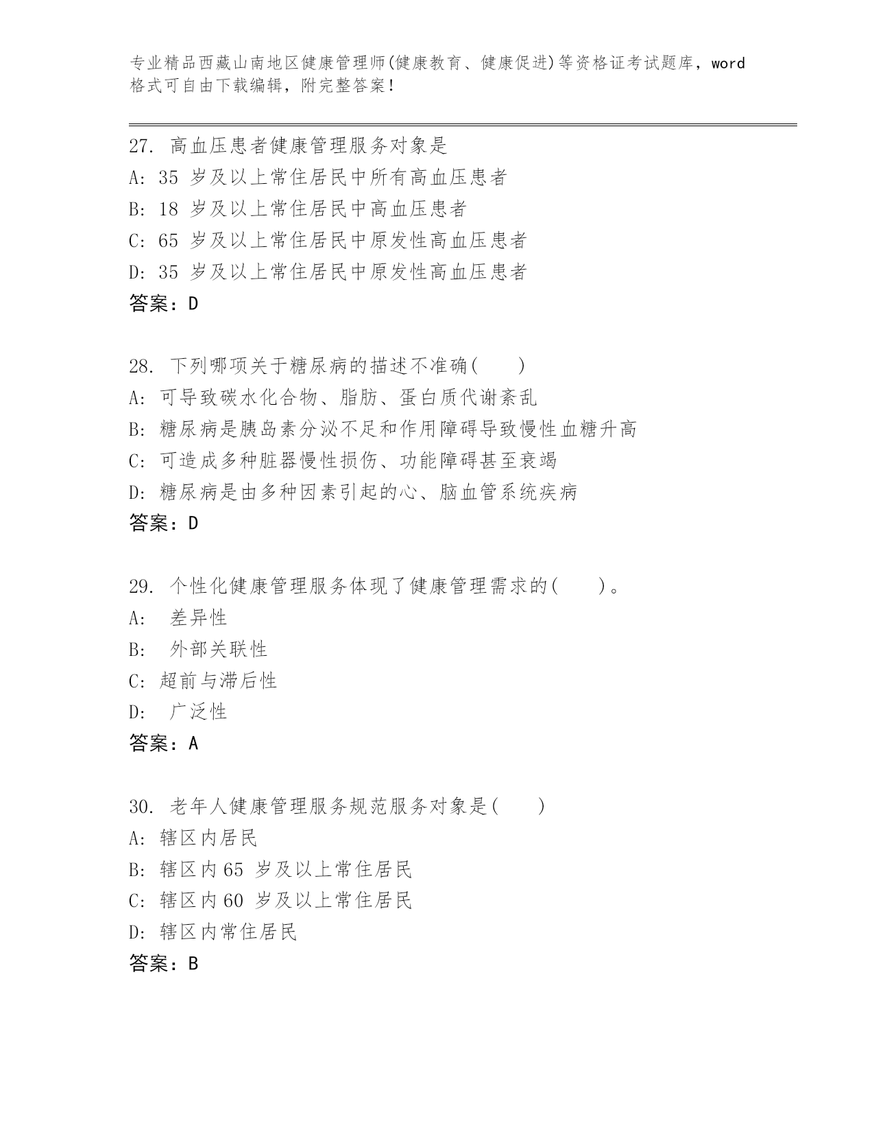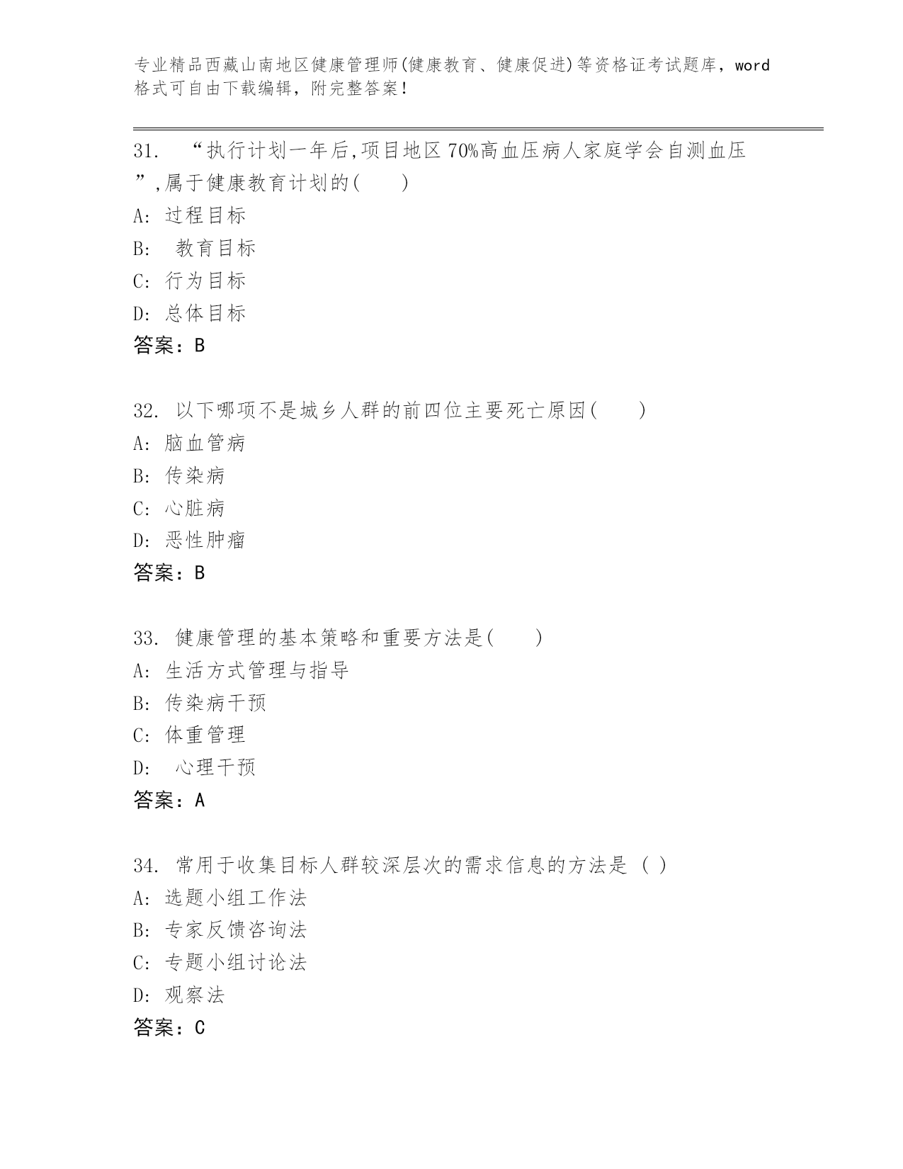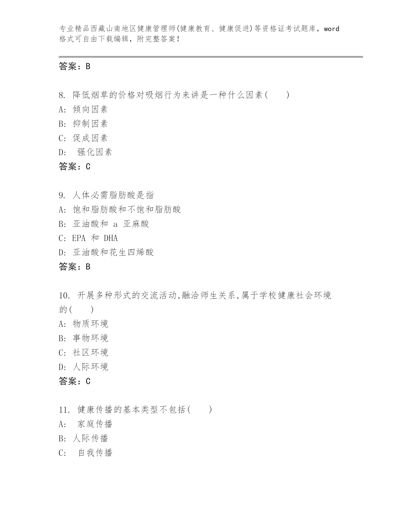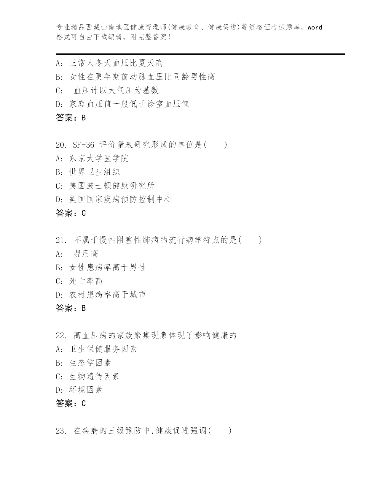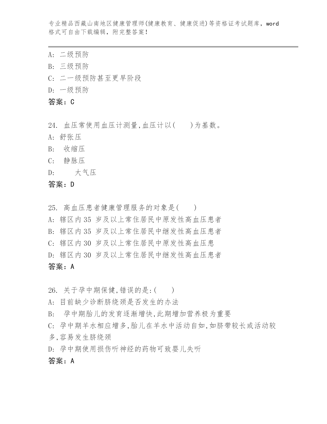 历年西藏山南地区健康管理师(健康教育、健康促进)等资格证考试精品题库(网校专用)