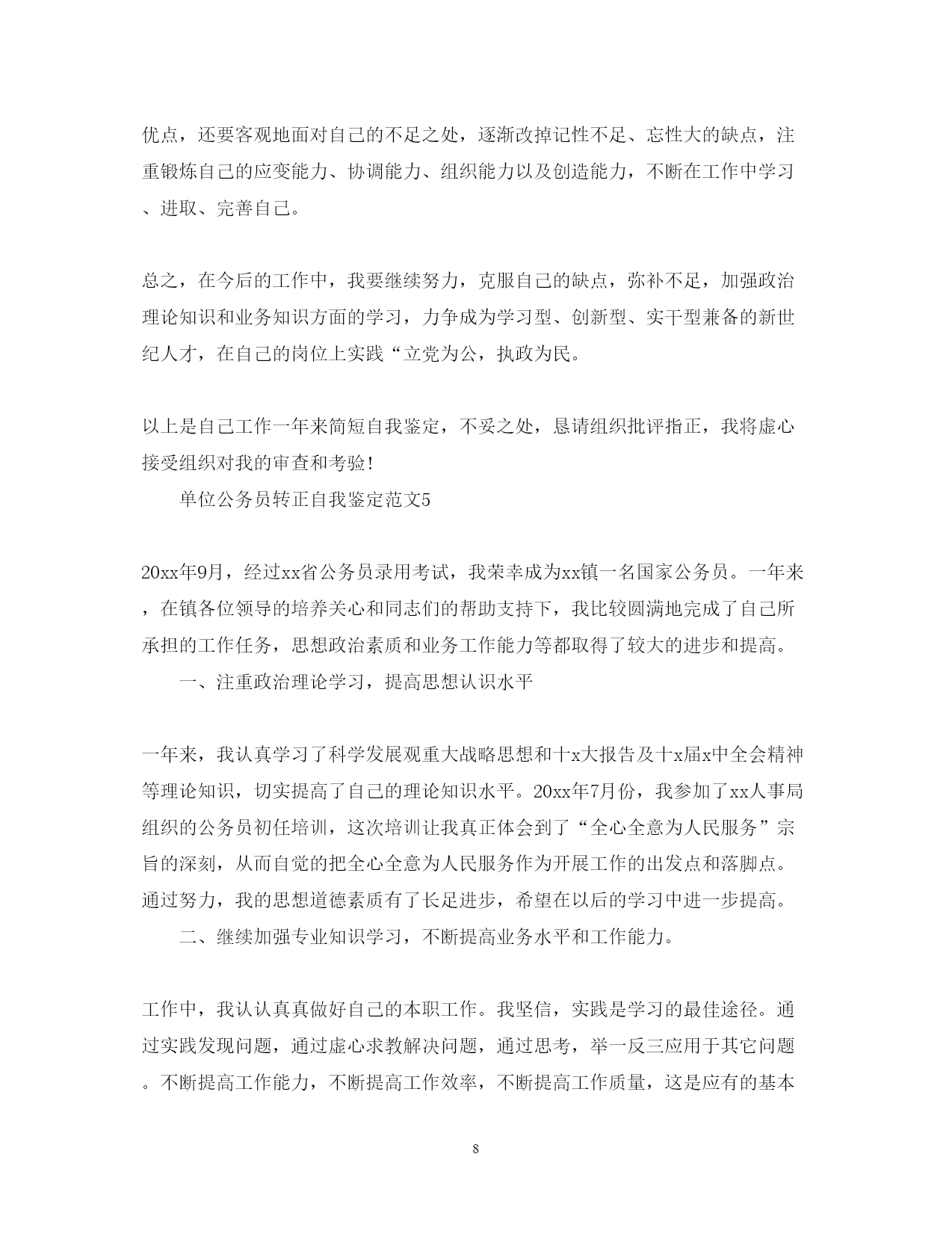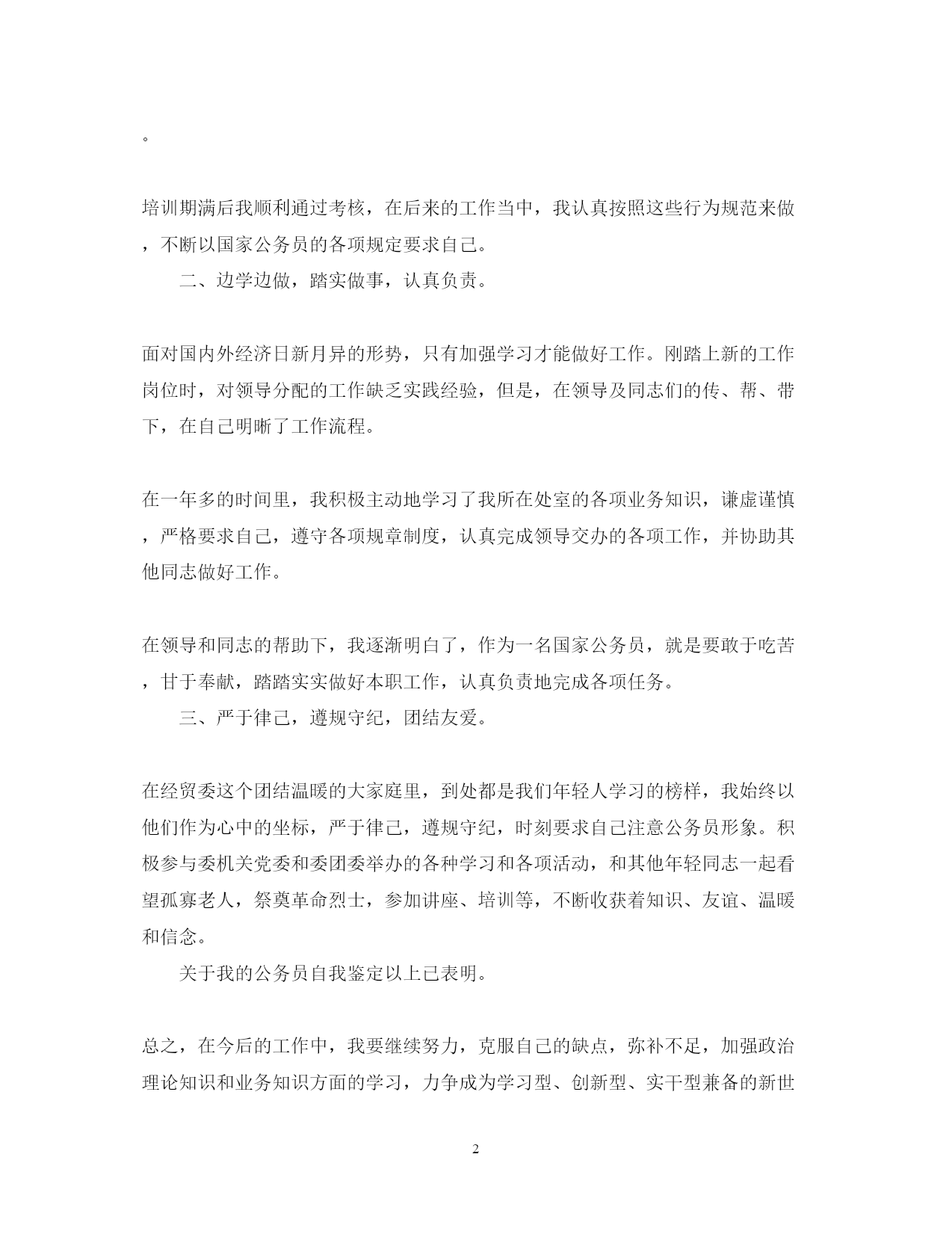此资料由网络收集而来,如有侵权请告知上传者立即删除。资料共分享,我们负责传递知识。PAGEPAGE9单位公务员转正自我鉴定范文在单位试用期过了,也开始了转正的生活!那么转正字自我鉴定需要怎么写呢?下面,小编在这给大家带来了单位公务员转正自我鉴定范文,欢迎大家借鉴参考!单位公务员转正自我鉴定范文1在经历了一年多工作中,我兢兢业业,通过各领导和同事的帮助此刻我已达到转正的资格,为此,我也为自己的转正自我鉴定详细于此。从一年多。在领导、同事们的悉心关怀和指导下,我在各方面都有了长足的进步。在这个团结和谐、奋发进取的集体里,在这个集体的每位同志身上,在这个人生道路上的新起点上,我学到了许多,为做好今后的工作积累了知识,打下了基础。在一年试用期结束的时候,特将这一年的工作总结如下。一、学习理论,提高觉悟,统一思想。作为踏入社会不久的年轻人,个人思想素质是做好每一项工作的基础。委党组非常重视干伍的思想政治素质建设,经常对全委同志进行政治理论教育,这也使我在思想政治方面取得了长足的进步。xx年x月份,我在xx公务员培训中心参加了由自治区人事厅主办的初任公务员培训班,通过为期14天的学习,增强了贯彻实践邓小平理论、“三个代表”、“和谐社会”“八荣八耻”等重要思想的自觉性。对国家行政机关管理运作状况,机关管理的基本环节,以及政府机关工作所需的依法行政、行政管理能力等,有了一定程度的了解。同时,更加深刻地认识到在我区这样一个多民族聚居的少数民族地区,要始终保持清醒的头脑和高度的警惕。培训期满后我顺利通过考核,在后来的工作当中,我认真按照这些行为规范来做,不断以国家公务员的各项规定要求自己。二、边学边做,踏实做事,认真负责。面对国内外经济日新月异的形势,只有加强学习才能做好工作。刚踏上新的工作岗位时,对领导分配的工作缺乏实践经验,但是,在领导及同志们的传、帮、带下,在自己明晰了工作流程。在一年多的时间里,我积极主动地学习了我所在处室的各项业务知识,谦虚谨慎,严格要求自己,遵守各项规章制度,认真完成领导交办的各项工作,并协助其他同志做好工作。在领导和同志的帮助下,我逐渐明白了,作为一名国家公务员,就是要敢于吃苦,甘于奉献,踏踏实实做好本职工作,认真负责地完成各项任务。三、严于律己,遵规守纪,团结友爱。在经贸委这个团结温暖的大家庭里,到处都是我们年轻人学习的榜样,我始终以他们作为心中的坐标,严于律己,遵规守纪,时刻要求自己注意公务员形象。积极参与委机关党委和委团委举办的各种学习和各项活动,和其他年轻同志一起看望孤寡老人,祭奠革命烈士,参加讲座、培训等,不断收获着知识、友谊、温暖和信念。关于我的公务员自我鉴定以上已表明。总之,在今后的工作中,我要继续努力,克服自己的缺点,弥补不足,加强政治理论知识和业务知识方面的学习,力争成为学习型、创新型、实干型兼备的新世纪人才,在自己的岗位上实践“立党为公,执政为民。以上是自己工作一年来公务员简短工作鉴定,不妥之处,恳请组织批评指正,我将虚心接受组织对我的审查和考验!单位公务员转正自我鉴定范文2本人xx,男,x族,x岁,x年x月从xx大学毕业,同年x月底被分配至xx工作。一年来,本人深入学习,坚决贯彻执行党的各项方针、政策和国家的法律、法规;服从领导,听从指挥;刻苦钻研,勤奋工作,迅速从一名无任何工作经历的在校大学生转变为一个具有基本执法技能、工作上能独当一面的基层民-警。一年来,工作认真负责,深得前来办事群众的好感,受到领导和同事的一致好评。政治上,本人坚定拥护中国共产党的领导,立场坚定,自觉深入学习党的政治理论,努力提高自身政治素质,坚决贯彻执行党的基本路线和各项方针政策,力求于党中央保持高度一致,坚决同一切违法违纪行为作斗争,始终牢记全心全意为人民服务的宗旨,坚决“文明执法”、“执法为民”。工作上,为弥补自身工作经验上的不足,使自己很快在工作中上手,本人认真向所里每一位干警求教,汲取各位同事的宝贵经验,扬长避短,很快便适应工作上的需要。本人坚信,要想在最短的时间内适应基层工作,掌握基本的执法技能,除了积极吸取他人的先进经验,还必须通过多做、强化训练来熟悉工作程序,我从参加工作的第一天起,便铆足了劲大步朝着心中的理想迈进。在一年来我参与破获的x余宗大要案件中,每宗案件都渗下了自己和同事加班加点、连日甚至连月鏖战的辛勤汗水。生活上,本人尊敬领导,团结同事,生活俭朴,以党员的行为准则来严格要求自己,自觉遵守部“五条禁令”和的一系列制度法令,自强自信,自尊自爱,廉洁自律,努力做一名有益于国家和社会的人民-警-察。“金无足赤,人无完人”,由于自身工作时间较短,工作经验较少,受思想认识所限,本人当今社会最新形势的判断有一定偏差,但我将努力学习党和国家