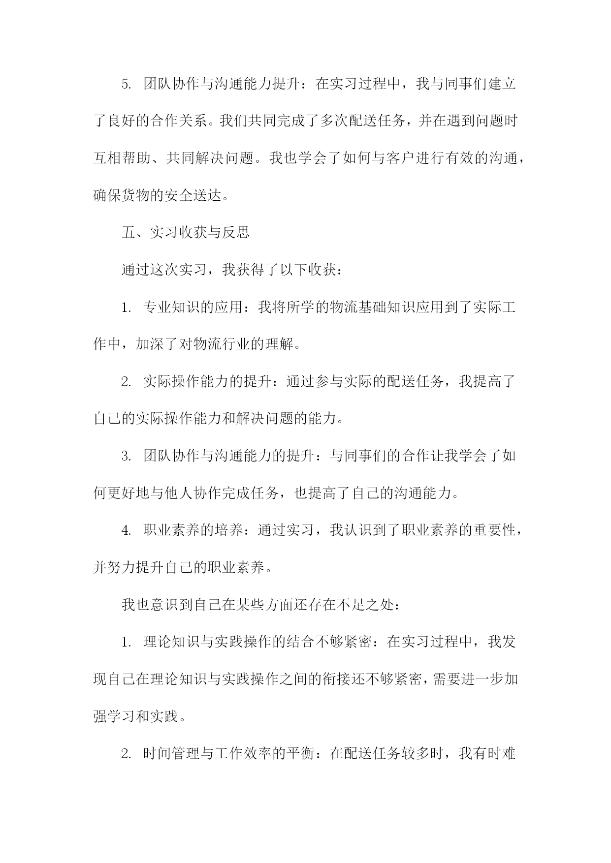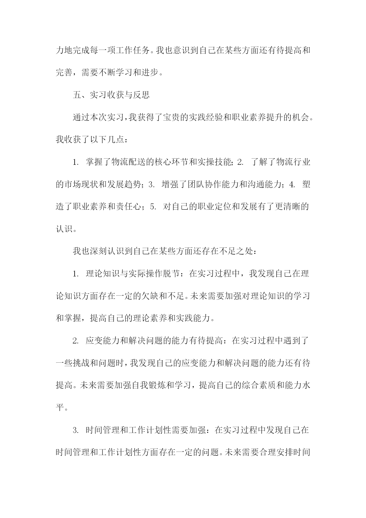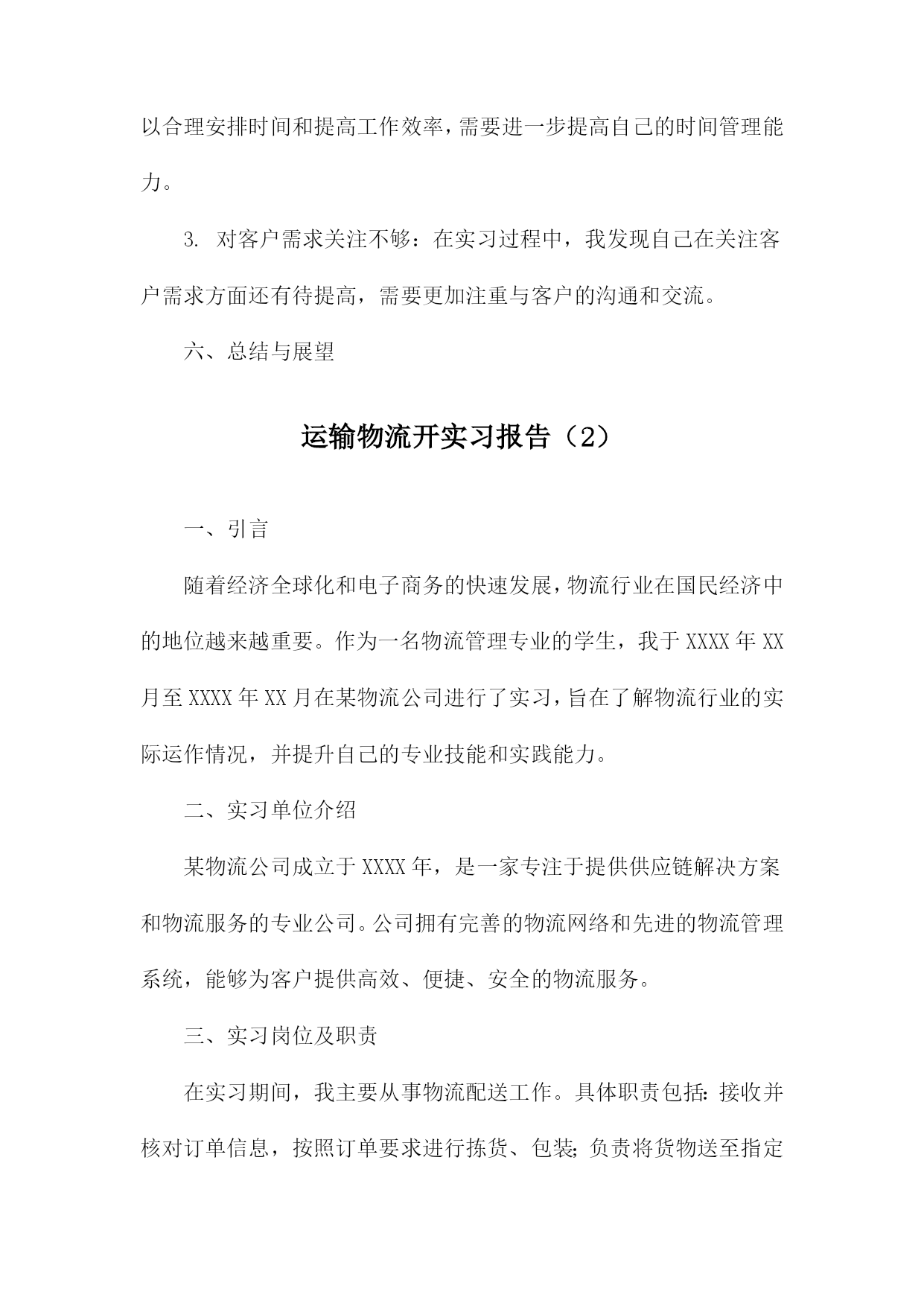 运输物流开实习报告一、引言随着经济全球化和电子商务的快速发展,物流行业在国民经济中的地位越来越重要。作为一名物流管理专业的学生,我于XXXX年XX月至XXXX年XX月在某运输公司进行了为期三个月的实习,旨在了解物流行业的运作模式和实际操作流程,提升自己的专业技能和实践能力。二、实习单位介绍某运输公司是一家专注于货物运输的企业,业务涵盖整车、零担、专线运输等多个领域。公司拥有完善的物流网络和先进的物流管理系统,能够为客户提供高效、便捷、安全的物流服务。三、实习岗位及职责在实习期间,我主要从事物流配送工作。具体职责包括:1.根据订单信息,制定详细的配送计划;2.负责货物的装卸、搬运、包装等工作;3.配合仓库管理人员进行库存管理和调配工作;4.及时处理配送过程中的异常情况,确保货物安全、准时送达客户手中;5.协助上级完成其他相关工作任务。四、实习过程与体验1.学习物流管理基础知识:在实习前,我学习了物流管理的基本概念、原理和方法。实际操作中仍有很多细节和流程需要掌握,我深入了解了物流管理的实际运作流程,对物流管理的理解更加深刻。2.掌握物流配送实操技能:在实习过程中,我学习了如何进行货物装卸、搬运、包装等实操技能。这些技能对于提高物流配送效率和质量至关重要,通过不断的实践和学习,我逐渐掌握了这些技能的要领和技巧。3.了解物流行业发展趋势:在实习期间,我有机会接触到了物流行业的先进技术和理念。通过与同行业的交流和探讨,我对物流行业的发展趋势有了更深入的了解,也对自己的职业规划有了更明确的方向。4.增强团队协作能力:在实习过程中,我与同事们建立了良好的合作关系。我们共同完成任务、解决问题、分享经验,这让我深刻体会到了团队协作的重要性。我也学会了如何与不同性格和背景的同事有效沟通和协作。5.塑造职业素养和责任心:通过实习,我逐渐认识到职业素养和责任心的重要性。我时刻保持积极的工作态度和专业素养,尽心尽力地完成每一项工作任务。我也意识到自己在某些方面还有待提高和完善,需要不断学习和进步。五、实习收获与反思通过本次实习,我获得了宝贵的实践经验和职业素养提升的机会。我收获了以下几点:1.掌握了物流配送的核心环节和实操技能;2.了解了物流行业的市场现状和发展趋势;3.增强了团队协作能力和沟通能力;4.塑造了职业素养和责任心;5.对自己的职业定位和发展有了更清晰的认识。我也深刻认识到自己在某些方面还存在不足之处:1.理论知识与实际操作脱节:在实习过程中,我发现自己在理论知识方面存在一定的欠缺和不足。未来需要加强对理论知识的学习和掌握,提高自己的理论素养和实践能力。2.应变能力和解决问题的能力有待提高:在实习过程中遇到了一些挑战和问题时,我发现自己的应变能力和解决问题的能力还有待提高。未来需要加强自我锻炼和学习,提高自己的综合素质和能力水平。3.时间管理和工作计划性需要加强:在实习过程中发现自己在时间管理和工作计划性方面存在一定的问题。未来需要合理安排时间和工作计划以提高工作效率和质量。六、总结与展望通过本次实习经历我对物流行业有了更深入的了解和实践机会。在未来的学习和工作中我将注重理论与实践相结合不断提升自己的专业技能和实践能力。同时我也将关注物流行业的发展趋势和市场需求为自己的职业发展做好规划和准备。运输物流开实习报告(1)一、引言随着经济全球化和电子商务的快速发展,物流行业在国民经济中的地位越来越重要。作为一名物流管理专业的学生,我于XXXX年XX月至XXXX年XX月在某物流公司进行了实习,通过这次实习,我对物流行业的运作流程、企业管理和实际操作有了更深入的了解,也为我未来的学习和职业生涯打下了坚实的基础。二、实习单位介绍我实习的单位是一家专注于物流运输的企业,其业务涵盖了多个省份和城市,为客户提供全方位的物流服务。公司拥有先进的物流管理系统和丰富的运输经验,致力于为客户提供高效、便捷、安全的物流解决方案。三、实习岗位及职责在实习期间,我担任了物流配送员的角色。我的主要职责是负责将客户的货物从仓库按照指定的时间、地点和数量进行配送。我还需要与客户保持沟通,及时处理配送过程中出现的问题,确保货物的安全送达。四、实习过程与体验1.学习物流基础知识:在实习前,我对物流行业的基础知识进行了学习,包括物流运作流程、供应链管理、仓储管理等。实际操作与理论知识还是存在一定的差距,我更加深入地理解了这些知识,并将其应用到实际工作中。2.了解物流运作流程:在实习期间,我跟随公司的配送员学习了从接单、备货、包装、称重到配送等一系列流程。通过亲身参与,我了解了物流运作的各个环节,并掌握了其中的技巧和注意事项。3.学习企业内部管理:在公司内部,我参与了例会、报表填写、文件归档等工作。通过这些工作