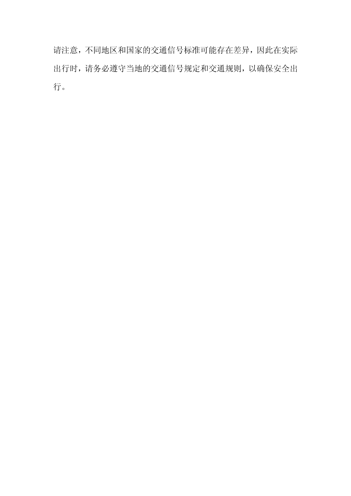 2024年交通信号标准2024年交通信号标准包括以下几个方面:1.交通信号规定:为了确保交通的有序进行并减少交通事故的发生,交通信号规定更加严格。红灯停、绿灯行的原则更加强调,同时还引入了黄灯停车过程中的更加具体的要求,确保交通参与者按照信号灯的指示行驶。2.速度限制规定:为了减少道路交通事故的发生,2024年交通规章制度加强了对车辆速度的限制。对城市内的主要道路和高速公路的车速限制更加明确,同时还引入了道路、车辆和天气状况等因素的动态限速策略,确保车辆在合适的速度下行驶。3.十字路口红绿灯规则:十字路口至少会配备两组红绿灯,一般为箭头指向型。掉头车辆不依赖红绿灯情况(但很多路口直行需要过停止线,则需按照左转信号灯通行),左转时确保安全;直行车辆依据红绿灯通行;右转车辆不依赖红绿灯,注意避让直行车辆。4.T型路口红绿灯规则:掉头车辆不依赖红绿灯情况,左转时确保安全;左转车辆依据红绿灯通行;右转车辆也不依赖红绿灯。5.直行路口的红绿灯规则:直行路口仅采用一组红绿灯,红灯亮时,直行停止,绿灯亮时,直行通行。对于允许掉头的路口,红绿灯均可掉头,但一些地方为了保障安全可能会特别标识“红灯时掉头”,这个时候只能在红灯亮时掉头。在路口前如果看到禁止掉头标志的话,说明此路口禁止掉头,务必要注意不要违反法规。请注意,不同地区和国家的交通信号标准可能存在差异,因此在实际出行时,请务必遵守当地的交通信号规定和交通规则,以确保安全出行。