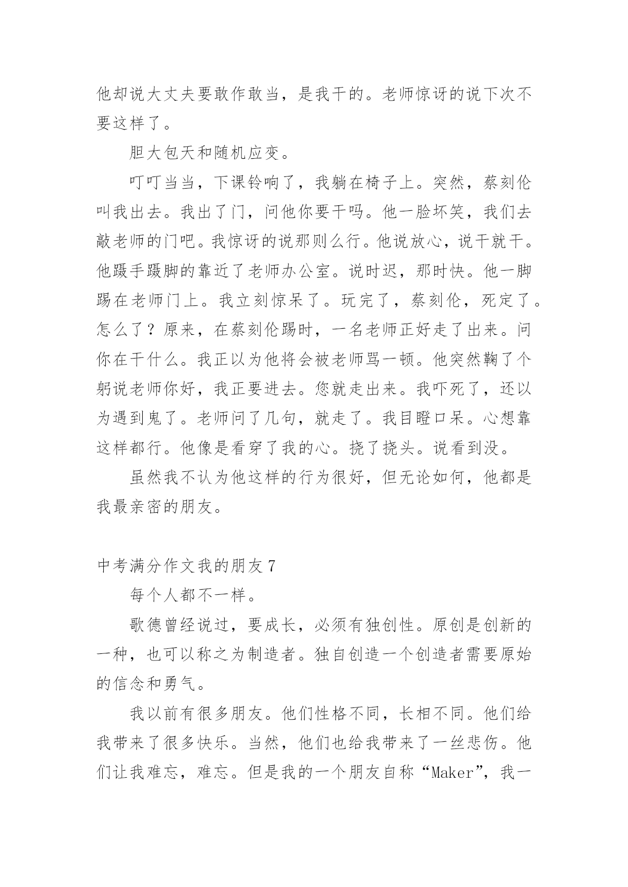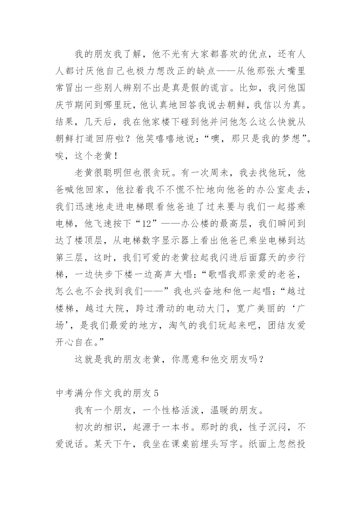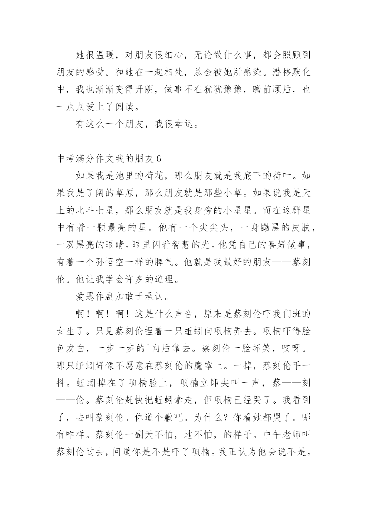 中考满分作文我的朋友