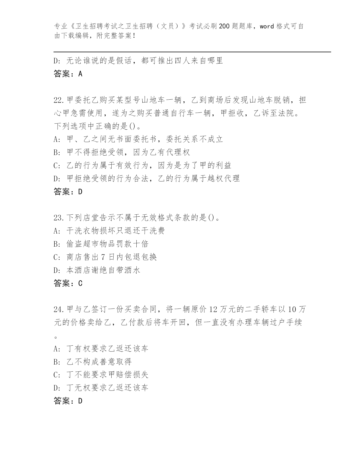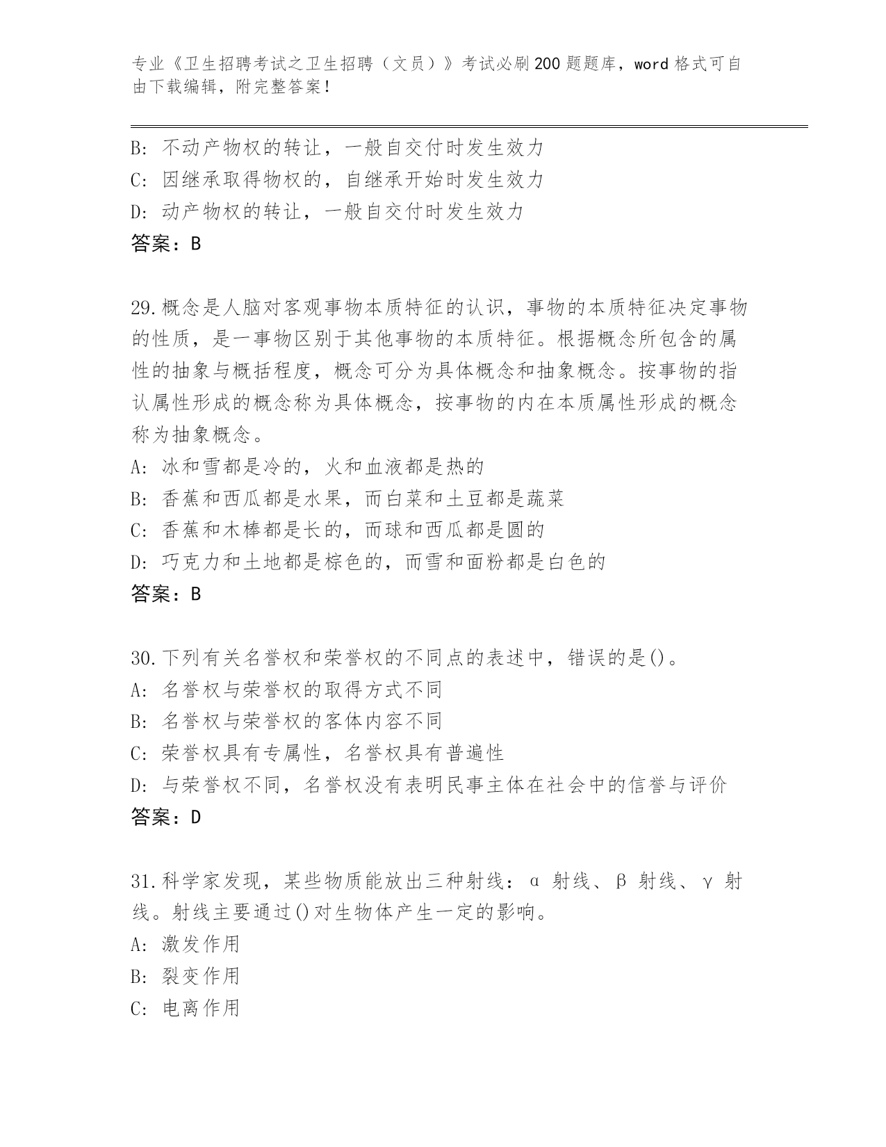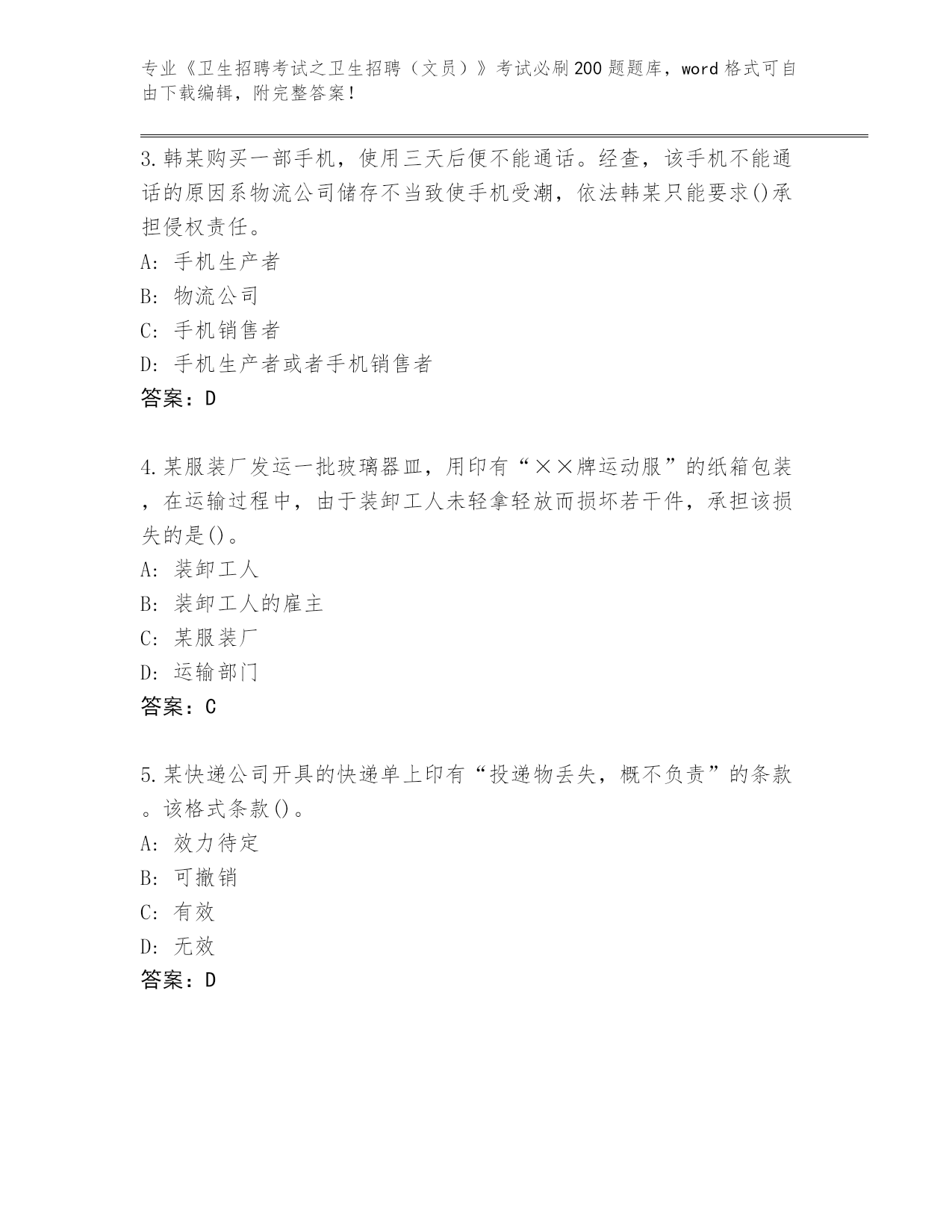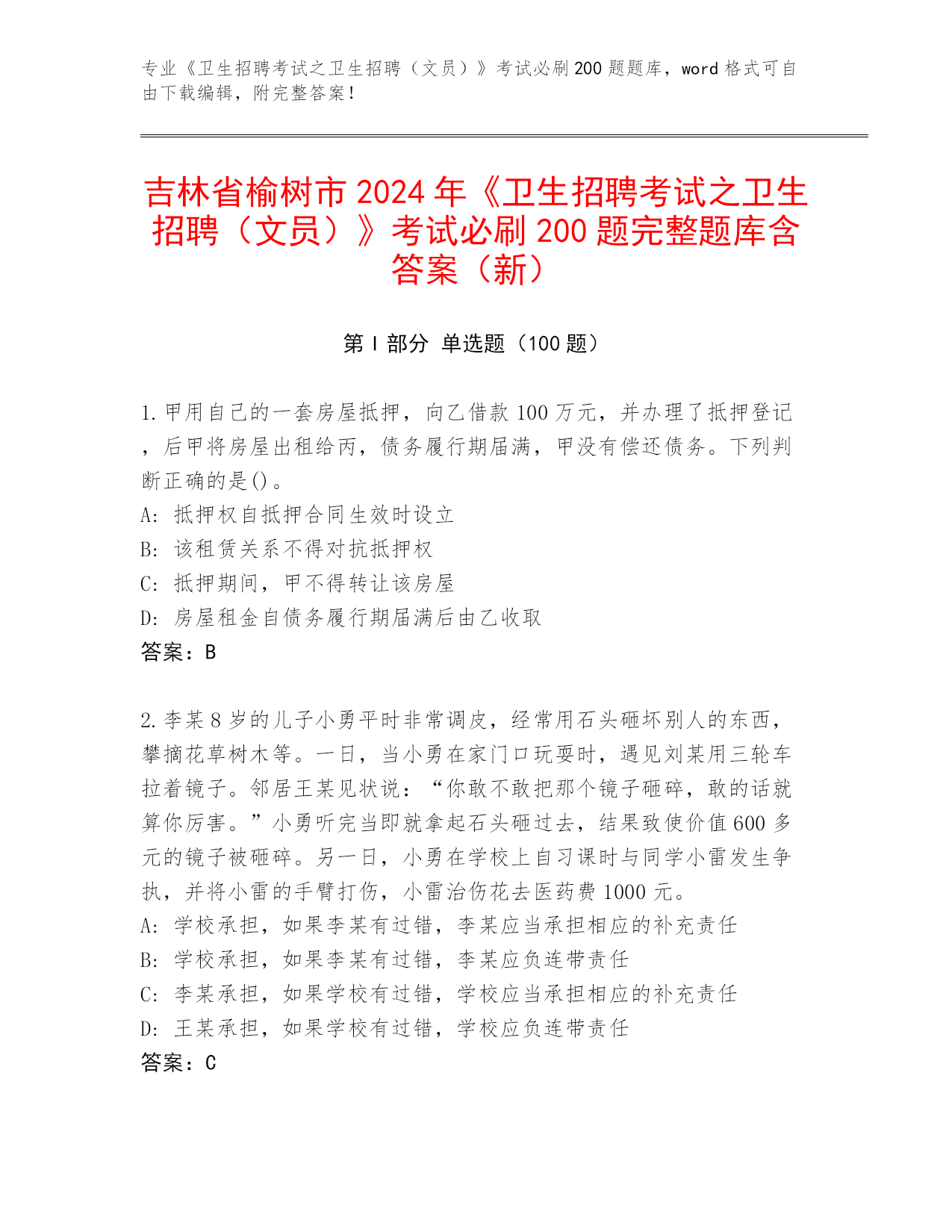 吉林省榆树市2024年《卫生招聘考试之卫生招聘(文员)》考试必刷200题完整题库含答案(新)