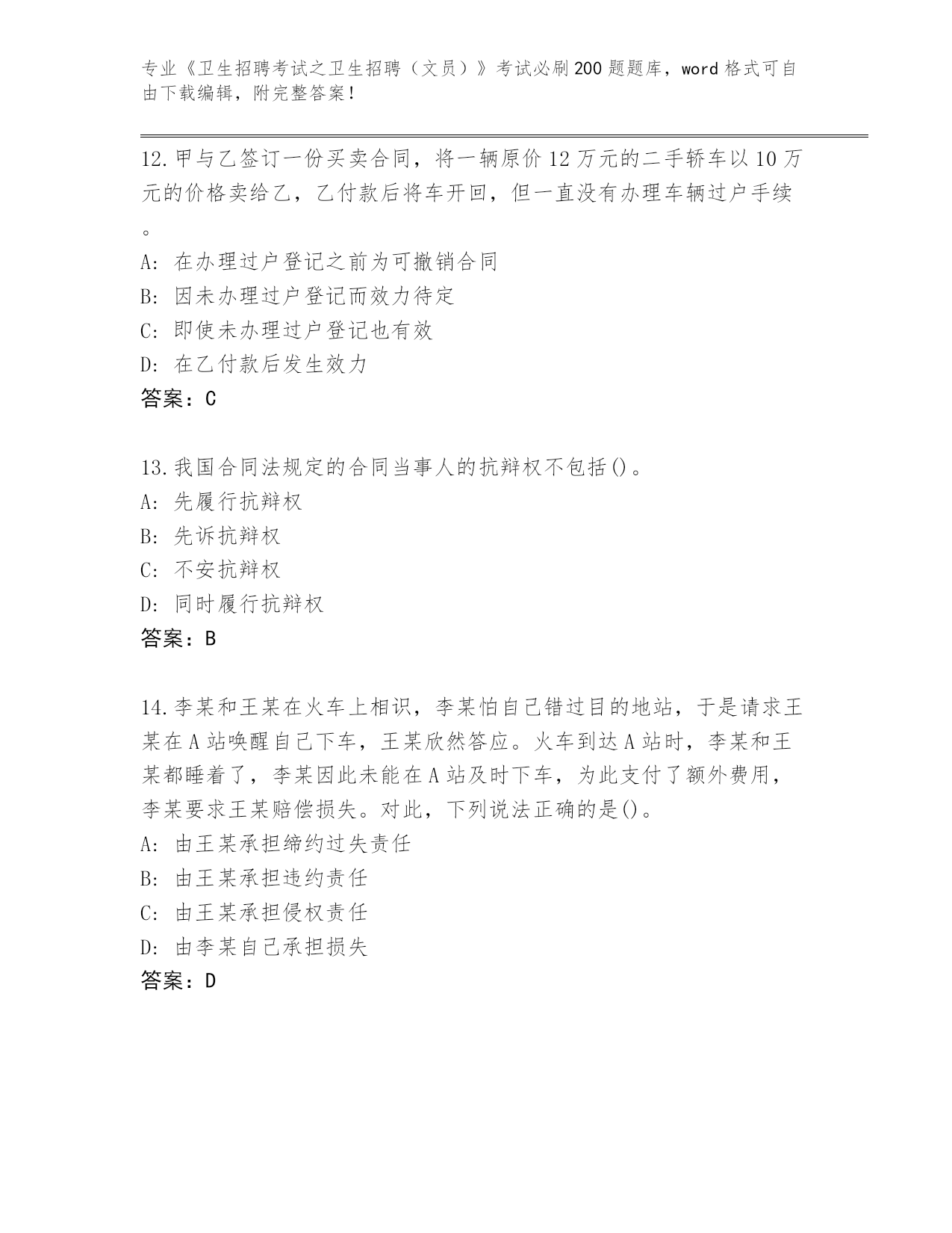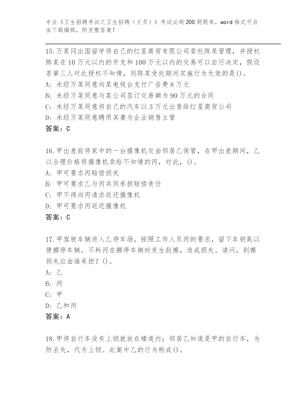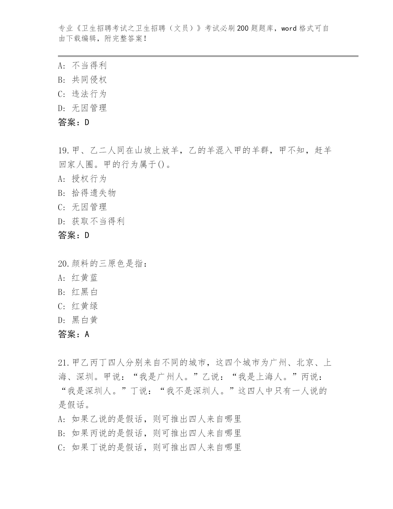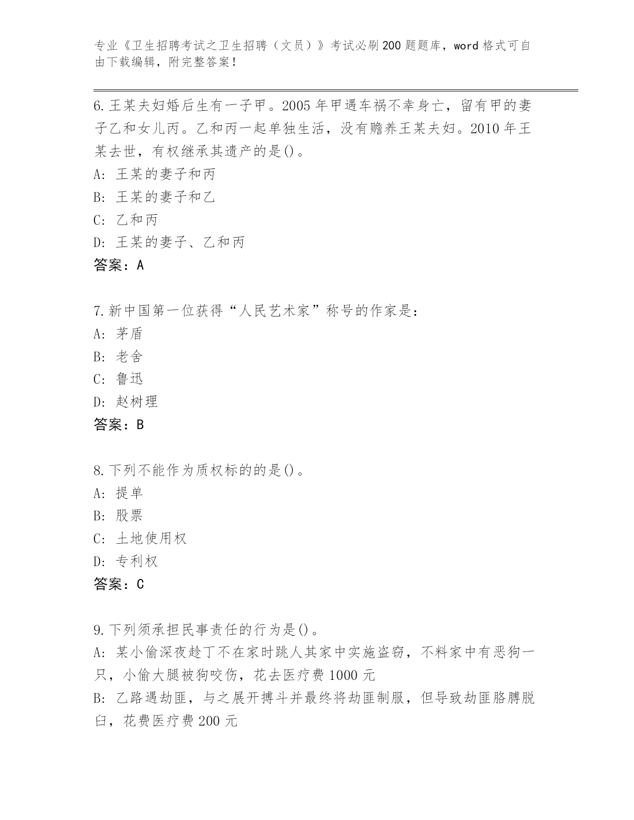 吉林省《卫生招聘考试之卫生招聘(文员)》考试必刷200题真题题库及答案【必刷】