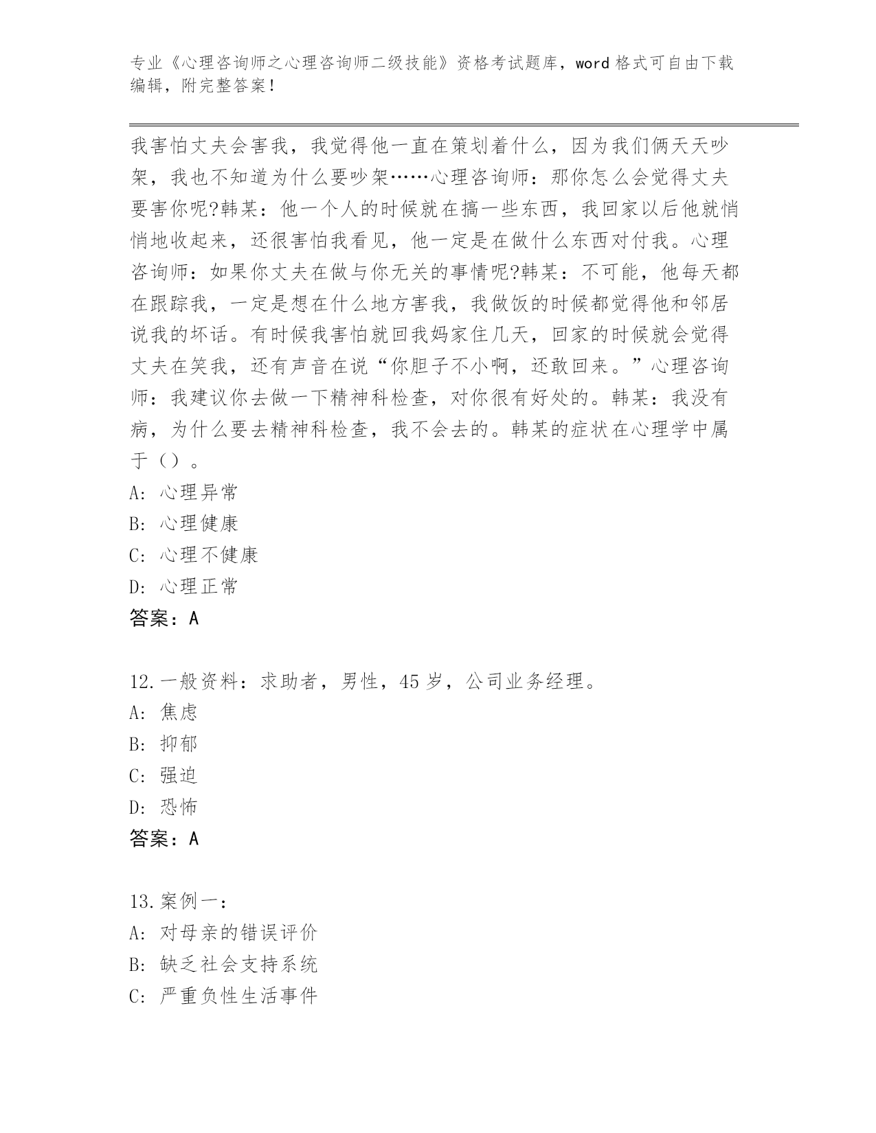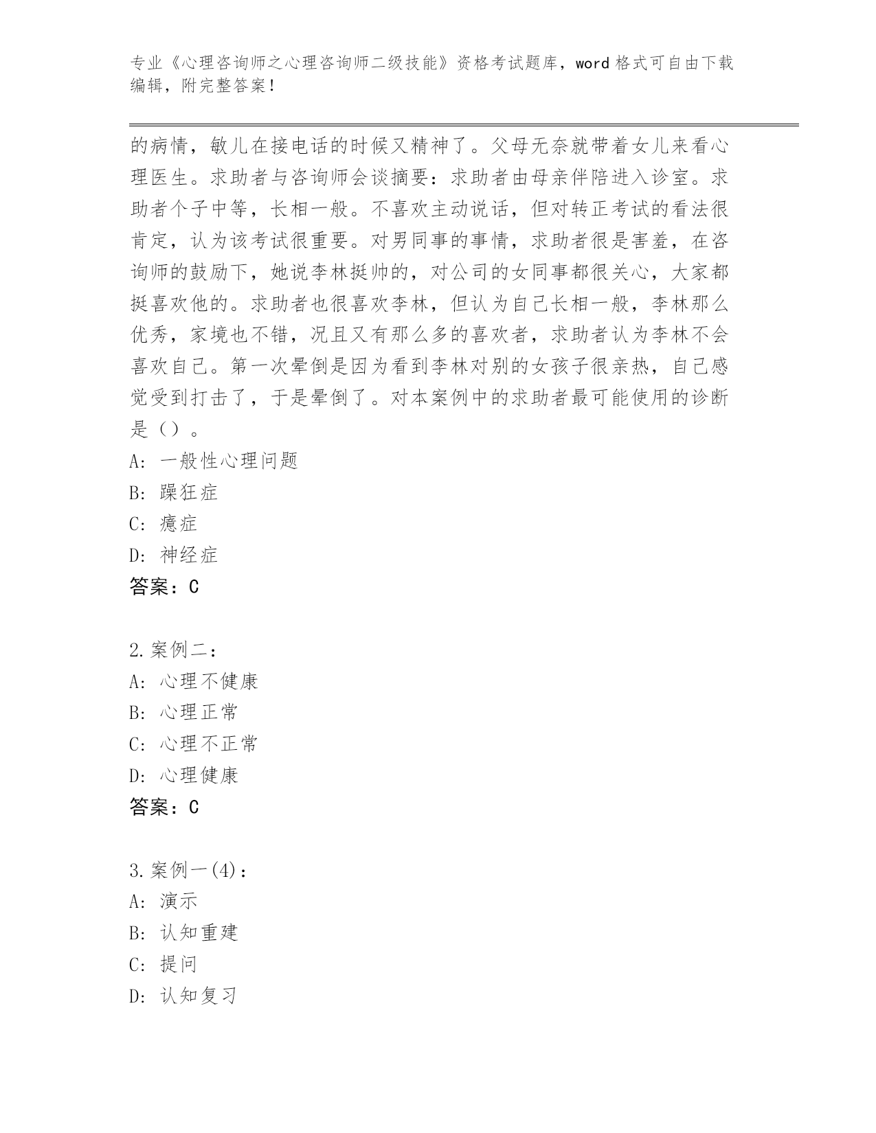 黑龙江省美溪区2024《心理咨询师之心理咨询师二级技能》资格考试完整版审定版