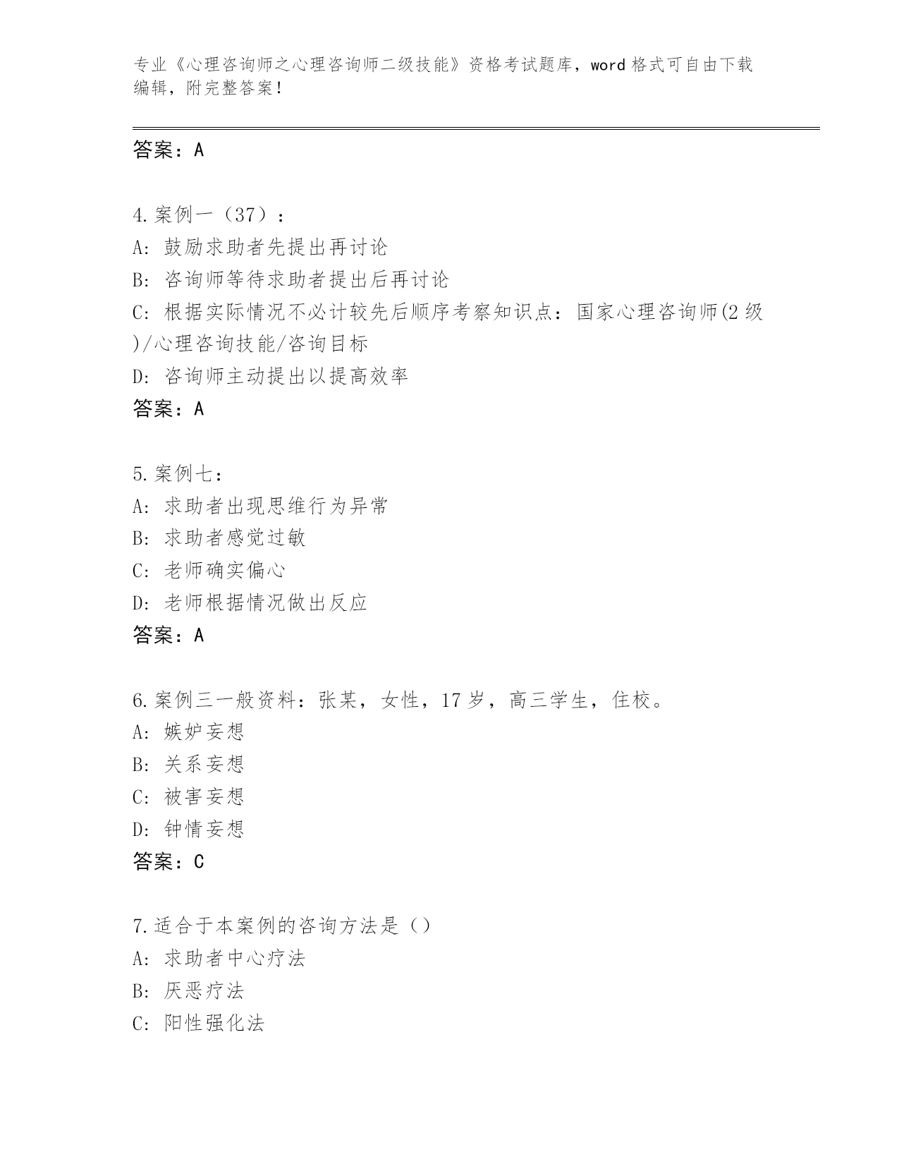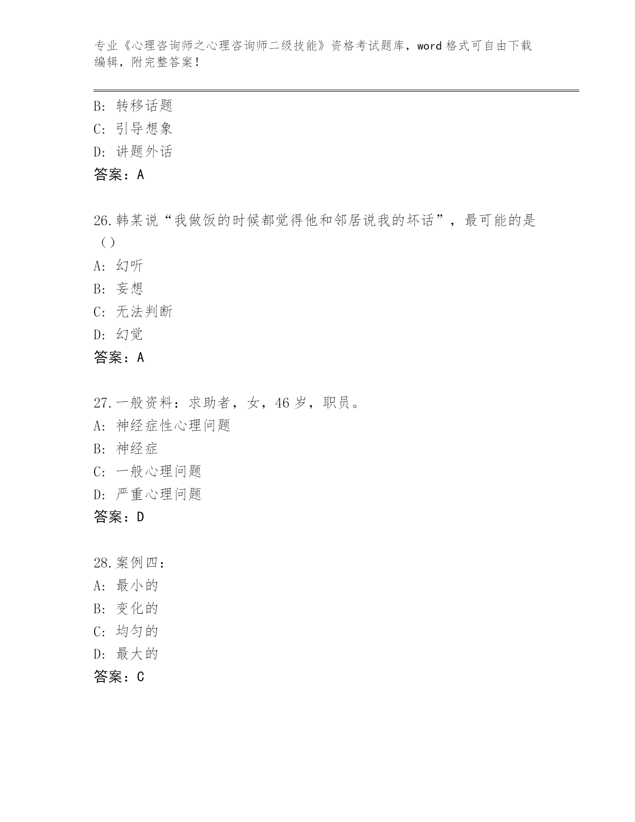 2024年黑龙江省美溪区《心理咨询师之心理咨询师二级技能》考试必刷200题王牌题库(预热题)