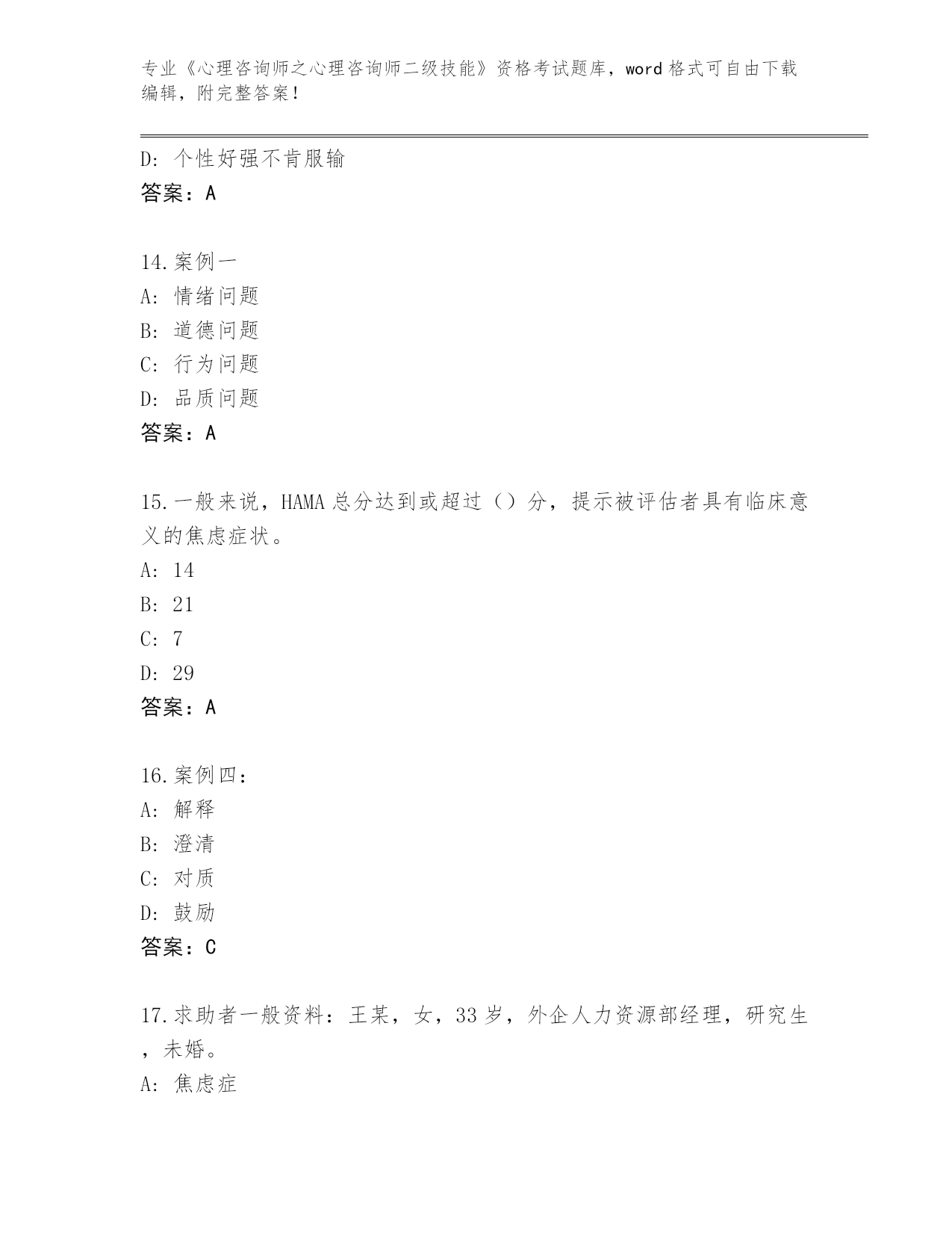 整理广东省宝安区《心理咨询师之心理咨询师二级技能》资格考试王牌题库带解析答案