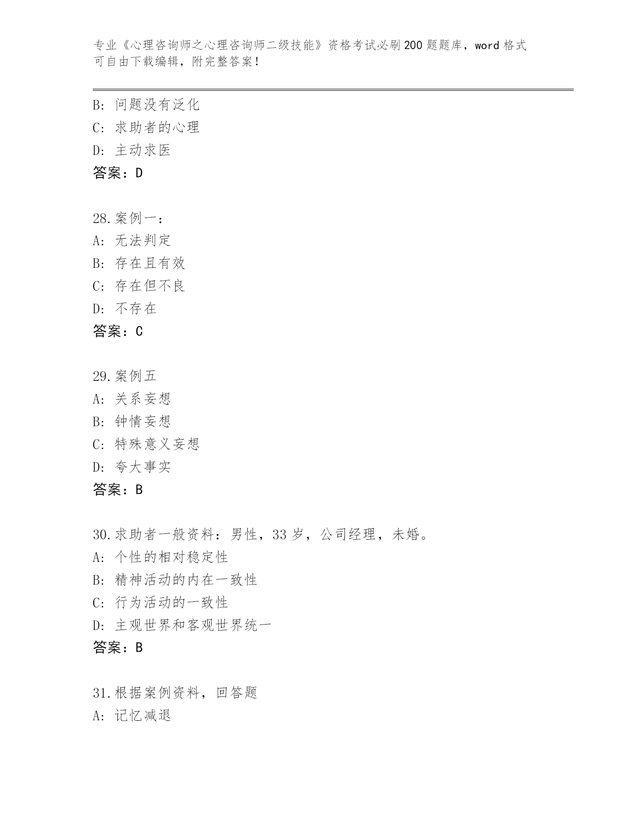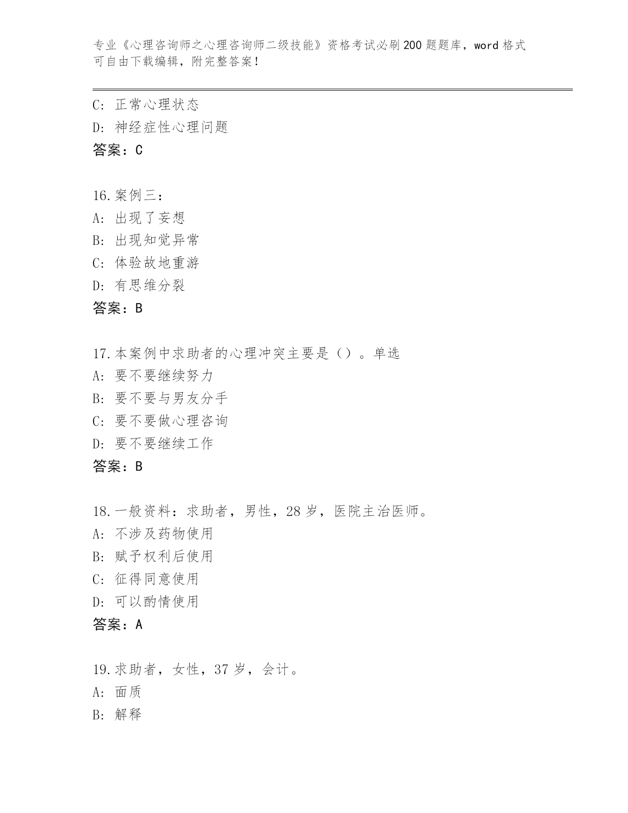 完整版湖北省西塞山区《心理咨询师之心理咨询师二级技能》资格考试必刷200题(预热题)