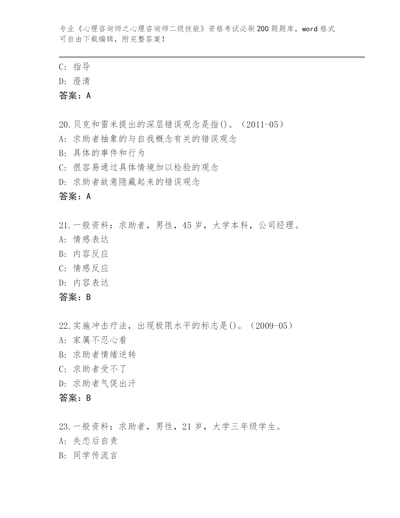 河北省青县《心理咨询师之心理咨询师二级技能》资格考试必刷200题题库(预热题)