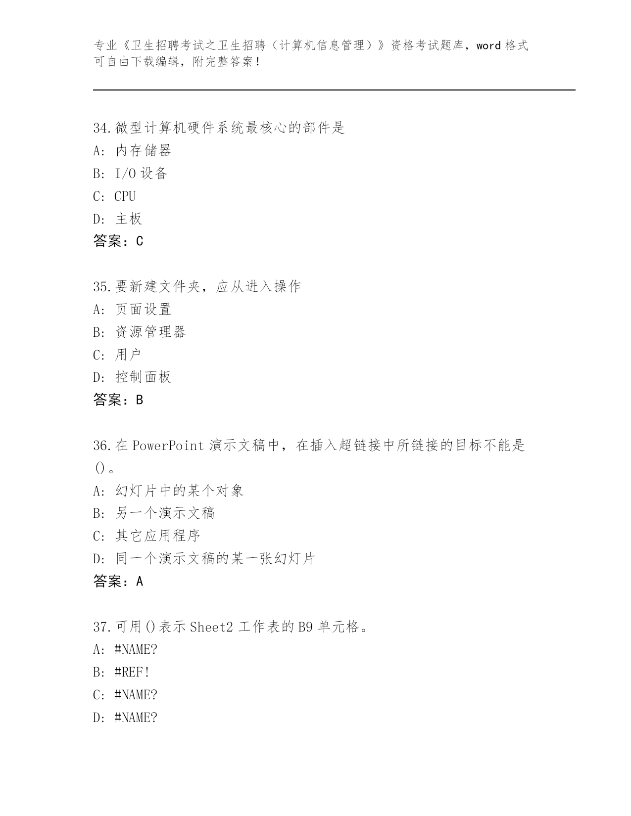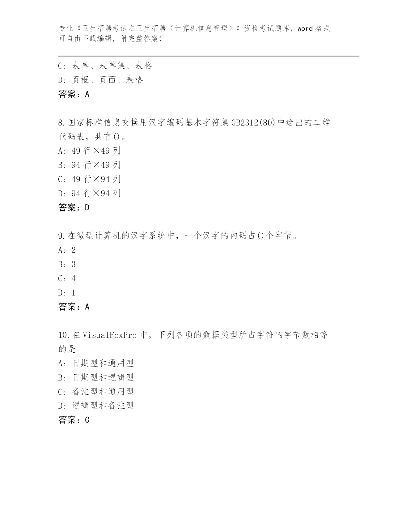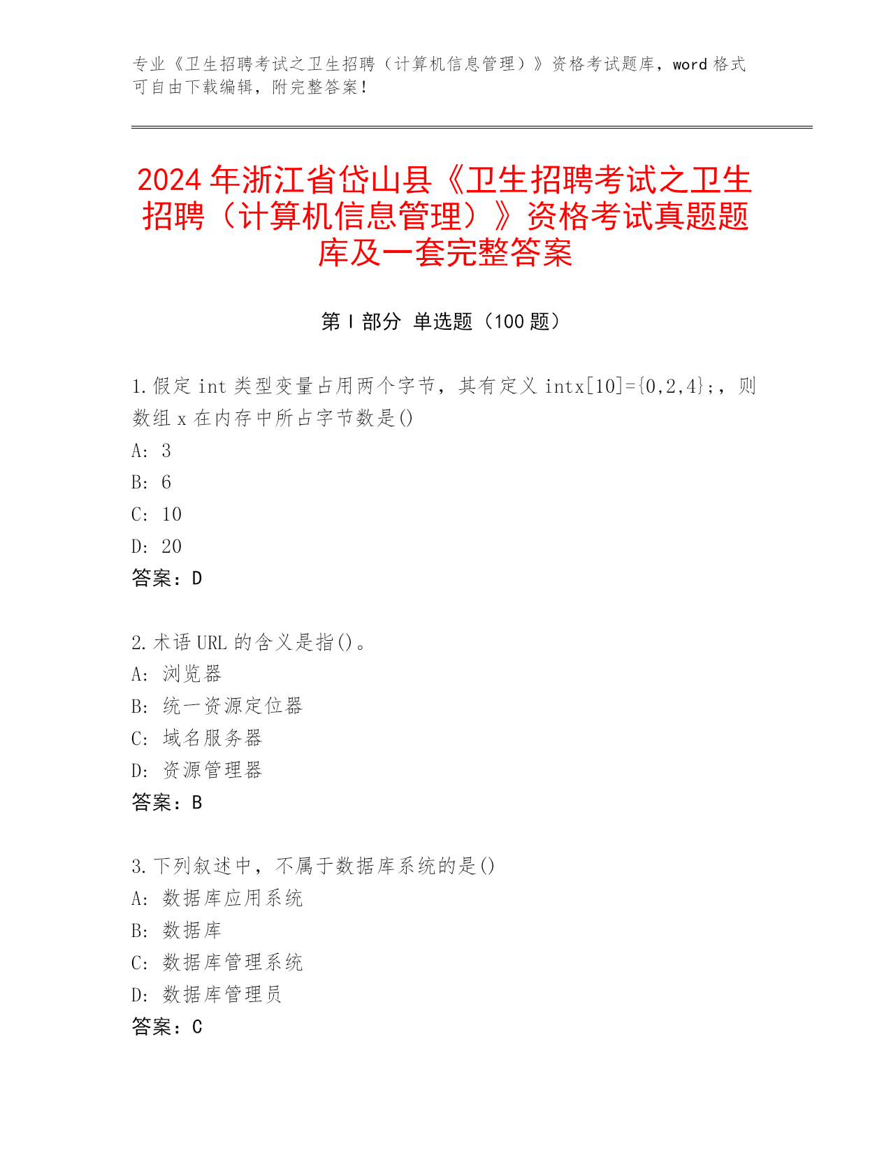 2024年浙江省岱山县《卫生招聘考试之卫生招聘(计算机信息管理)》资格考试真题题库及一套完整答案