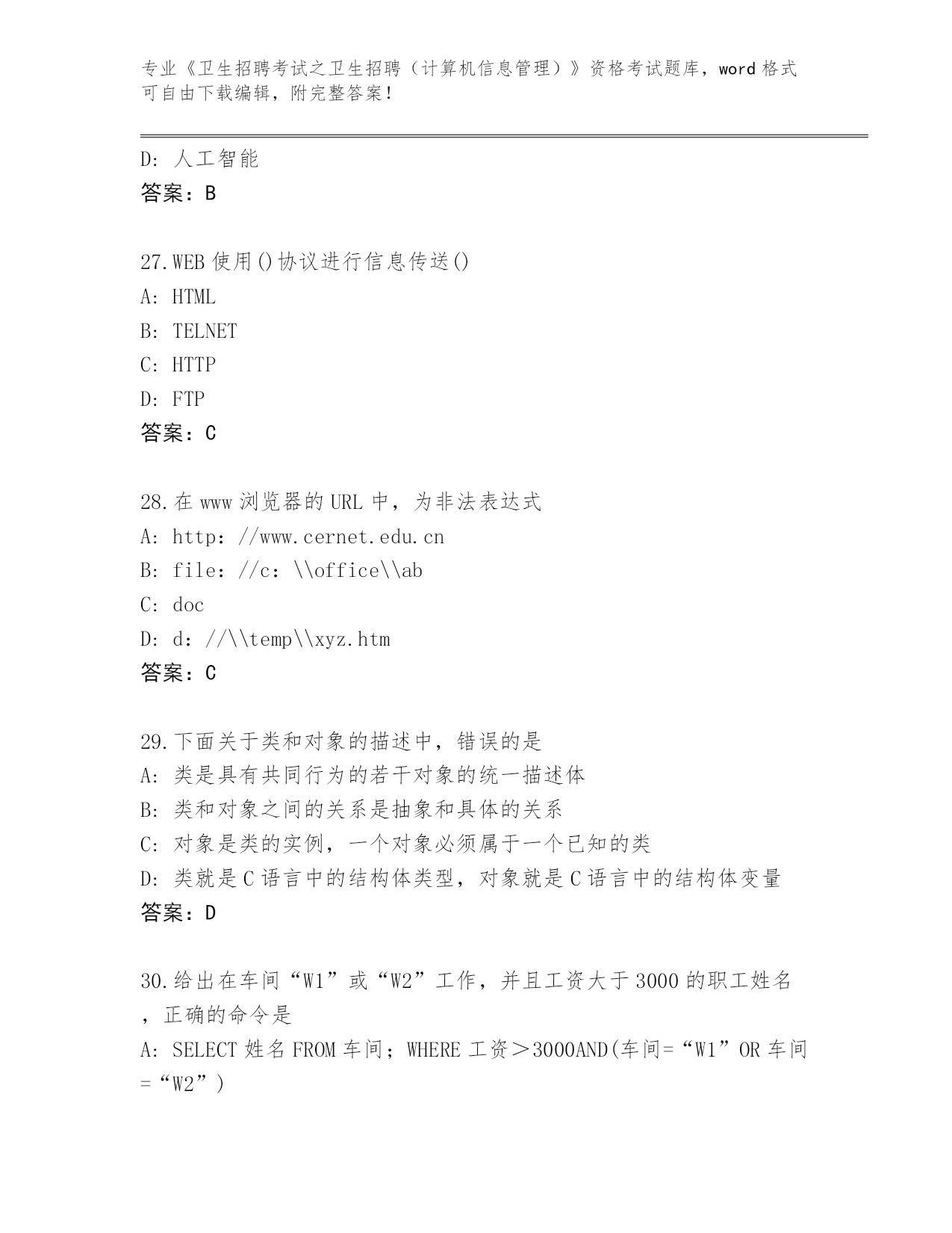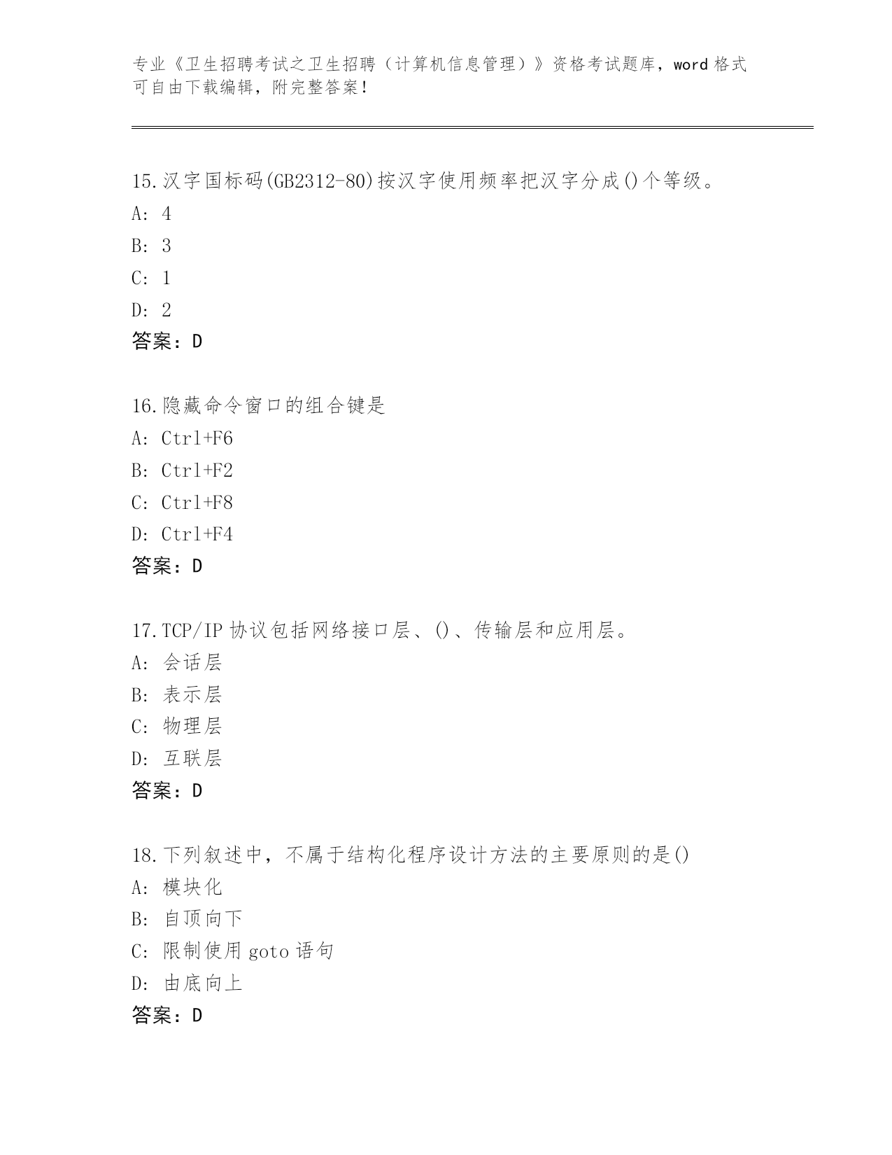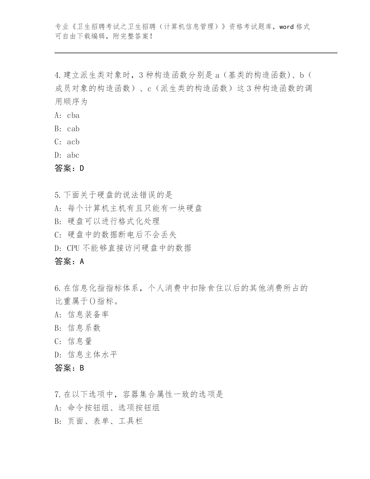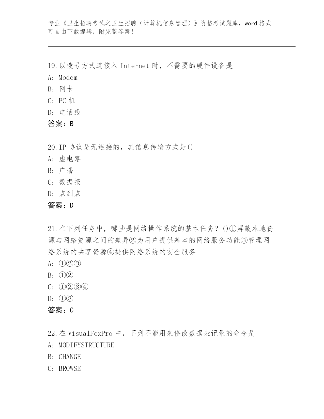 湖南省《卫生招聘考试之卫生招聘(计算机信息管理)》资格考试真题及一套完整答案
