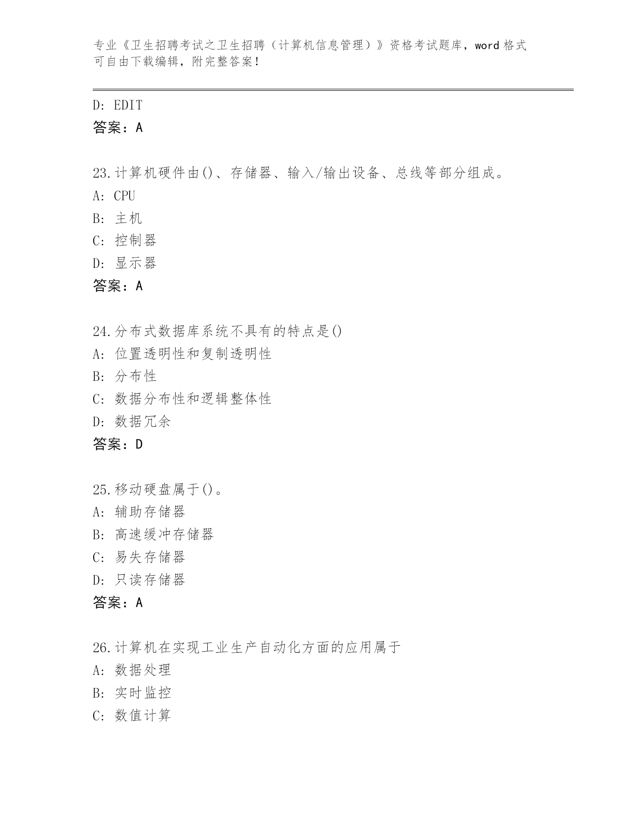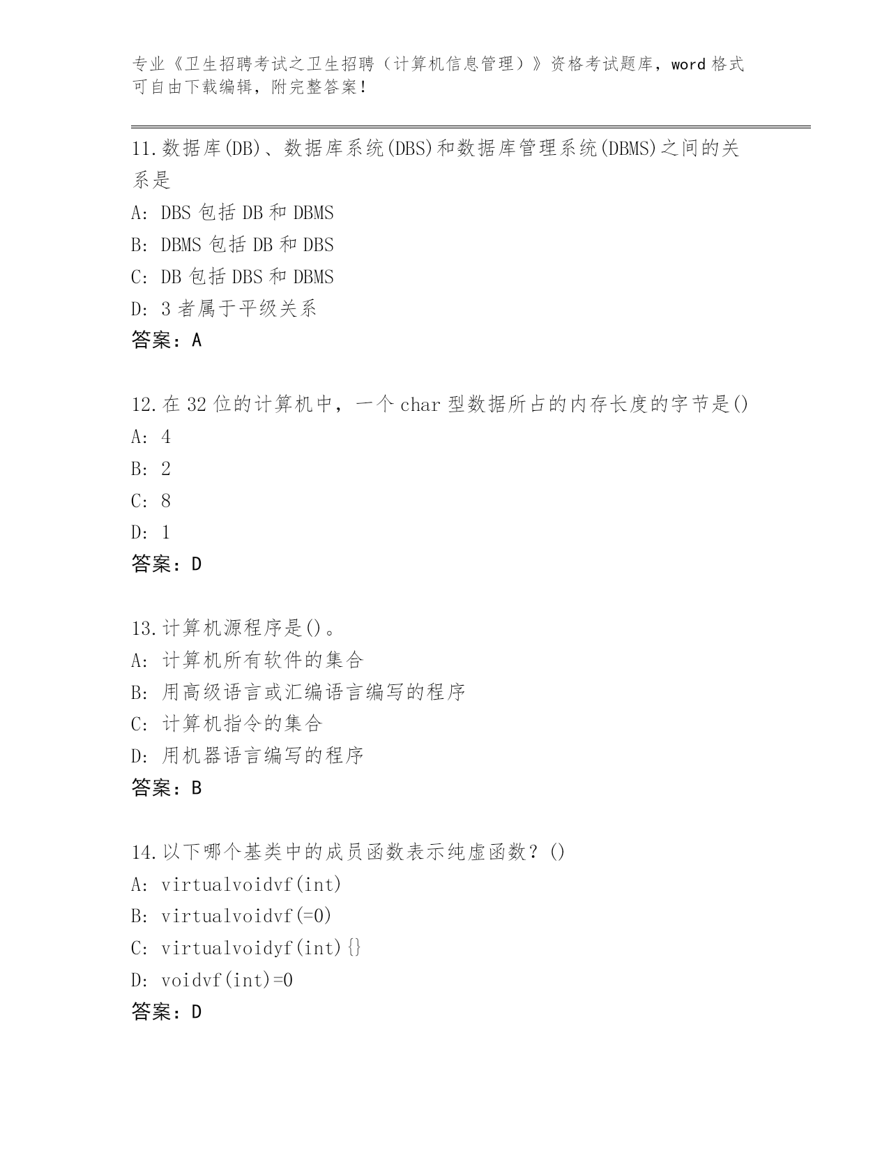 浙江省岱山县2024《卫生招聘考试之卫生招聘(计算机信息管理)》资格考试完整题库有答案