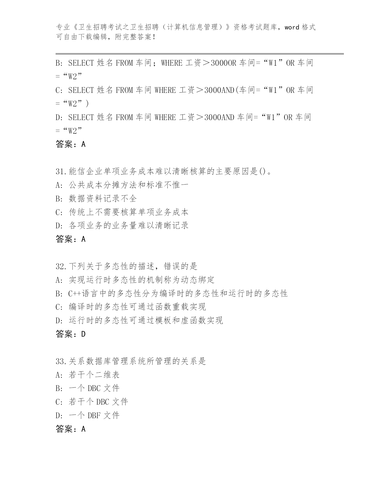 浙江省历年《卫生招聘考试之卫生招聘(计算机信息管理)》资格考试必背200题真题题库及一套完整答案