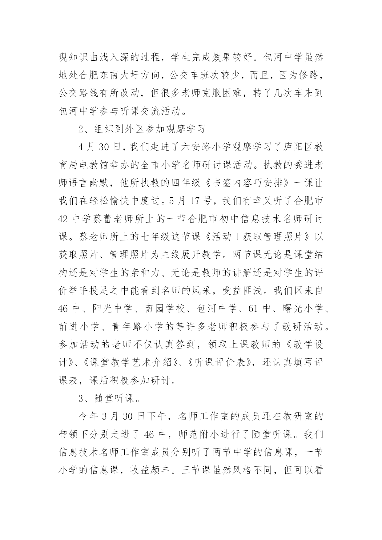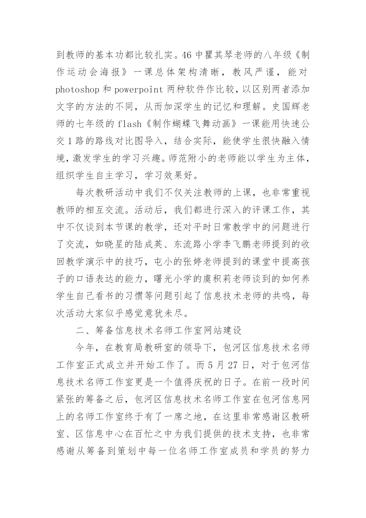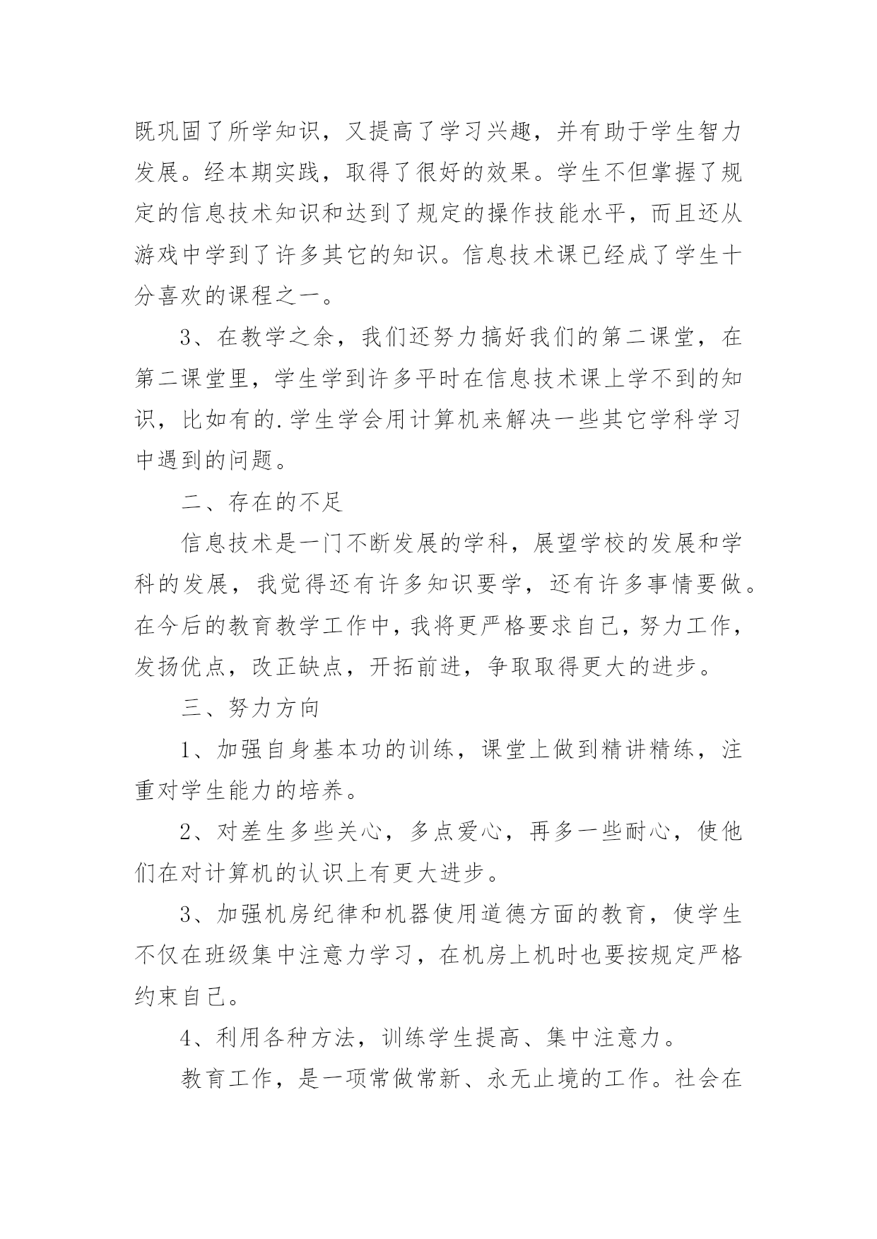 信息技术教研组工作总结总结是把一定阶段内的有关情况分析研究,做出有指导性结论的书面材料,他能够提升我们的书面表达能力,让我们抽出时间写写总结吧。你想知道总结怎么写吗?下面是小编精心整理的信息技术教研组工作总结,仅供参考,欢迎大家阅读。信息技术教研组工作总结1学年即将结束,回顾这一学期,本人能够努力工作,从多方面进行计算机教学工作。有辛勤的耕耘,有收获的喜悦,也有不足与遗憾,现总结如下:一、取得的成绩1、讲课时使用孩子们喜欢的语言,和他们融为一体。有效的调节课堂教学的气氛。灵活多样的使用各种教学方法。多开展一些比赛,刺激孩子们学习。在学生中开展互助小组,优秀的带动困难学生,让孩子们在学习中培养团结互助的精神,达到教书育人的目的精炼教授过程,小孩子一般精力集中的时间有限,抓住有限的时间让他们掌握更多的知识,提高课堂效率。2、在教学中,我经常研究学生的思想发展变化,为了提高学生学习信息技术的兴趣,在不影响教学的情况下,我们从光盘上或到网上去找了一些有利于学生智力发展的小游戏,把这些游戏在学生完成学习任务后给学生玩,让学生既巩固了所学知识,又提高了学习兴趣,并有助于学生智力发展。经本期实践,取得了很好的效果。学生不但掌握了规定的信息技术知识和达到了规定的操作技能水平,而且还从游戏中学到了许多其它的知识。信息技术课已经成了学生十分喜欢的课程之一。3、在教学之余,我们还努力搞好我们的第二课堂,在第二课堂里,学生学到许多平时在信息技术课上学不到的知识,比如有的.学生学会用计算机来解决一些其它学科学习中遇到的问题。二、存在的不足信息技术是一门不断发展的学科,展望学校的发展和学科的发展,我觉得还有许多知识要学,还有许多事情要做。在今后的教育教学工作中,我将更严格要求自己,努力工作,发扬优点,改正缺点,开拓前进,争取取得更大的进步。三、努力方向1、加强自身基本功的训练,课堂上做到精讲精练,注重对学生能力的培养。2、对差生多些关心,多点爱心,再多一些耐心,使他们在对计算机的认识上有更大进步。3、加强机房纪律和机器使用道德方面的教育,使学生不仅在班级集中注意力学习,在机房上机时也要按规定严格约束自己。4、利用各种方法,训练学生提高、集中注意力。教育工作,是一项常做常新、永无止境的工作。社会在发展,时代在前进,学生的特点和问题也在发生着不断的变化。作为有责任感的教育工作者,必须以高度的敏感性和自觉性,及时发现、研究和解决学生教育和管理工作中的新情况、新问题,掌握其特点、发现其规律,尽职尽责地做好工作,以完成我们肩负的神圣历史使命。信息技术教研组工作总结2本学期我校信息技术教研组在校领导的关心支持下,有计划地开展信息技术教研工作,一步一个脚印,扎实工作,开拓进取,总结本学期我们所做的工作,主要有以下几个方面:1.继续开展教学沙龙。教学沙龙有利于教师教学工作的改进。这学期正式沙龙开展一次,另外组内老师根据自身碰到的`教学问题,采取多种方式进行讨论。2.开展校网页制作大赛。应学校科技节内容,我们开展了校网页制作大赛。同时选拔学生参加区现场网页制作大赛,由余老师负责学生的培训。本次参赛成绩喜人。选拔参加区第二十一届青少年科技节的黄思璐同学获得区现场网页制作大赛一等奖。3.教学研讨。本学期教研组就Arduni和3d打印绘制等创客新鲜内容组织老师进行了学习,虽然还是简单粗浅地进行了解,这些活动旨在培养老师的兴趣。另外还组织老师参观了一些兄弟学校的创客基地。总之,在一个学期以来我们默默地做好教学教研工作,当然也存在诸多不足之处。我们在接下来新学年中会再接再厉继续努力。信息技术教研组工作总结3弹指一挥间,我在教师的岗位上又平凡地走过了一学期。这一学期来的工作自己没有取得太大的成绩。但是,在校领导和同事们的帮助下,我顺利地完成了本学期的工作。为了总结过去,扬长避短,使自己站得更高、走得更好,寄望明天的工作更为进步,现将本学期工作情况总结如下:一、思想方面我在思想上严以律己,热爱党的教育事业。与老师团结合作,能够正确处理好教师之间、师生之间的关系,特别尊敬老教师,把他们作为自己学习的榜样。一学期来,我还积极参加各类政治业务学习,努力提高自己的政治水平和业务水平。遵守学校各项规章制度,服从学校的各项工作安排。二、教学方面我是学校的信息技术专职教师,这学年担任了学校五、六年级的信息技术教学工作。在信息技术教学过程中,我始终要求自己做到:课前精心准备、课堂认真教学、课后细细反思,并结合学校信息技术教学设施的实际情况,针对性地选择教学内容对学生进行教学,本期重点对五年级学生进行了网站制作内容的教学,所教学生绝大多数都能利用计算机制作出一份简单的网页,能在规定时间内完成任务,同时注重了对学生信息素养的培养,提高了学生的信息技术处理能力。此外,我还负责学校远程教育资源的'接收工作