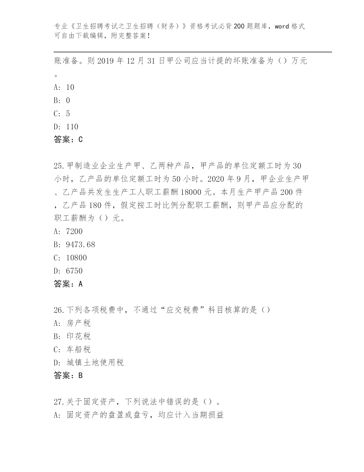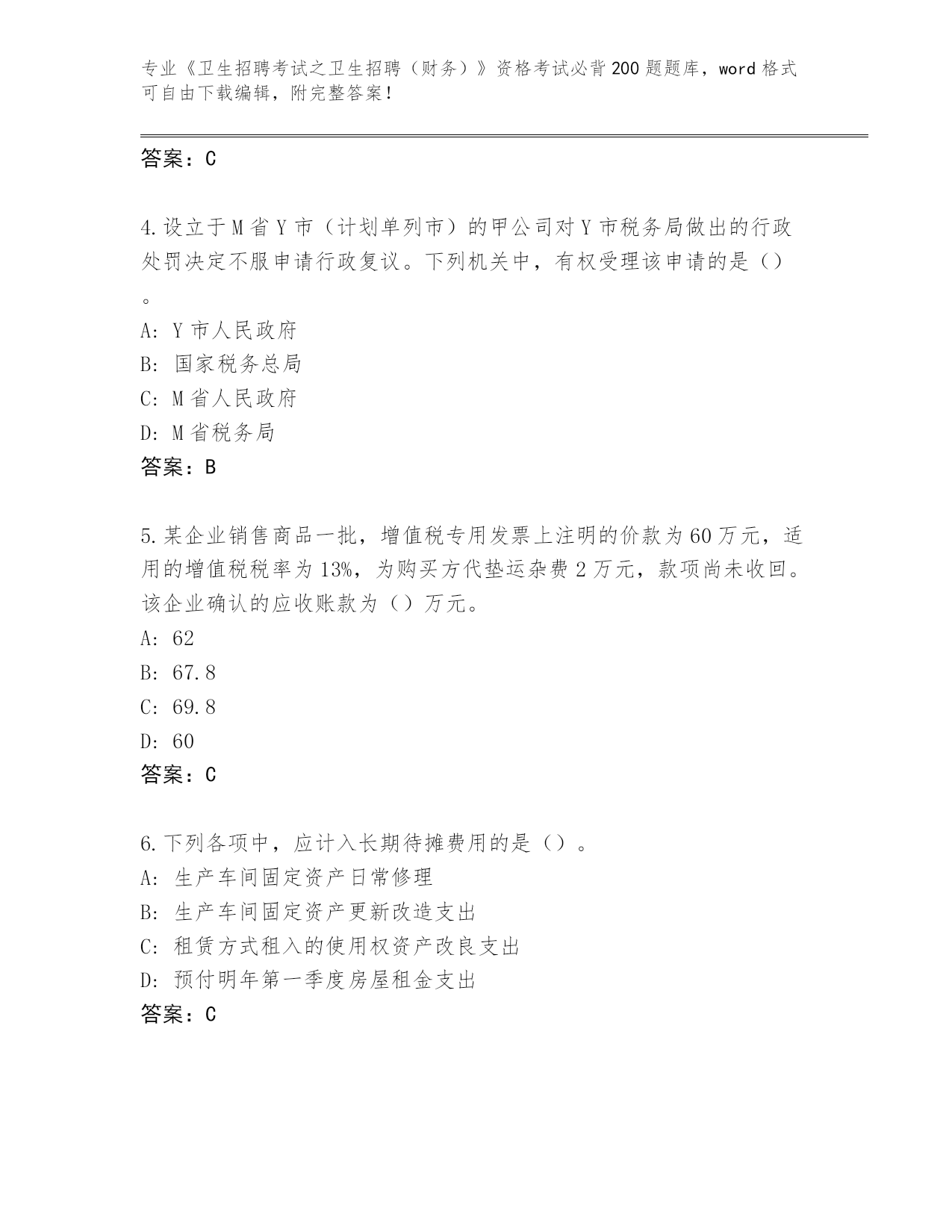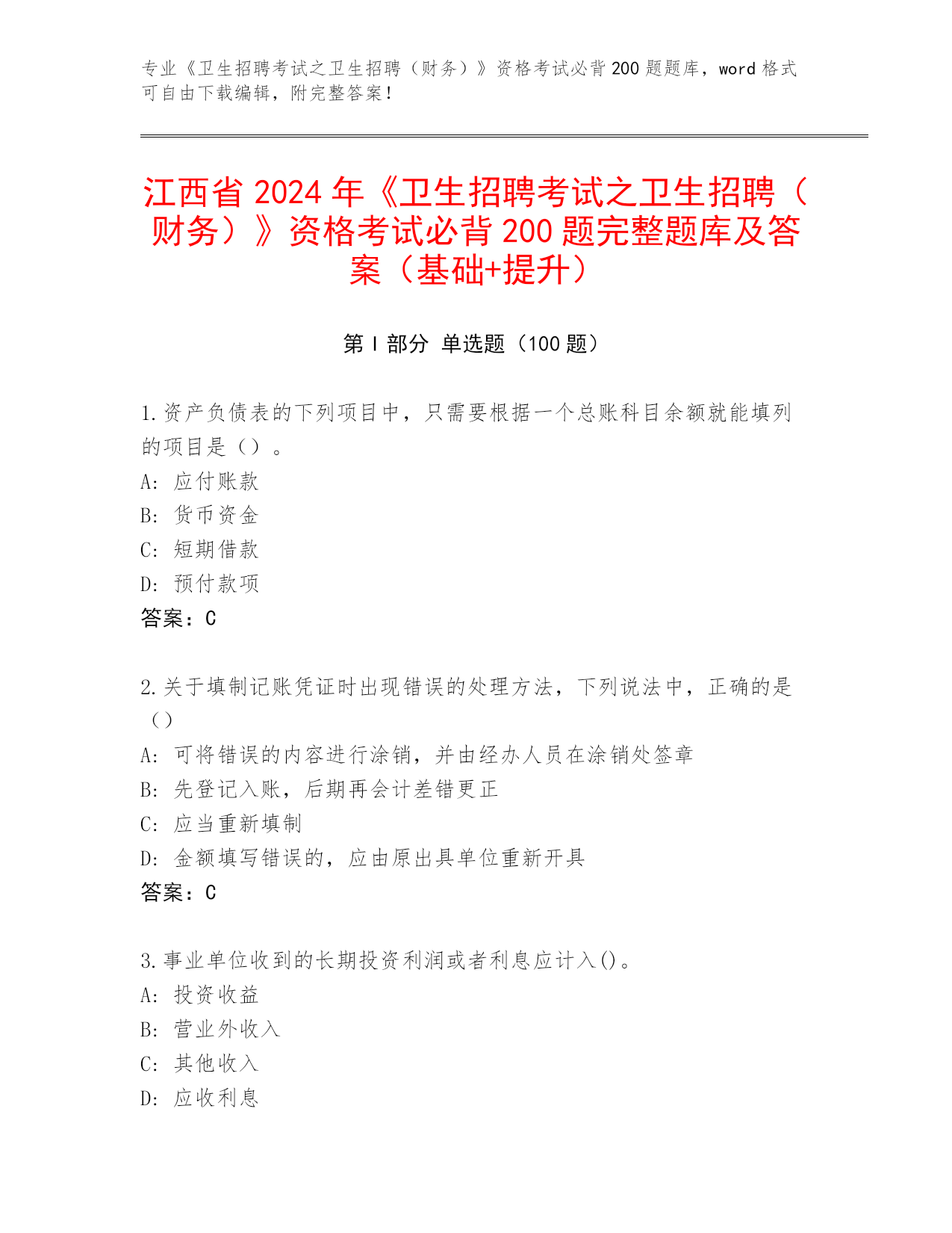 江西省《卫生招聘考试之卫生招聘(财务)》资格考试必背200题【基础题】