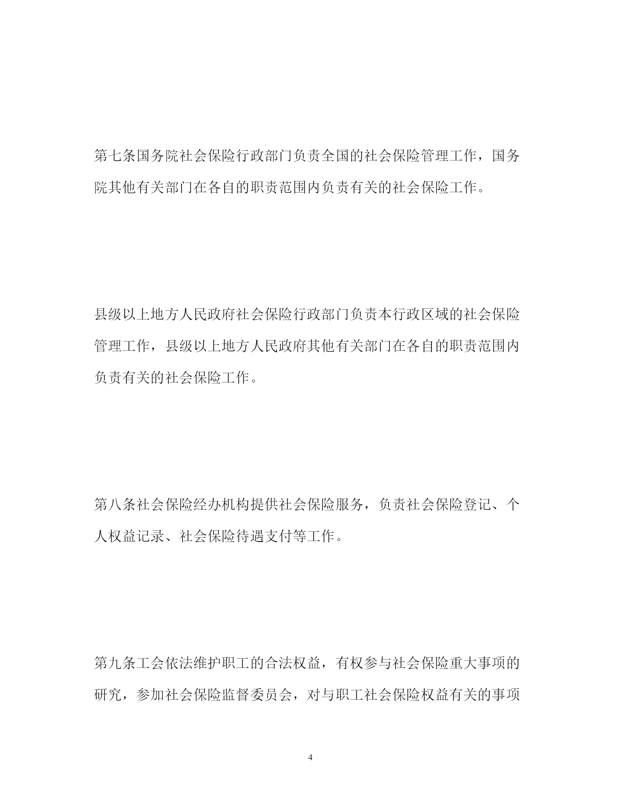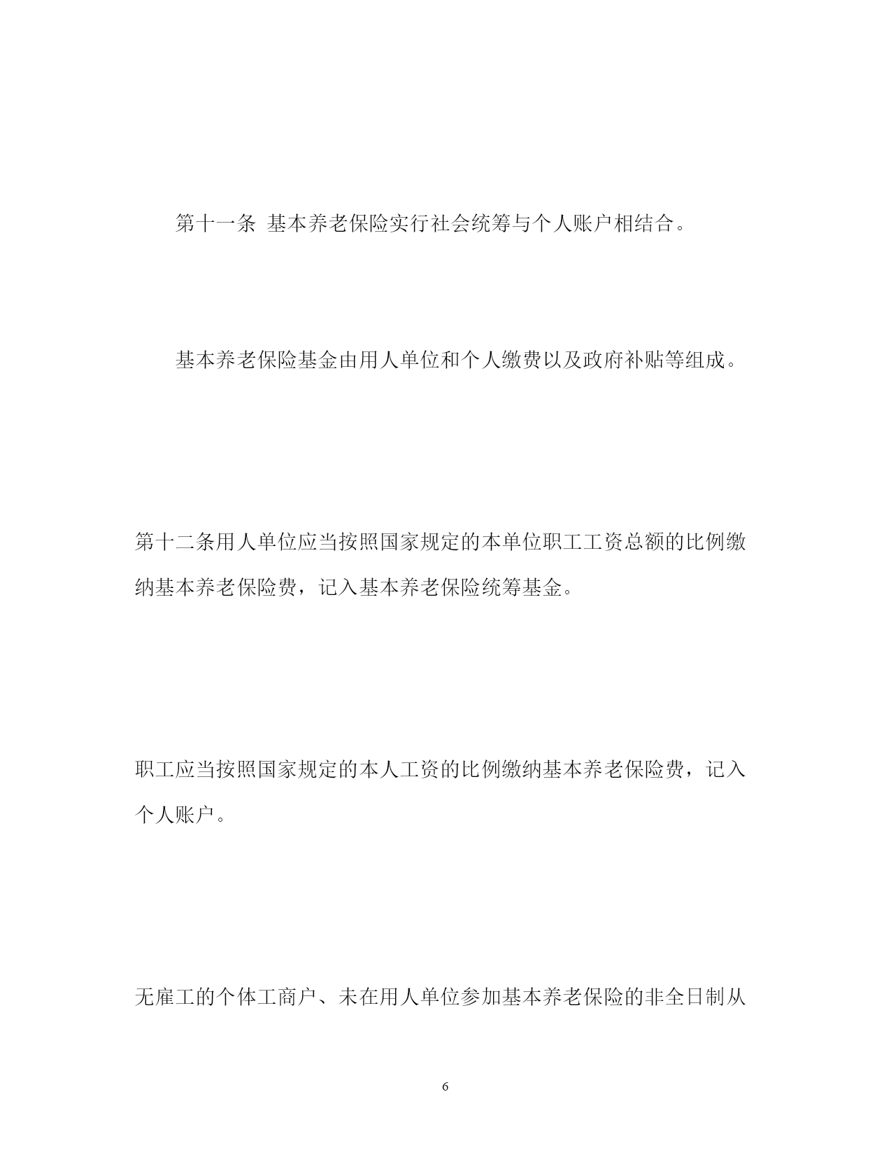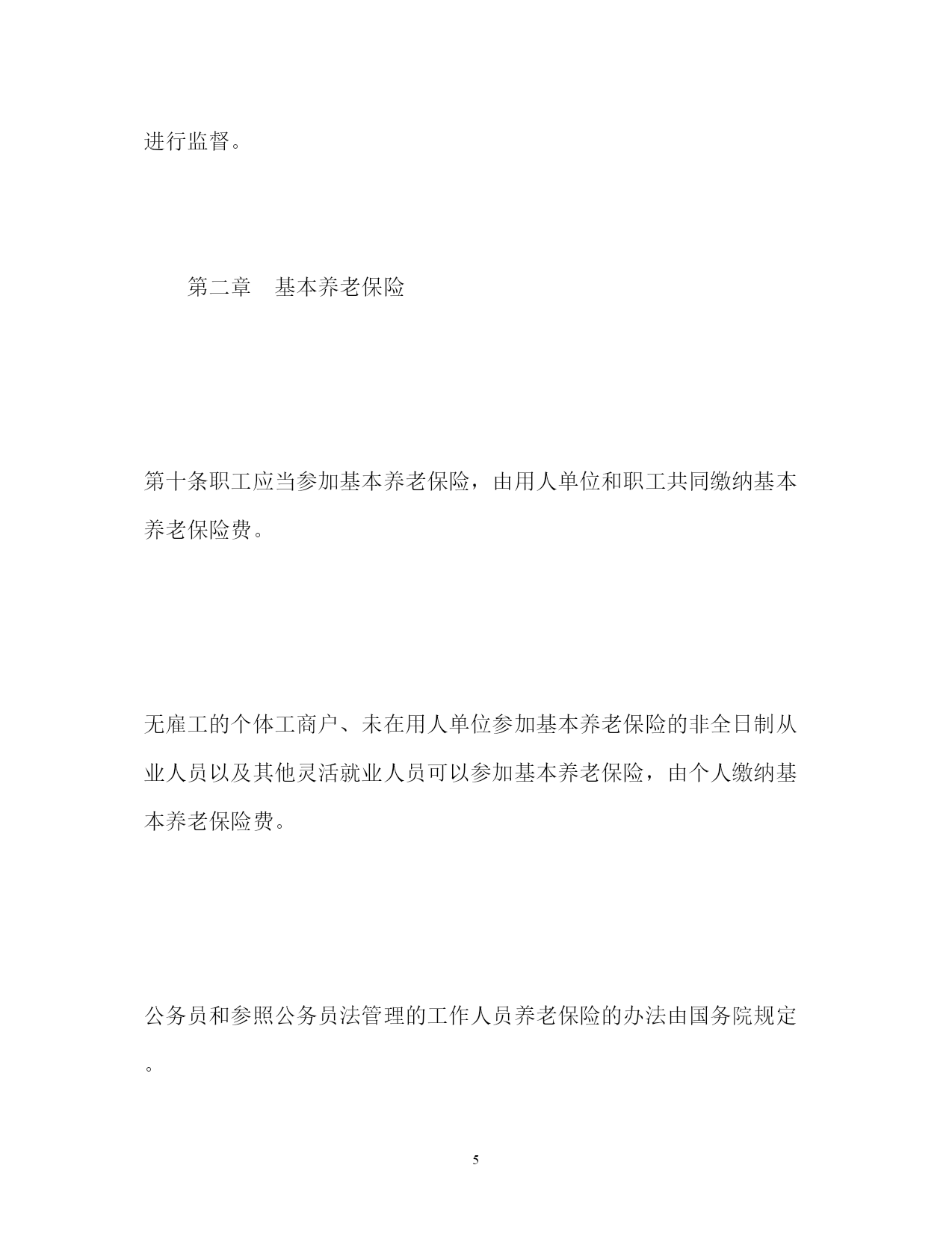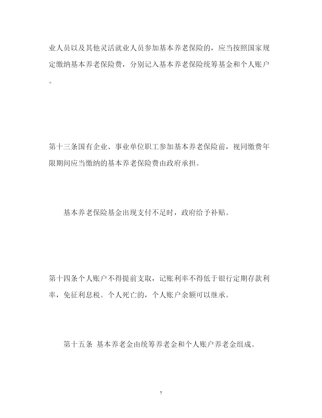 此资料由网络收集而来,如有侵权请告知上传者立即删除。资料共分享,我们负责传递知识。PAGEPAGE22最新社会保险法全文最新社会保险法全文第一章总则第一条为了规范社会保险关系,维护公民参加社会保险和享受社会保险待遇的合法权益,使公民共享发展成果,促进社会和谐稳定,根据宪法,制定本法。第二条国家建立基本养老保险、基本医疗保险、工伤保险、失业保险、生育保险等社会保险制度,保障公民在年老、疾病、工伤、失业、生育等情况下依法从国家和社会获得物质帮助的权利。第三条社会保险制度坚持广覆盖、保基本、多层次、可持续的方针,社会保险水平应当与经济社会发展水平相适应。第四条中华人民共和国境内的用人单位和个人依法缴纳社会保险费,有权查询缴费记录、个人权益记录,要求社会保险经办机构提供社会保险咨询等相关服务。个人依法享受社会保险待遇,有权监督本单位为其缴费情况。第五条县级以上人民政府将社会保险事业纳入国民经济和社会发展规划。国家多渠道筹集社会保险资金。县级以上人民政府对社会保险事业给予必要的经费支持。国家通过税收优惠政策支持社会保险事业。第六条国家对社会保险基金实行严格监管。国务院和省、自治区、直辖市人民政府建立健全社会保险基金监督管理制度,保障社会保险基金安全、有效运行。县级以上人民政府采取措施,鼓励和支持社会各方面参与社会保险基金的监督。第七条国务院社会保险行政部门负责全国的社会保险管理工作,国务院其他有关部门在各自的职责范围内负责有关的社会保险工作。县级以上地方人民政府社会保险行政部门负责本行政区域的社会保险管理工作,县级以上地方人民政府其他有关部门在各自的职责范围内负责有关的社会保险工作。第八条社会保险经办机构提供社会保险服务,负责社会保险登记、个人权益记录、社会保险待遇支付等工作。第九条工会依法维护职工的合法权益,有权参与社会保险重大事项的研究,参加社会保险监督委员会,对与职工社会保险权益有关的事项进行监督。第二章基本养老保险第十条职工应当参加基本养老保险,由用人单位和职工共同缴纳基本养老保险费。无雇工的个体工商户、未在用人单位参加基本养老保险的非全日制从业人员以及其他灵活就业人员可以参加基本养老保险,由个人缴纳基本养老保险费。公务员和参照公务员法管理的工作人员养老保险的办法由国务院规定。第十一条基本养老保险实行社会统筹与个人账户相结合。基本养老保险基金由用人单位和个人缴费以及政府补贴等组成。第十二条用人单位应当按照国家规定的本单位职工工资总额的比例缴纳基本养老保险费,记入基本养老保险统筹基金。职工应当按照国家规定的本人工资的比例缴纳基本养老保险费,记入个人账户。无雇工的个体工商户、未在用人单位参加基本养老保险的非全日制从业人员以及其他灵活就业人员参加基本养老保险的,应当按照国家规定缴纳基本养老保险费,分别记入基本养老保险统筹基金和个人账户。第十三条国有企业、事业单位职工参加基本养老保险前,视同缴费年限期间应当缴纳的基本养老保险费由政府承担。基本养老保险基金出现支付不足时,政府给予补贴。第十四条个人账户不得提前支取,记账利率不得低于银行定期存款利率,免征利息税。个人死亡的,个人账户余额可以继承。第十五条基本养老金由统筹养老金和个人账户养老金组成。基本养老金根据个人累计缴费年限、缴费工资、当地职工平均工资、个人账户金额、城镇人口平均预期寿命等因素确定。第十六条参加基本养老保险的个人,达到法定退休年龄时累计缴费满十五年的,按月领取基本养老金。参加基本养老保险的个人,达到法定退休年龄时累计缴费不足十五年的,可以缴费至满十五年,按月领取基本养老金;也可以转入新型农村社会养老保险或者城镇居民社会养老保险,按照国务院规定享受相应的养老保险待遇。第十七条参加基本养老保险的个人,因病或者非因工死亡的,其遗属可以领取丧葬补助金和抚恤金;在未达到法定退休年龄时因病或者非因工致残完全丧失劳动能力的,可以领取病残津贴。所需资金从基本养老保险基金中支付。第十八条国家建立基本养老金正常调整机制。根据职工平均工资增长、物价上涨情况,适时提高基本养老保险待遇水平。第十九条个人跨统筹地区就业的,其基本养老保险关系随本人转移,缴费年限累计计算。个人达到法定退休年龄时,基本养老金分段计算、统一支付。具体办法由国务院规定。第二十条国家建立和完善新型农村社会养老保险制度。新型农村社会养老保险实行个人缴费、集体补助和政府补贴相结合。第二十一条新型农村社会养老保险待遇由基础养老金和个人账户养老金组成。参加新型农村社会养老保险的农