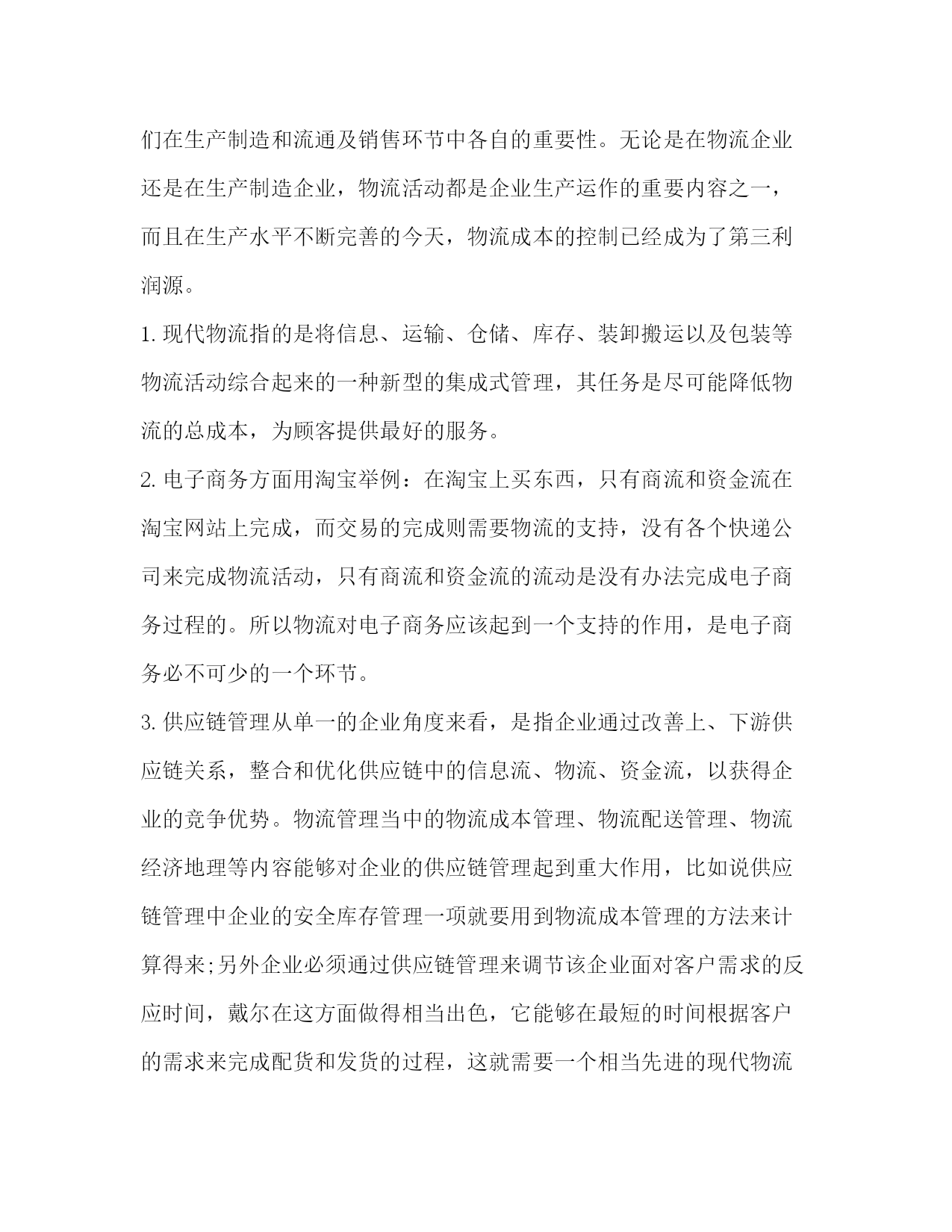 PAGE此资料由网络收集而来,如有侵权请告知上传者立即删除。资料共分享,我们负责传递知识。物流管理课程心得体会物流管理需要学习。现代物流指的是将信息、运输、仓储、库存、装卸搬运以及包装等物流活动综合起来的一种新型的集成式管理。以下小编为你带来物流管理课程心得体会,希望对你有所帮助!物流管理课程心得体会篇1为期一周的实训在我们的努力与成长中结束了,可是在这次的实训的精神却永远的留在了我们的心里。这次实训中让我们把书面上的知识运用到了实际,这样不仅加深我们对ERP的理解,巩固了所学的理论知识,而且增强了我们的可操作能力。通过一周的实训,对企业生产运作有了系统的认识。在实训中对各种具体操作有了一定的理论基础,然后将理论与实际操作相结合,在实践中提高运用知识的能力。实训期间,最大的收获是从以往的错误中不断改正学习提高了个人能力。首先我得承认,这次的实训给了自己好大的提升,无论是学习中、还是同学的交流中。每一次讨论和交流都会使我对某个问题有一个新的认识,当然针对某个问题的争论是难免的啦,这正好能让我们更深刻的去认识这个问题,去更好的解决它。实训是结束了,可是实训中的种种确实在我们的心中牢牢记住,也让我们在以后的生活中更够更好的发挥。我们实训的内容主要是了解企业组织结构、ERP、企业生产的运作及管理,熟悉生产企业工作的基本流程以及一些基础单证的制作。在此次实训中我是我们北京梦工厂儿童玩具有限责任公司的一线员工,虽然是一线员工但我感觉自己的工作责任重大,深刻认识到企业产品要有好的质量才有更好的市场,本着以质量求生存,效率求发展的理念认真负责的做好本职工作。虽然我们这个部门要面对很多复杂的制作工艺与很多的原材料零部件,但是有我们生产部门的共同努力,精心协作,一个又一个难关被攻破,认真负责、积极进取的工作态度,才能高效快速且保质保量的完成公司下达的生产任务,。我为能作为我们梦工厂的一员倍感荣耀,因为我们这个团队是一个充满激情与活力的团队,是一个团结与高效的团队,是一个认真与负责的团队。虽然在实践操作中也出现了不少这样那样的的失误与不足,但整体还是相当不错,每个员工所付出的努力也是有价值的,公司的成绩与发展也是显而易见的。每个员工在自己的工作岗位上都得到了很好的锻炼,所学知识在实践中得到应用与检验,是自己对知识的掌握更加牢固,为将来工作积累下了宝贵的经验。当然在此次的实训中我们公司也遇到过很多问题,处理问题的方法与方式也有许多的不足。也暴露出公司存在的很多问题需要解决。总结公司主要存在以下几方面问题:其一,公司各部门职权责任不明确,有点不明确自己的本职工作是什么,自己该处理哪些单据,管理哪些数据,致使有些任务没有及时完成,职责没有明确划分,责权不明晰。其二,公司各个部门之间缺少互动与联系,一个生产任务下达下来,有的部门还不知道该干什么,需用那些原料与设备,很是盲目。缺少沟通导致原料零部件的采购,入库、仓储等一系列活动没有及时的完成,耽误了生产时间。其三,公司职员任务分配问题,领导没有合理的安排,导致有些员工忙得不可开交,有些却闲的无所事事。到头来工作效率还不是很高,反而影响生产计划。其四,各个主管出现越权管理与指挥,管理有些混乱,只是有些工作得不到及时的安排,有些问题也没得到及时的处理。好在这些问题及时发现,CEO也在工作总结大会上做了纠正与处理,相信我们的这个团队会在今后的工作中做得更好,相信我们公司的明天会更好,相信我们。在此次实训的过程中我的心得体会有以下几点:其一,在此次实训中,我深深地体会到积累知识的重要性。在竞争如此激烈的社会中,只有努力充实自己才能够站得住不被淘汰。其二,敬业、责任、激情,一个好的员工必须具备的三种素质,只有好的态度,才有好的团队,好的产品,好的效率。爱岗敬业,热爱本职工作,用无限的热情投入到自己的工作当中,良好的责任心也是必不可少的,真正把公司当成自己的家,认真的做好本职工作,在自己的岗位上去实现自己的人生价值。其三,通过团队合作,我们懂得了合作的重要性以及懂得了怎样去配合一个团队,在这次的实训中我们的团队精神可以说也是发挥的淋漓尽致。这为我们以后面对社会打下了基础。这次的实践经历使我们终身受益,给我们积累了经验,能够让我们更好地面对未来。其四,实训是每个同学确定自己的未来方向。以前缺乏实践,无法认识社会企业的需求,因此,对自己的未来也十分迷茫,但通过此次实训,我们体会到我们这工作的艰辛与这工作中所需要什么样的能力,只要我们确定自己未来的方向,定下目标才能给自己定位,并努力提升自己来让自己胜任这些职位。其五,实训室让每个同学检验自己的综合能力。要想做好任何事,除了自己平时要有一定的功底外,我们还需要一定的时间动手能力和操作能力,因此,每个同学都应该多在实践中提高