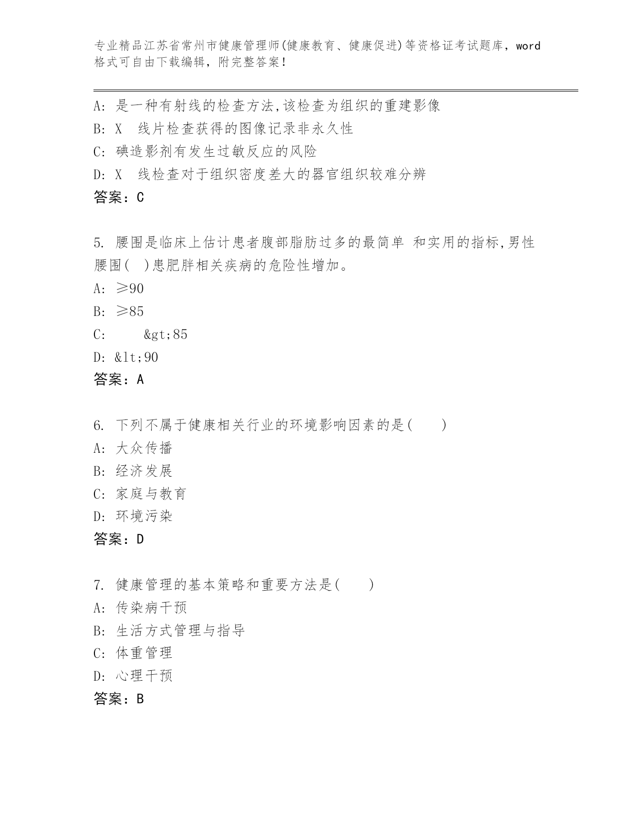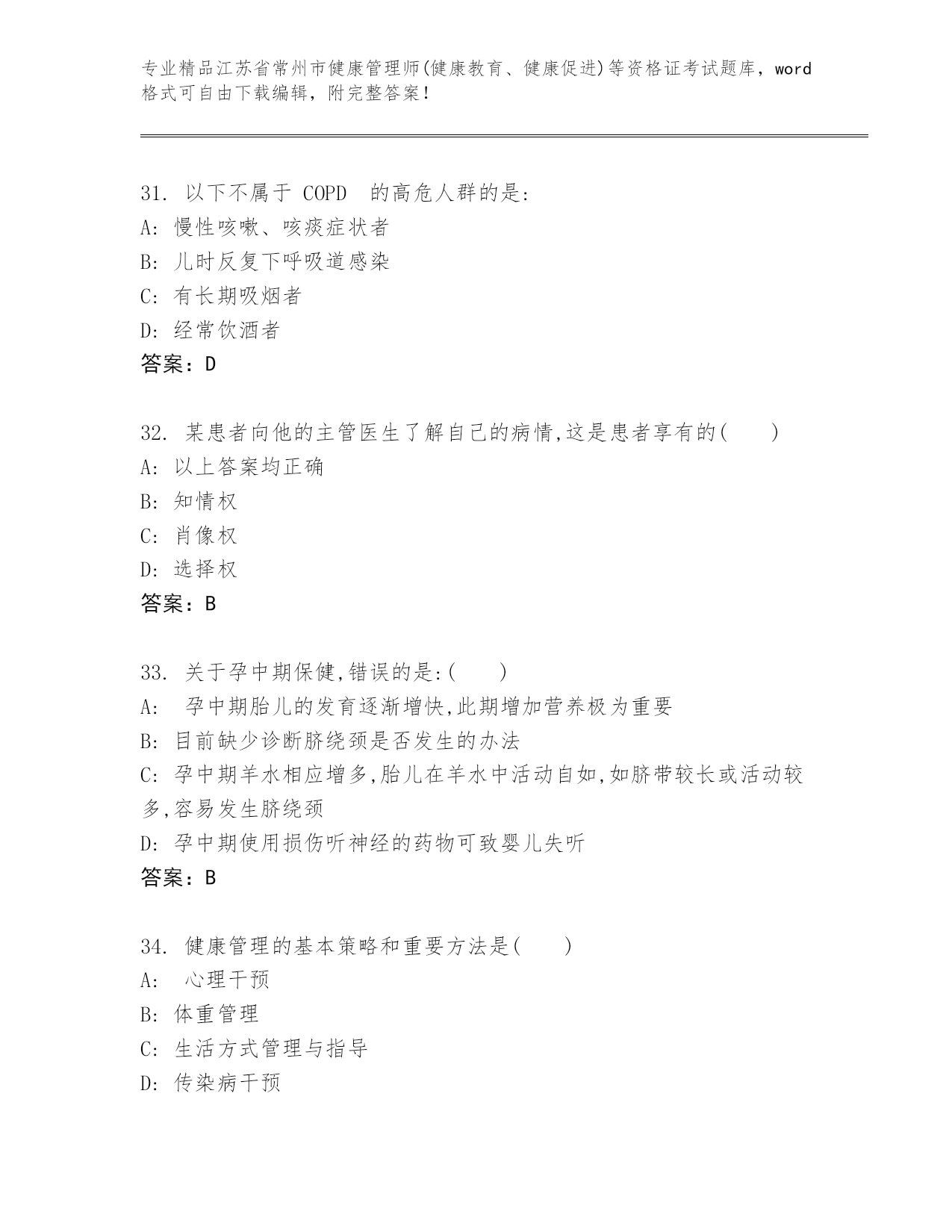 江苏省常州市健康管理师(健康教育、健康促进)等资格证考试(精选题).docx