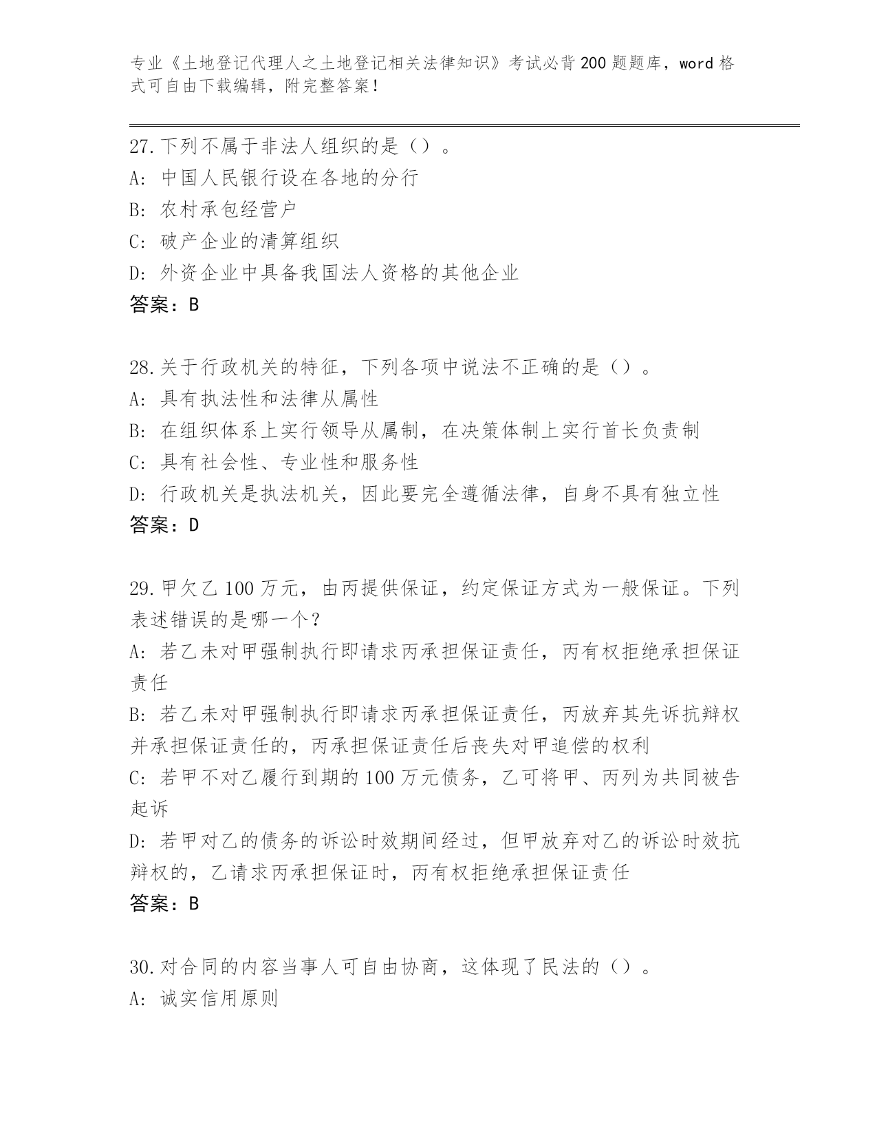 陕西省商州区2024年《土地登记代理人之土地登记相关法律知识》考试必背200题题库及答案(真题汇编)