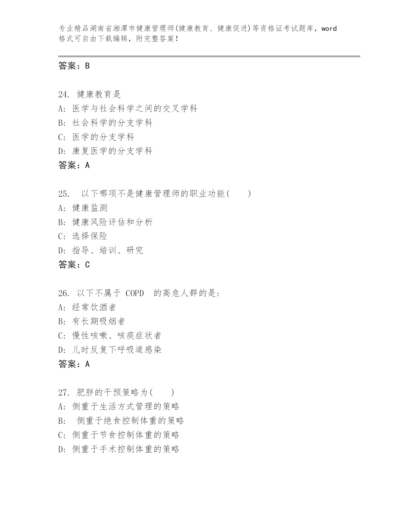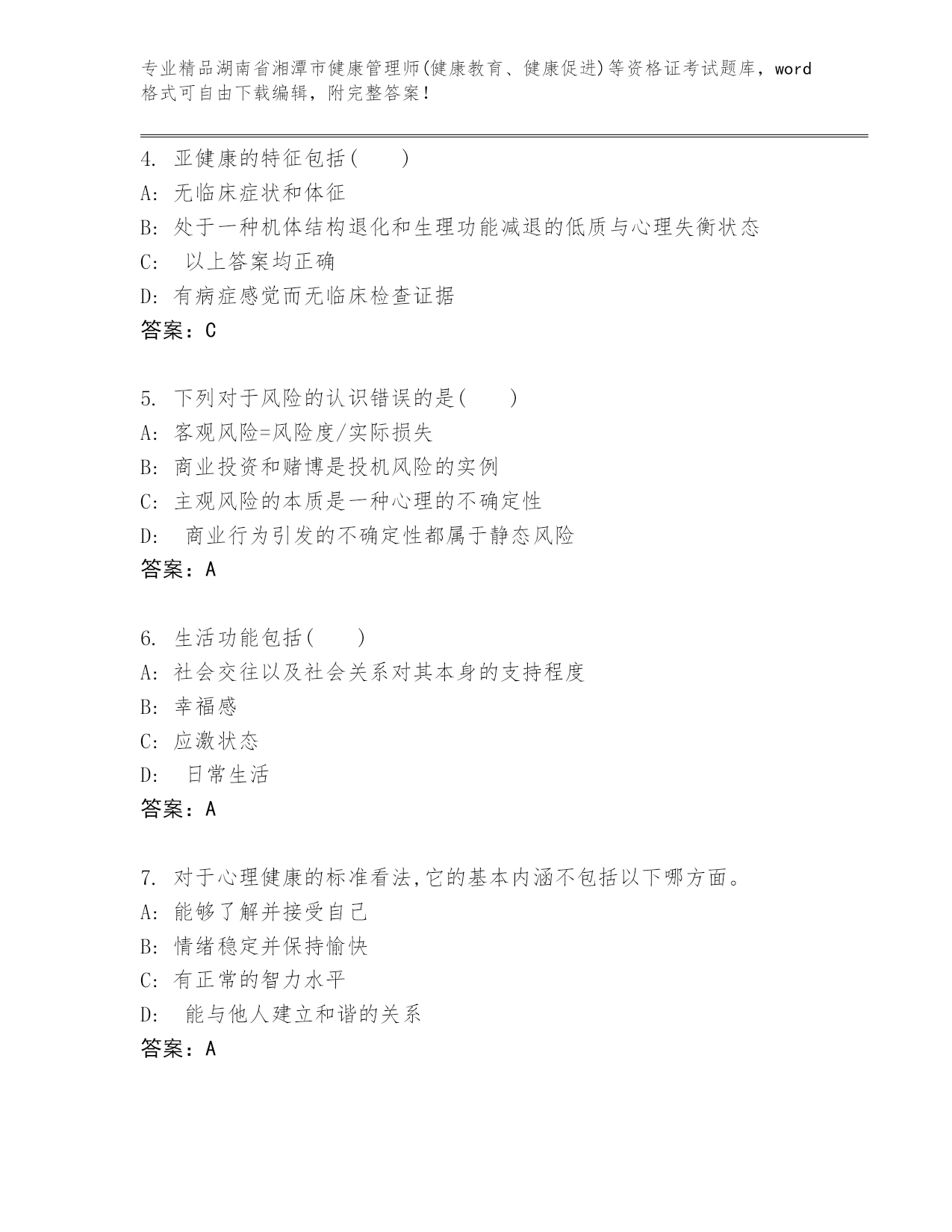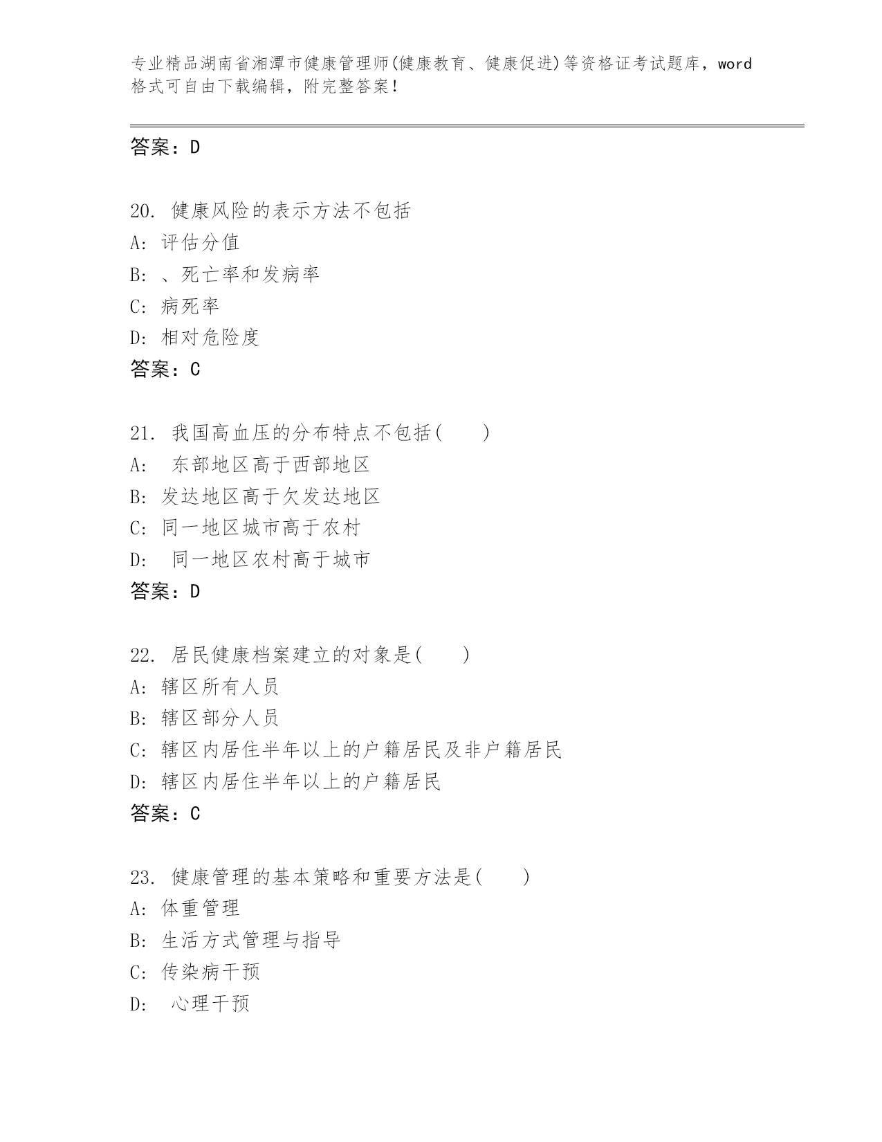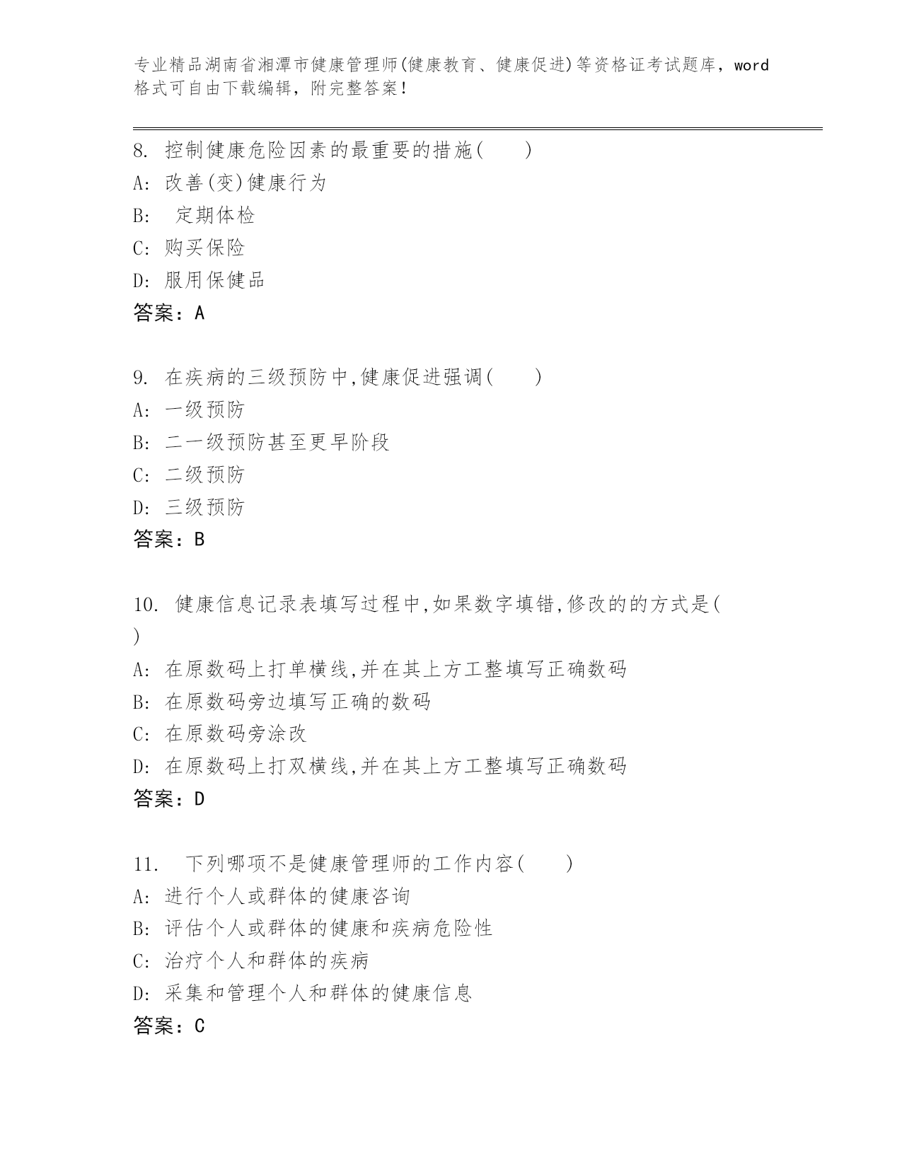 湖南省湘潭市健康管理师(健康教育、健康促进)等资格证考试完整版【基础题】.docx