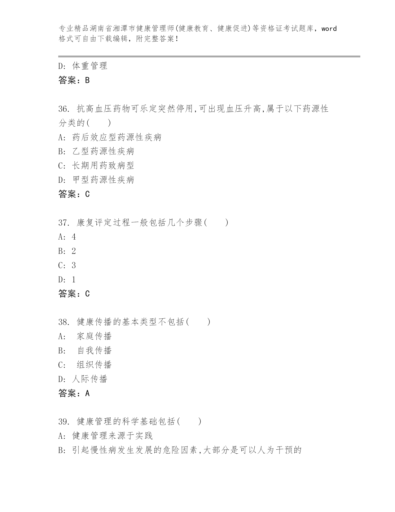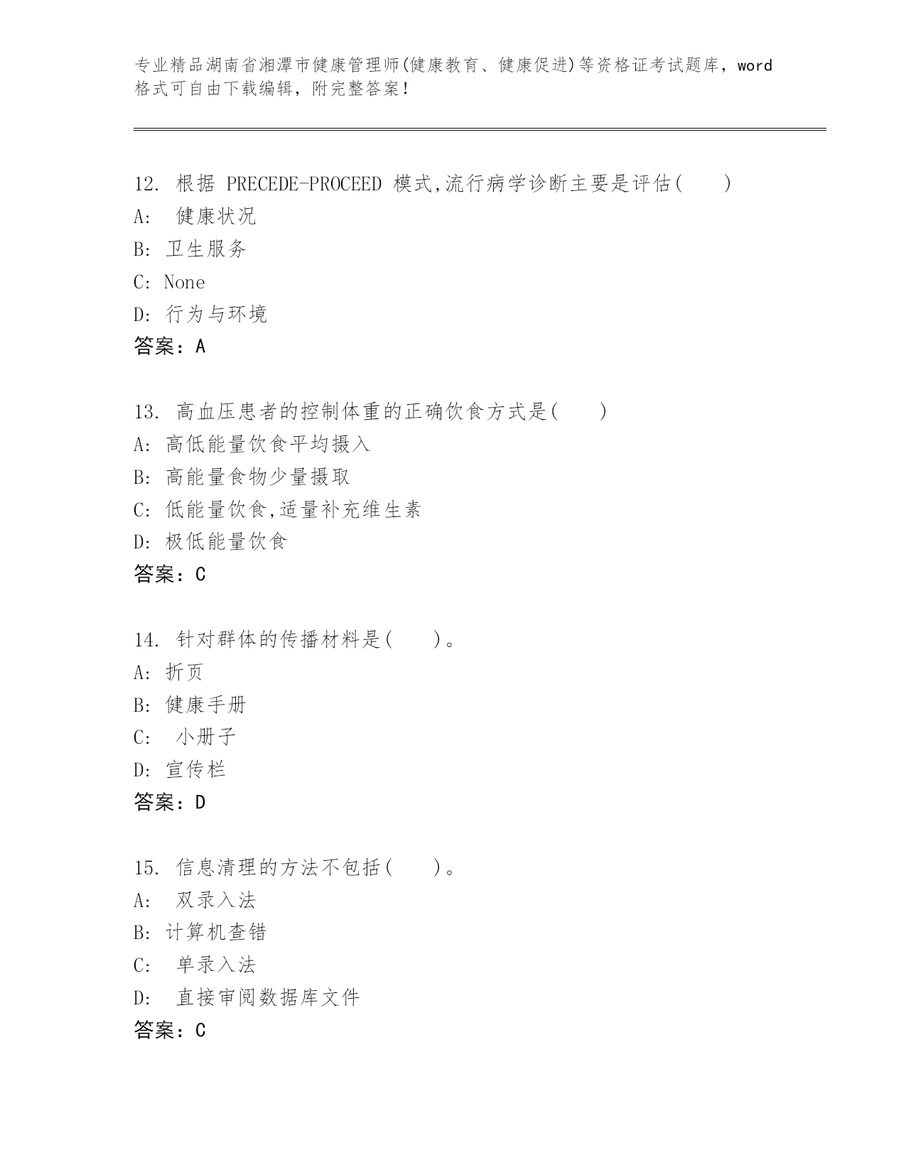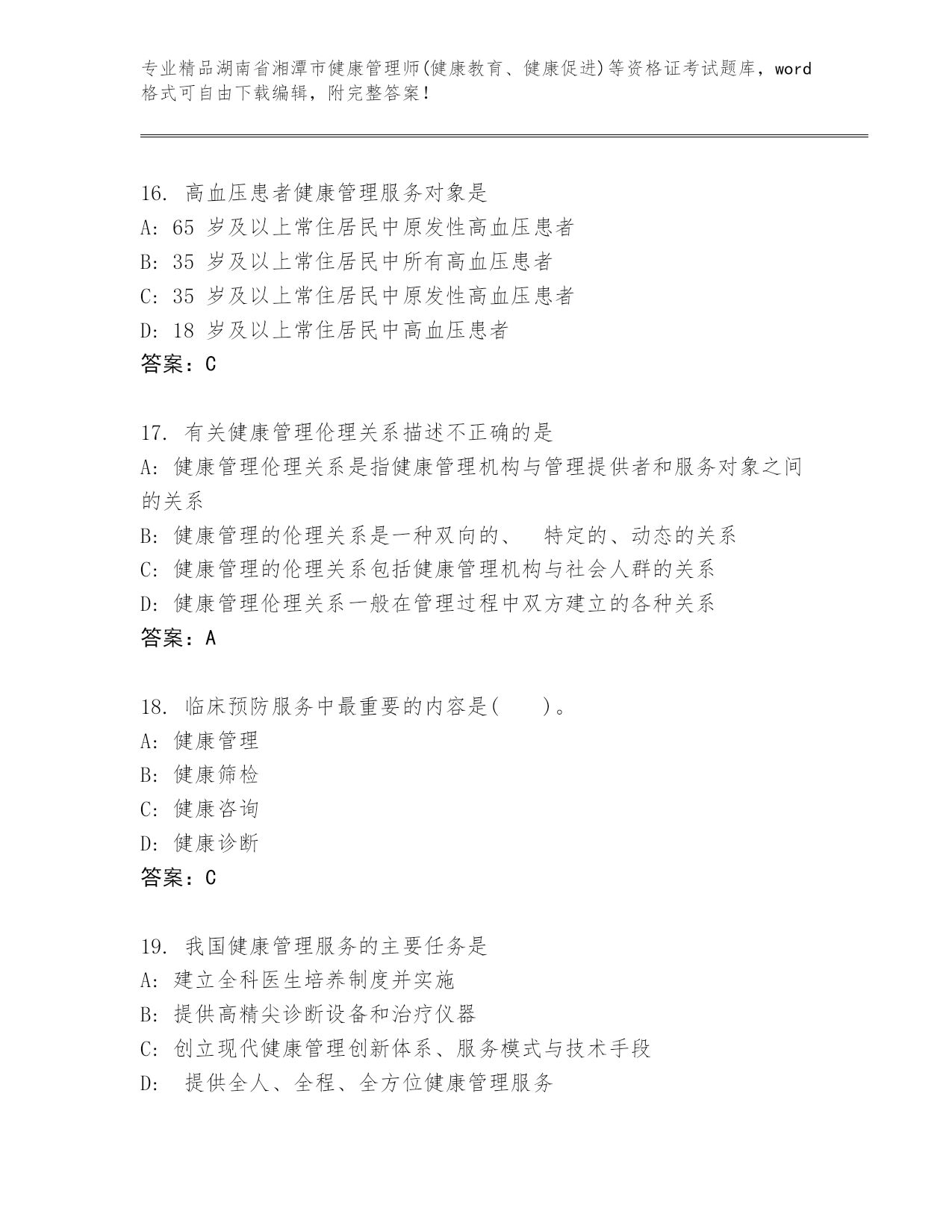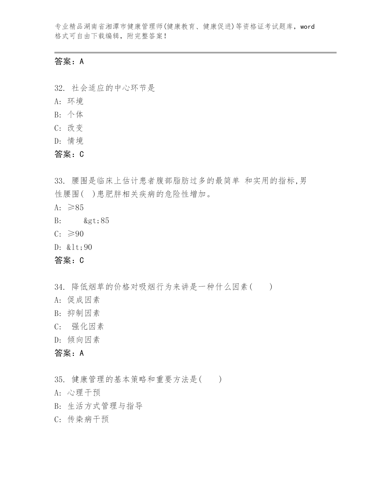 湖南省湘潭市健康管理师(健康教育、健康促进)等资格证考试完整版【基础题】.docx