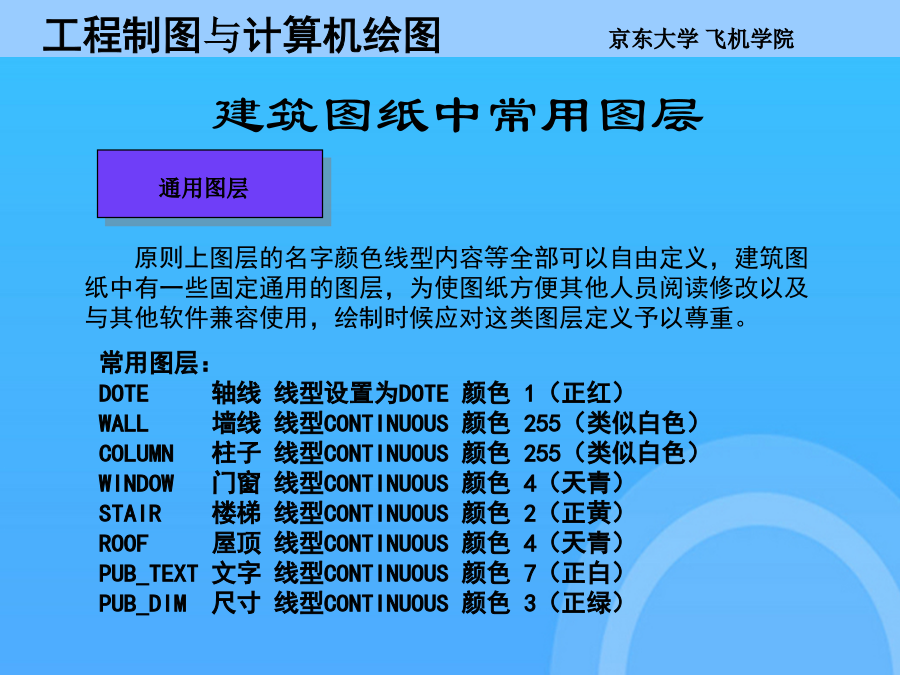 快速绘制建筑平面图教程(优选)快速绘制建筑平面图教程AutoCAD绘制建筑图纸的优势需要解决的几个问题特别是有多层平面的情况下,可以绘制其中一层,然后拷贝修改迅速得到其他层。ST:加载已定义的多线线型为当前线型平面图-》立面图-》剖面图-》大样图设置轴线层WALL,并将其设为当前层。反复使用OFFSET指令,绘制同方向的轴线。工程制图与计算机绘图京东大学飞机学院建筑图纸中也采用不同类型的线条来表达不同的内容。Hi,我是255,不是250!工程制图与计算机绘图京东大学飞机学院工程制图与计算机绘图京东大学飞机学院ST:加载已定义的多线线型为当前线型公制的意思是新打开的文件将以mm为单位,英制则是以英寸为单位。工程制图与计算机绘图京东大学飞机学院墙线到底应该是哪些,房间在哪?使用Mline指令,绘制墙线;工程制图与计算机绘图京东大学飞机学院OFFSET指令结束后的图面建立图层WALL并设置为当前层;使用LAYER命令打开图层控制器。设置轴线层DOTE,并将其设为当前层。由于很多AutoCAD线型加载里没有DOTE选项,可以选择CENTER类线型替代。1.先绘制一条比较长的红色轴线。一般先画水平线。2.反复使用OFFSET指令,绘制同方向的轴线。3.同样方法作出竖直方向的轴线。设置轴线层WALL,并将其设为当前层。颜色设置为255,不是白色,这是为了打印时候与其他图层区分以方便设置粗线。A计划:使用多线绘制MLINE指令直接绘制双线优势:墙线一次成型,墙线作图速度快。缺点:墙的厚度设置和开洞编辑比较麻烦。4、多线绘制经过艰苦的多线编辑指令,终于得到了下面的图形。。。使用EXPLODE指令炸开多线,就成为普通的线条,完全可以使用普通的编辑指令来进行延伸、剪断、圆角等基本指令来进行编辑了。B计划:使用OFFSET指令偏移轴线获得墙线优势:便于控制墙体厚度,墙线开洞编辑简单。缺点:获得的墙线在DOTE层上,需要进行图层更改,图面混乱,工作量大且容易出错。更改墙线图层后的图面经过比较,相对简洁的绘制方式决定为A计划的升级版:1.建立图层WALL并设置为当前层;2.使用Mlstyle指令,设置双线线型,注意多线比例和墙厚设定;3.使用Mline指令,绘制墙线;4.使用Explode指令,炸开多线;5.使用各种线条编辑指令,解决线条交接问题,并在正确的位置打开门窗洞口。1.建立新图层:WINDOW,设置为当前层;2.门洞处画中粗线,旋转45°;3.使用Copy指令将门线复制到所有同样大的洞口,分别根据该处开启方向进行旋转;4.设置好多线样式后直接在窗户洞口画多线,得窗。插入门窗时候一定要注意开启对象捕捉。其它图线绘制使用Mline指令,绘制墙线;好处:同一个图形可以用在不同比例的多个图纸中。OFFSET指令结束后的图面这是由于线条的内置比例与出图比例不协调造成,使用LTSCALE指令,改变线型的比例值,调整到显示正常为止。点击“文件”->“新建”,弹出对话框下一步将要开门窗洞口,还要再次反复地给洞口定位和多线编辑???用于门开启45°,窗为简单的三线或者四线时。DOTE轴线线型设置为DOTE颜色1(正红)缺点是难以成批修改,故极不常用。平面图-》立面图-》剖面图-》大样图B计划:使用OFFSET指令偏移轴线获得墙线与手工绘图相仿,使用CAD绘制建筑图样的顺序为:缺点:墙的厚度设置和开洞编辑比较麻烦。WALL墙线线型CONTINUOUS颜色255(类似白色)设置轴线层DOTE,并将其设为当前层。在没有特别需要的样板文件的情况下,直接不输入文件名,选择无样板打开。工程制图与计算机绘图京东大学飞机学院1.设置绿色或黄色AXIS图层并设置为当前层;2.绘制轴线圈并填写数字。1.设置PUB_TEXT图层并设置为当前层;2.注写文字,注意要包括门窗编号及图名。检查图中有无遗漏部分或特殊图例,如本图就需要补充指北针和剖切符号。如有需要,插入图框。感谢观看