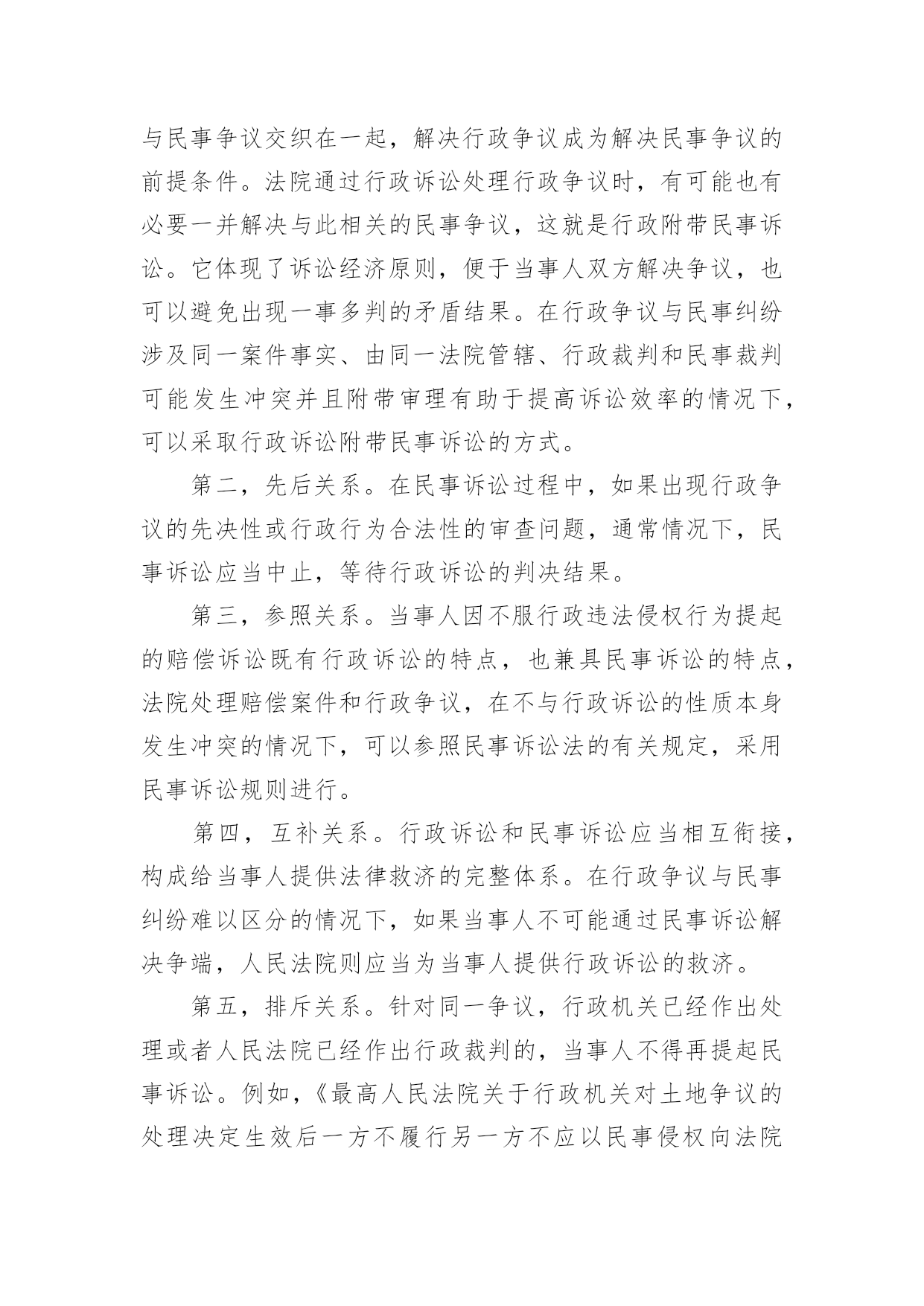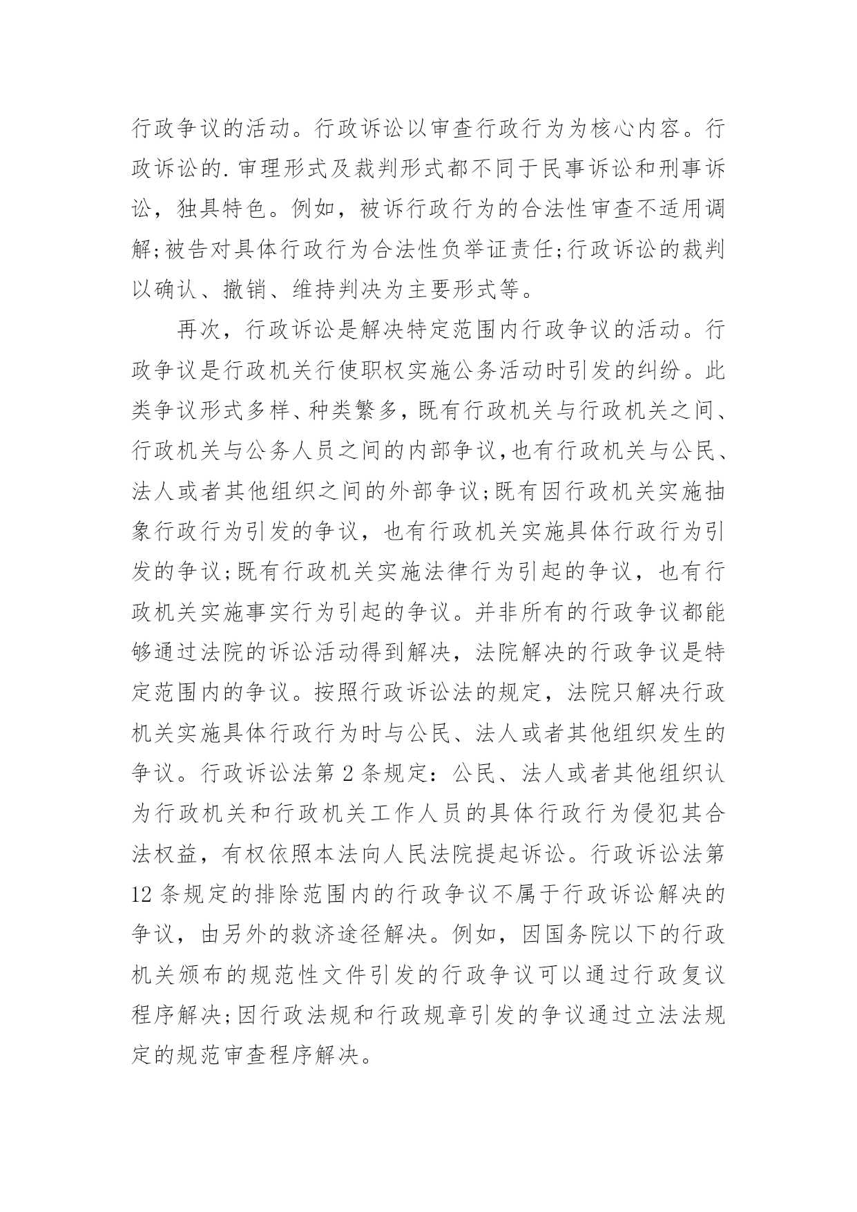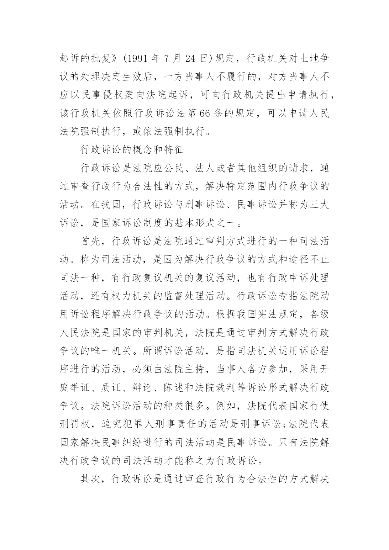 司法考试行政法基础知识2017年司法考试行政法基础知识所谓行政法,是指行政主体在行使行政职权和接受行政法制监督过程中而与行政相对人、行政法制监督主体之间发生的各种关系,以及行政主体内部发生的各种关系的法律规范的总称。下面是小编为大家搜索整理的2017年司法考试行政法基础知识点,希望对大家考试有所帮助。行政诉讼与民事诉讼的关系对此可以从区别和联系两个角度认识。两者的区别表现在:第一,诉讼客体和诉讼目的不同。行政诉讼的客体是行政争议,其目的是审查行政行为的合法性,为公民、法人或者其他组织提供法律救济;而民事诉讼的客体是民事争议,其目的是解决民事纠纷,保障当事人的民事权益的实现。第二,诉讼主体不同。虽然行政诉讼和民事诉讼都是在法院主持下解决争议的活动,但诉讼当事人法律地位有所不同。行政诉讼主体具有恒定性,被告只能是国家行政机关或法律、法规授权的组织,一般的公民、法人或者其他组织不能做行政诉讼的被告。民事诉讼就没有上述限制,当事人的诉讼地位没有恒定性,被告既可以是公民、法人,也可以是行政机关,行政机关在民事诉讼中,既可以做原告,也可以做被告。第三,当事人的诉讼权利义务不同。行政诉讼中,当事人双方的权利义务不完全对等。例如,公民、法人或者其他组织享有起诉权,而作为执行公务行使职权的行政机关就没有起诉权,也没有反诉权。被告行政机关对行政行为的合法性负有举证责任,而原告并不承担此项举证责任。但在民事诉讼中,双方当事人享有的诉讼权利和承担的诉讼义务完全对等,当事人都对自己的主张负有举证义务。第四,可否适用调解不同。行政诉讼中,被诉行政行为合法性审查部分禁止适用调解,法院在诉讼中不得调解当事人双方争议,也不得以调解结案。但在民事诉讼中,调解是一项重要原则,法院既可以调解的方式进行审理,也可以调解的方式结案。第五,判决和执行方式不同。在行政诉讼中,法院审理的重点是被诉具体行政行为的合法性,法院有权对具体行政行为作出维持、撤销、变更、履行等判决,但通常不对当事人在行政法上的权利义务直接作出判决。故行政诉讼的判决形式较单一。而民事诉讼审理的是民事争议,法院有权作出确认判决、给付判决和变更判决,此类判决可以直接决定当事人的民事权利义务。此外,行政诉讼判决的执行措施也不同于民事诉讼。法律对原被告规定了不同的执行措施,且被告行政机关依法享有对部分判决的直接强制执行手段。民事诉讼判决裁定的强制执行,则全部要由法院进行,而且强制执行措施普遍适用于民事诉讼原被告。两者的联系多种多样,主要形态有:第一,附带关系。行政诉讼解决的相当一部分行政争议与民事争议交织在一起,解决行政争议成为解决民事争议的前提条件。法院通过行政诉讼处理行政争议时,有可能也有必要一并解决与此相关的民事争议,这就是行政附带民事诉讼。它体现了诉讼经济原则,便于当事人双方解决争议,也可以避免出现一事多判的矛盾结果。在行政争议与民事纠纷涉及同一案件事实、由同一法院管辖、行政裁判和民事裁判可能发生冲突并且附带审理有助于提高诉讼效率的情况下,可以采取行政诉讼附带民事诉讼的方式。第二,先后关系。在民事诉讼过程中,如果出现行政争议的先决性或行政行为合法性的审查问题,通常情况下,民事诉讼应当中止,等待行政诉讼的判决结果。第三,参照关系。当事人因不服行政违法侵权行为提起的赔偿诉讼既有行政诉讼的特点,也兼具民事诉讼的特点,法院处理赔偿案件和行政争议,在不与行政诉讼的性质本身发生冲突的情况下,可以参照民事诉讼法的有关规定,采用民事诉讼规则进行。第四,互补关系。行政诉讼和民事诉讼应当相互衔接,构成给当事人提供法律救济的完整体系。在行政争议与民事纠纷难以区分的情况下,如果当事人不可能通过民事诉讼解决争端,人民法院则应当为当事人提供行政诉讼的救济。第五,排斥关系。针对同一争议,行政机关已经作出处理或者人民法院已经作出行政裁判的,当事人不得再提起民事诉讼。例如,《最高人民法院关于行政机关对土地争议的处理决定生效后一方不履行另一方不应以民事侵权向法院起诉的批复》(1991年7月24日)规定,行政机关对土地争议的处理决定生效后,一方当事人不履行的,对方当事人不应以民事侵权案向法院起诉,可向行政机关提出申请执行,该行政机关依照行政诉讼法第66条的规定,可以申请人民法院强制执行,或依法强制执行。行政诉讼的概念和特征行政诉讼是法院应公民、法人或者其他组织的请求,通过审查行政行为合法性的方式,解决特定范围内行政争议的活动。在我国,行政诉讼与刑事诉讼、民事诉讼并称为三大诉讼,是国家诉讼制度的基本形式之一。首先,行政诉讼是法院通过审判方式进行的一种司法活动。称为司法活动,是因为解决行政争议的方式和途径不止司法一种,有行政复议机关的复议活动,也有行政申诉处理活动,还有权力机关的监督处理活动。行政诉讼专指法院动用诉讼程序解决行政争议的活动。