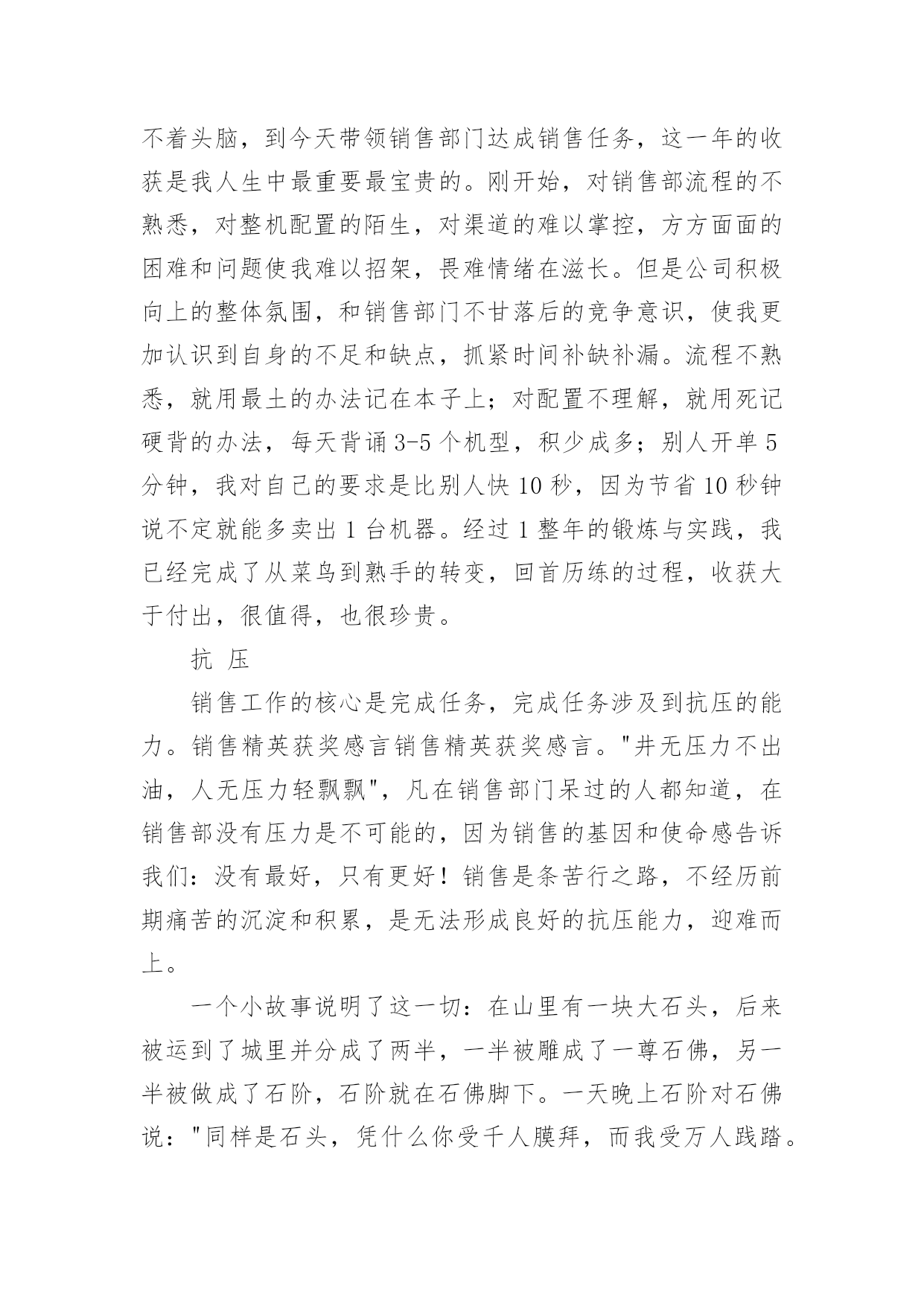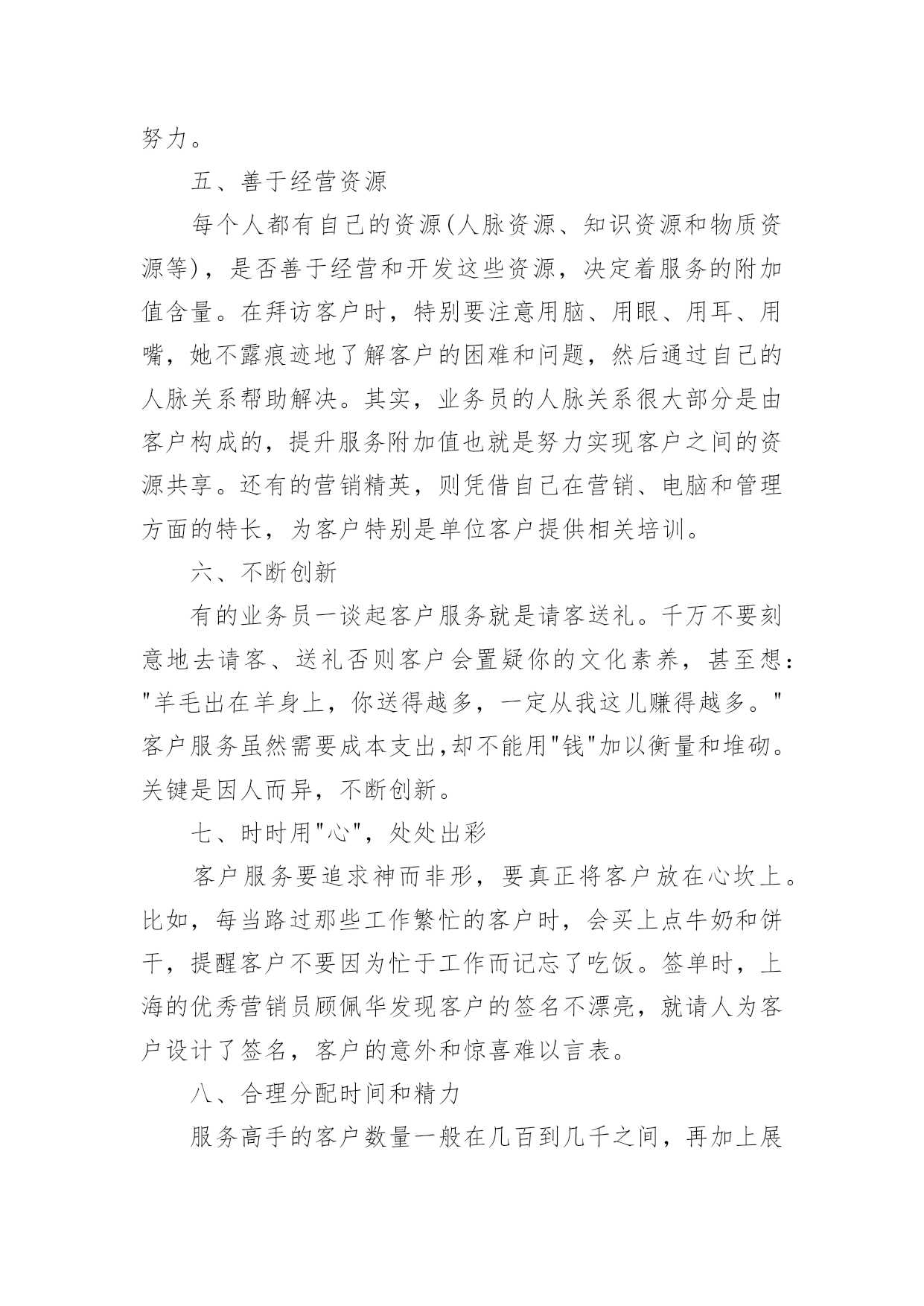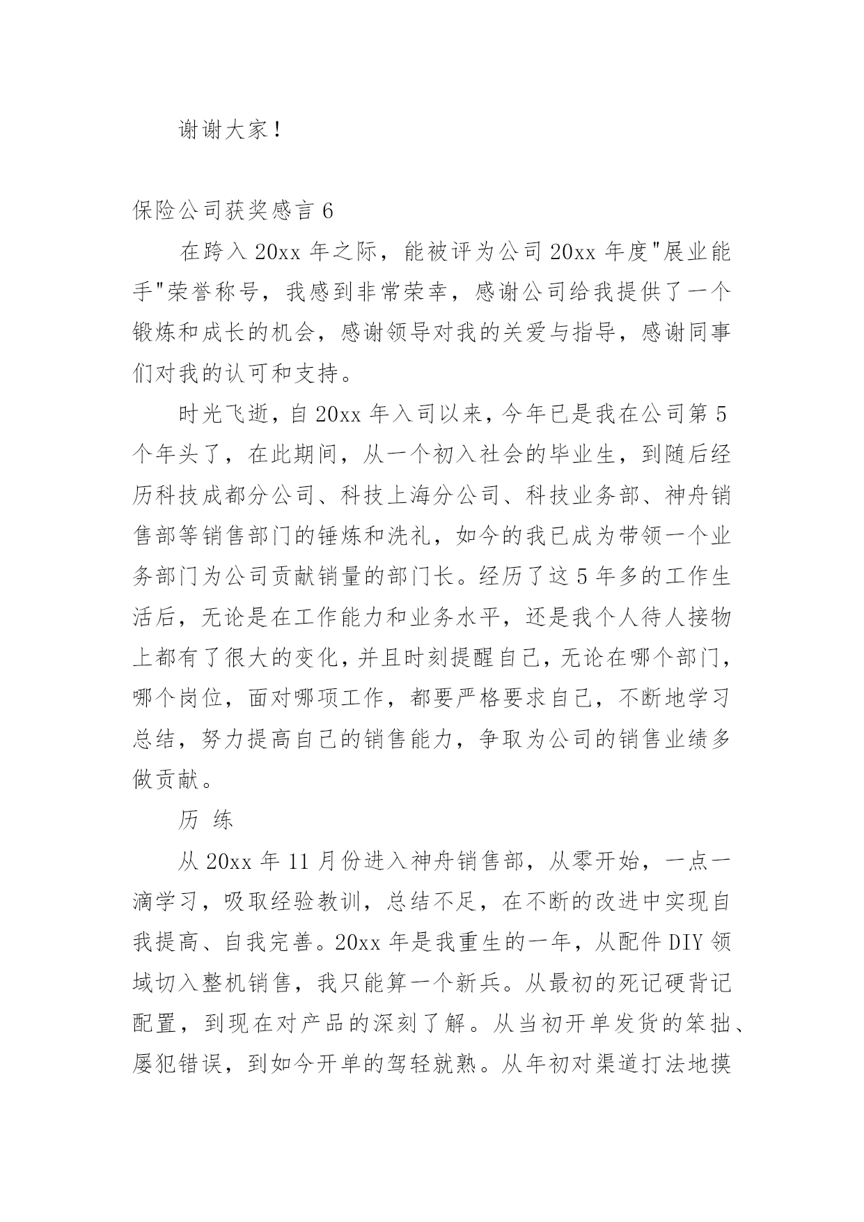保险公司获奖感言在生活、工作和学习中,我们常常会因为所接触的人和事而备受启迪,这时可用写感言的方式将其记录下来。那么感言该怎么写?想必这让大家都很苦恼吧,下面是小编收集整理的保险公司获奖感言,欢迎大家借鉴与参考,希望对大家有所帮助。保险公司获奖感言1尊敬的各位领导、各位同仁:大家好!今天,我作为人寿保险20xx年度获奖代表在这里发言,和大家一起分享工作的喜悦和体会,感到十分的激动。在20xx年,我在工作中取得了一定的成绩,这得益于在座的各位领导我的关心和培养;得益于各位同仁的.支持与帮助,更得益于人寿优秀的团队氛围和企业文化。作为个体,我只是大海中的一滴水,我能扬波起浪,完全是因为有大海的深邃和广阔;离开了大海,这一滴水很快就会蒸发;所以凝聚才能产生力量,团结才能够诞生兴旺。作为一名来自人寿营销一线的员工,承蒙领导的器重和厚爱,评选我为全市的营销能手和标兵,我心中充满了自豪与感激。保险公司获奖感言2一、要有成本观念有舍才有得,如果不舍得必要的成本投入,就很难将服务做到位;通常,优秀的业务员会将佣金收入的20%-30%作为服务基金,专门用于客户服务;蓝鲸奖得主白海龙用于客户服务的直接和间接费用支出更是达到了其佣金收入的50%,为了服务好客户,扬州的赵宁、陆平夫妇专门买了车。昆明的张明丽聘请了助理,成立了保险工作室。二、让客户经常见到你客户最反感的业务员就是"签单之前天天见,签单之后不见人",聪明的业务员总是千方百计地争取在客户面前"露面",让客户经常想到你,感觉到你的存在和对他的关注。哪怕是提醒续期缴费这样的事,他们也舍不得放弃。给客户介绍工作、寄上一份自办的小简报……只要处处想到客户,客户也会时时想到你。三、过硬的专业能力很多营销精英都认为,为客户提供最适合他们的保障计划,是最根本也是最好的服务。此外,还必须熟悉银行、理财、房地产等各方面的政策和知识,时刻关注客户人生各阶段的变化及其风险缺口,并及时给予合理建议。四、高质量的理赔服务一旦理赔服务出现差错,很可能会使客房失去对保险和业务员的信任;相反,理赔服务做到家了,就会树立良好的形象,赢得大批新客户。为了使客户享受周全而快速的'理赔服务,很多营销精英聘请了专人协助客户办理索赔等手续。即使由于某种原因公司无法快速赔付,他们也会经常与客户保持沟通,让客房了解事情的进展和缘由,并感觉到他们的努力。五、善于经营资源每个人都有自己的资源(人脉资源、知识资源和物质资源等),是否善于经营和开发这些资源,决定着服务的附加值含量。在拜访客户时,特别要注意用脑、用眼、用耳、用嘴,她不露痕迹地了解客户的困难和问题,然后通过自己的人脉关系帮助解决。其实,业务员的人脉关系很大部分是由客户构成的,提升服务附加值也就是努力实现客户之间的资源共享。还有的营销精英,则凭借自己在营销、电脑和管理方面的特长,为客户特别是单位客户提供相关培训。六、不断创新有的业务员一谈起客户服务就是请客送礼。千万不要刻意地去请客、送礼否则客户会置疑你的文化素养,甚至想:"羊毛出在羊身上,你送得越多,一定从我这儿赚得越多。"客户服务虽然需要成本支出,却不能用"钱"加以衡量和堆砌。关键是因人而异,不断创新。七、时时用"心",处处出彩客户服务要追求神而非形,要真正将客户放在心坎上。比如,每当路过那些工作繁忙的客户时,会买上点牛奶和饼干,提醒客户不要因为忙于工作而记忘了吃饭。签单时,上海的优秀营销员顾佩华发现客户的签名不漂亮,就请人为客户设计了签名,客户的意外和惊喜难以言表。八、合理分配时间和精力服务高手的客户数量一般在几百到几千之间,再加上展业和管理团队的工作,时间和精力的分配很关键。对此,他们的应对之策是:电子化管理客户档案,设置一些生日、节日等自动提醒功能;有条件的聘请助手,进行一些中、低端客户的服务工作,自己重点进行高端客户的服务工作;合理制订工作计划,包括回访客户的路线安排等。九、良好的心态客户服务除了要诚心之外,还要有足够的耐心。很多营销精英表示,客户服务一定要持之以恒,切忌急功近利、虎头蛇尾。客户要"培养",客户服务要"润物细无声",这能树立自己的良好形象,赢得客户身边的人,这也是许多营销精英选择的客户的工作单位或家庭成员聚会时进行服务的原因。保险公司获奖感言3太平人寿历史悠久,1929年始创于上海,是现今中国保险市场上经营时间最长和品牌历史最悠久的中资寿险公司之一。XX年11月30日,经国务院同意、中国保险监督管理委员会批准,太平人寿全面恢复经营国内人身保险业务,成为第六家全国性寿险公司。XX年9月18日太平人寿重庆分公司正式开业。分公司始终坚持“高素质、高品质、高绩效”的“三高”战略,致力于为重庆市民带来更全方位的保险保障、提供更专业周到的保险服务。山城人民见证了我们的努力,同时也给予了我们极大的肯定。此次获奖将成为