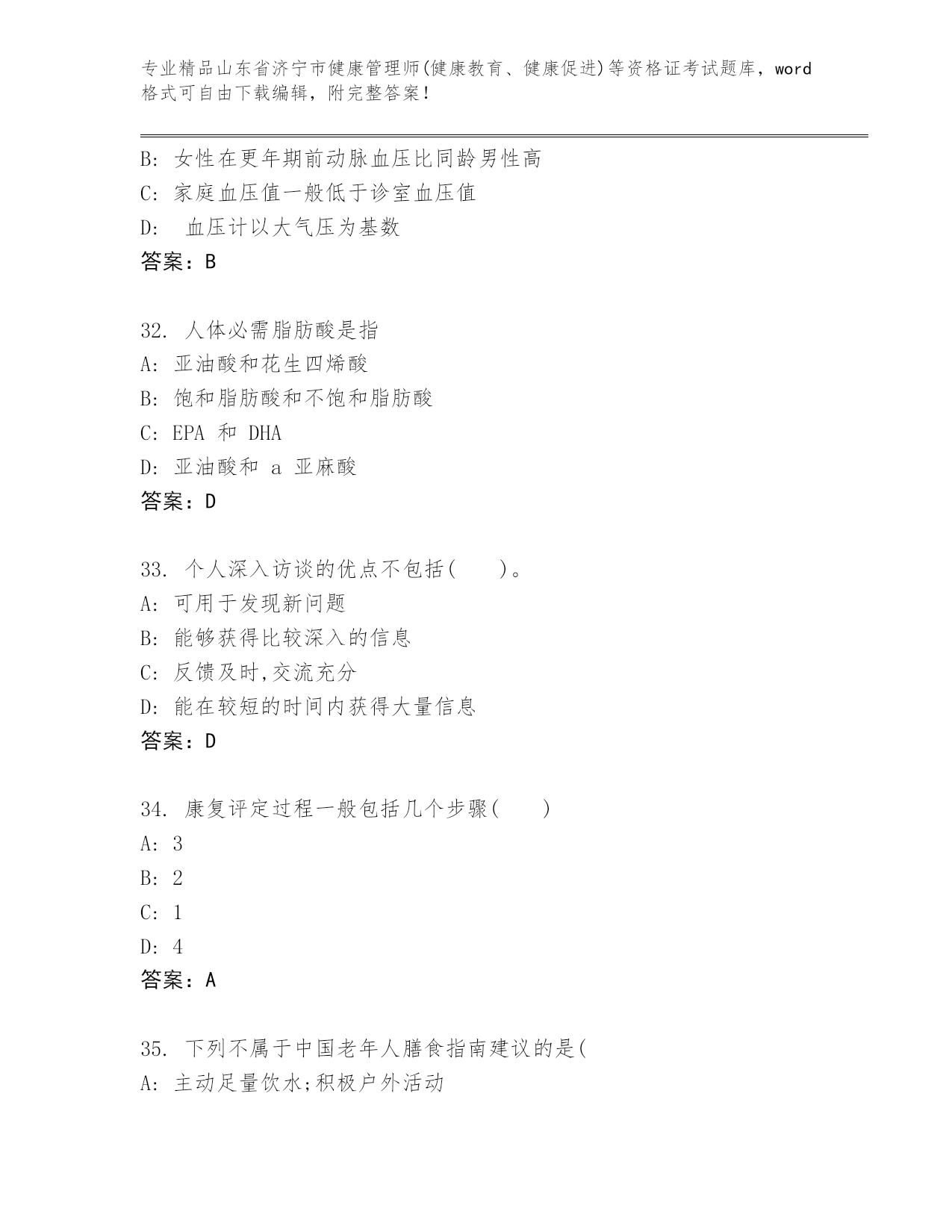 精编山东省济宁市健康管理师(健康教育、健康促进)等资格证考试通用题库(夺分金卷)