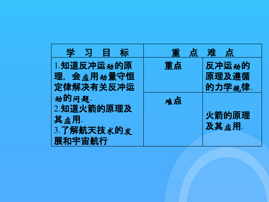 反冲运动火箭精品课件学习目标了解航天技术的发展和宇宙航行知道火箭的原理及其应用.反冲运动的原理及遵循的力学规律.知道火箭的原理及其应用.知道火箭的原理及其应用.知道反冲运动的原理,会应用动量守恒定律解决有关反冲运动的问题.知道反冲运动的原理,会应用动量守恒定律解决有关反冲运动的问题.了解航天技术的发展和宇宙航行了解航天技术的发展和宇宙航行了解航天技术的发展和宇宙航行知道反冲运动的原理,会应用动量守恒定律解决有关反冲运动的问题.了解航天技术的发展和宇宙航行知道火箭的原理及其应用.反冲运动的原理及遵循的力学规律.知道火箭的原理及其应用.知道火箭的原理及其应用.知道火箭的原理及其应用.知道火箭的原理及其应用.知道反冲运动的原理,会应用动量守恒定律解决有关反冲运动的问题.知道反冲运动的原理,会应用动量守恒定律解决有关反冲运动的问题.了解航天技术的发展和宇宙航行了解航天技术的发展和宇宙航行了解航天技术的发展和宇宙航行知道火箭的原理及其应用.知道反冲运动的原理,会应用动量守恒定律解决有关反冲运动的问题.了解航天技术的发展和宇宙航行了解航天技术的发展和宇宙航行知道火箭的原理及其应用.知道火箭的原理及其应用.知道反冲运动的原理,会应用动量守恒定律解决有关反冲运动的问题.知道火箭的原理及其应用.知道反冲运动的原理,会应用动量守恒定律解决有关反冲运动的问题.知道火箭的原理及其应用.了解航天技术的发展和宇宙航行知道火箭的原理及其应用.感谢观看