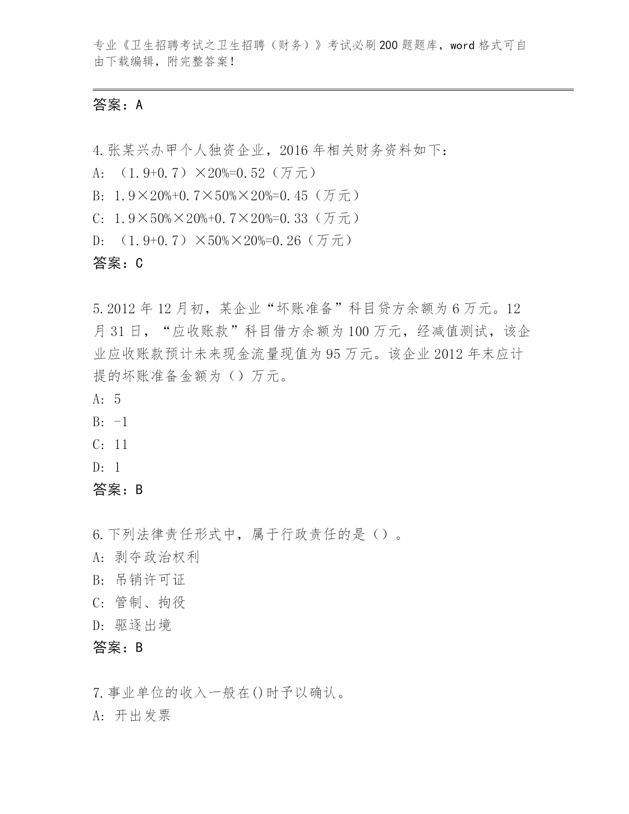 山东省2024年《卫生招聘考试之卫生招聘(财务)》考试必刷200题题库附答案(夺分金卷)