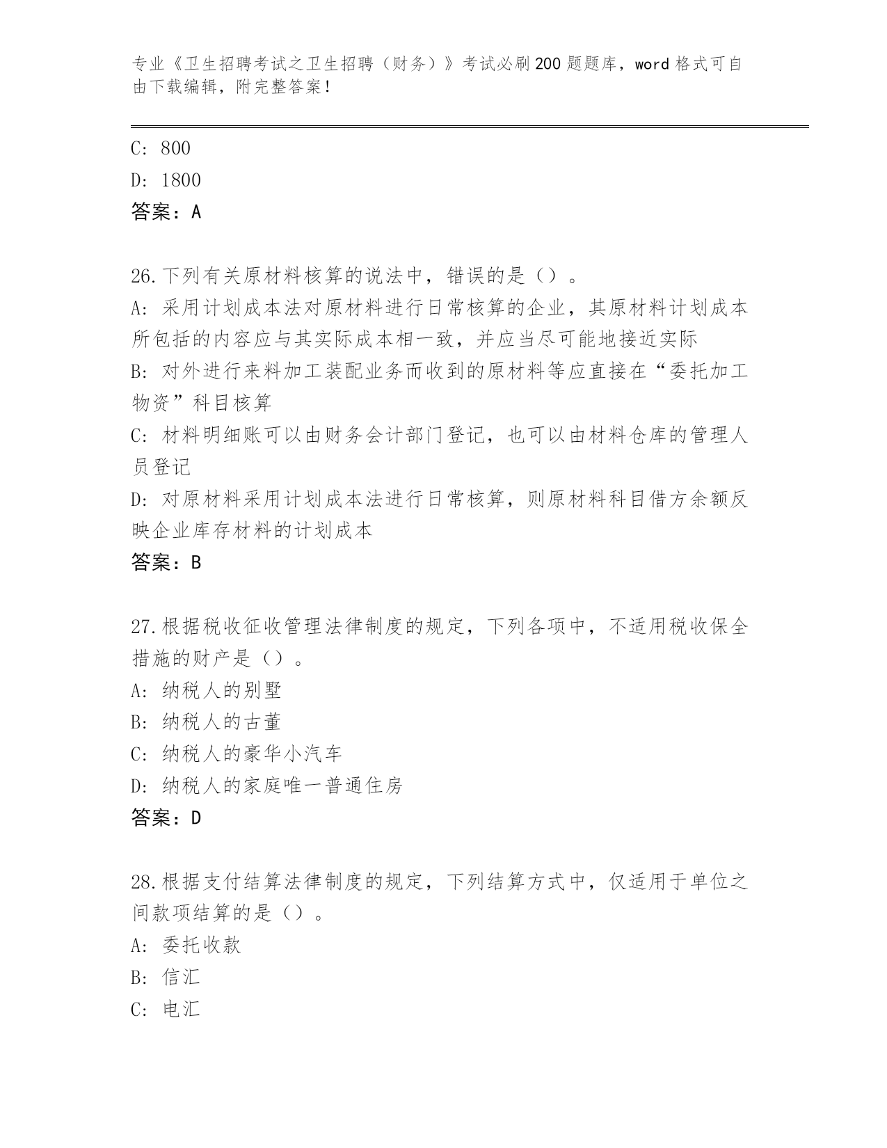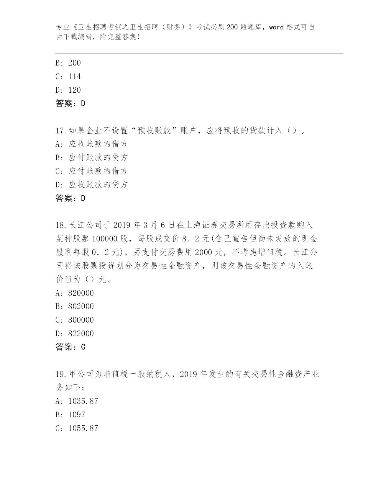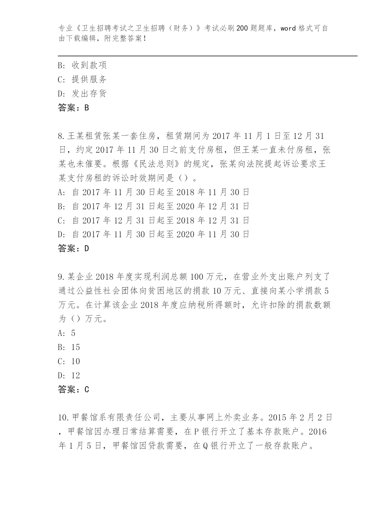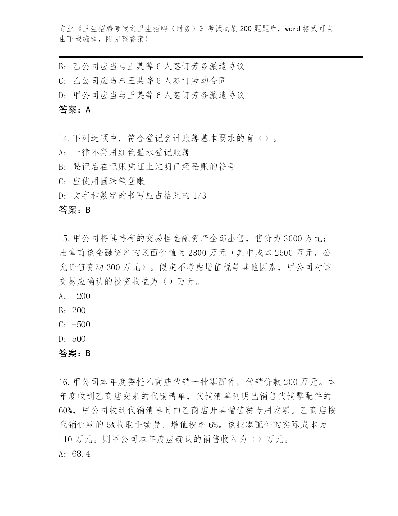 河南省整理《卫生招聘考试之卫生招聘(财务)》考试必背200题王牌题库附答案【夺分金卷】