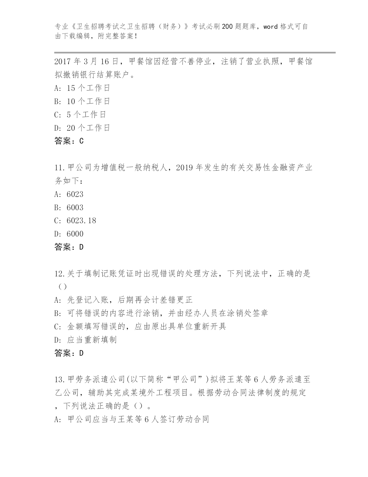 河南省整理《卫生招聘考试之卫生招聘(财务)》考试必刷200题题库大全含答案【夺分金卷】