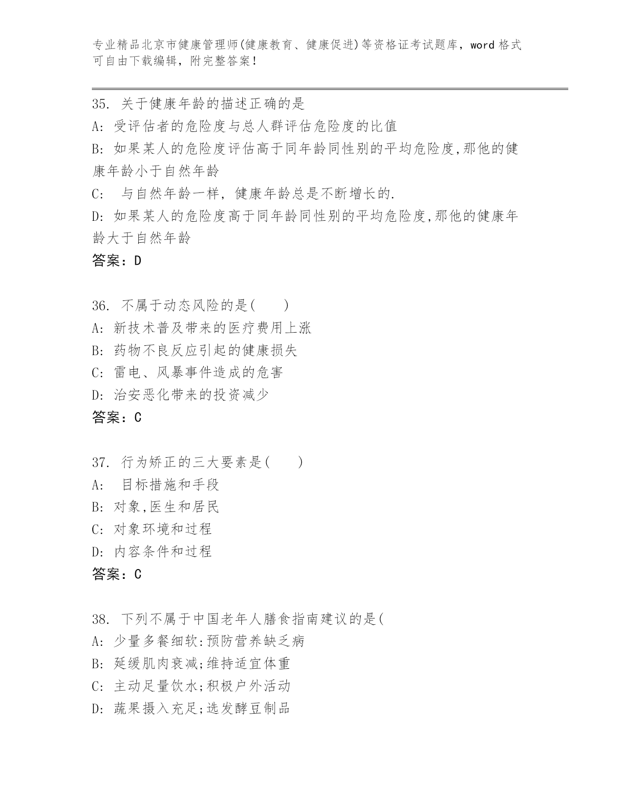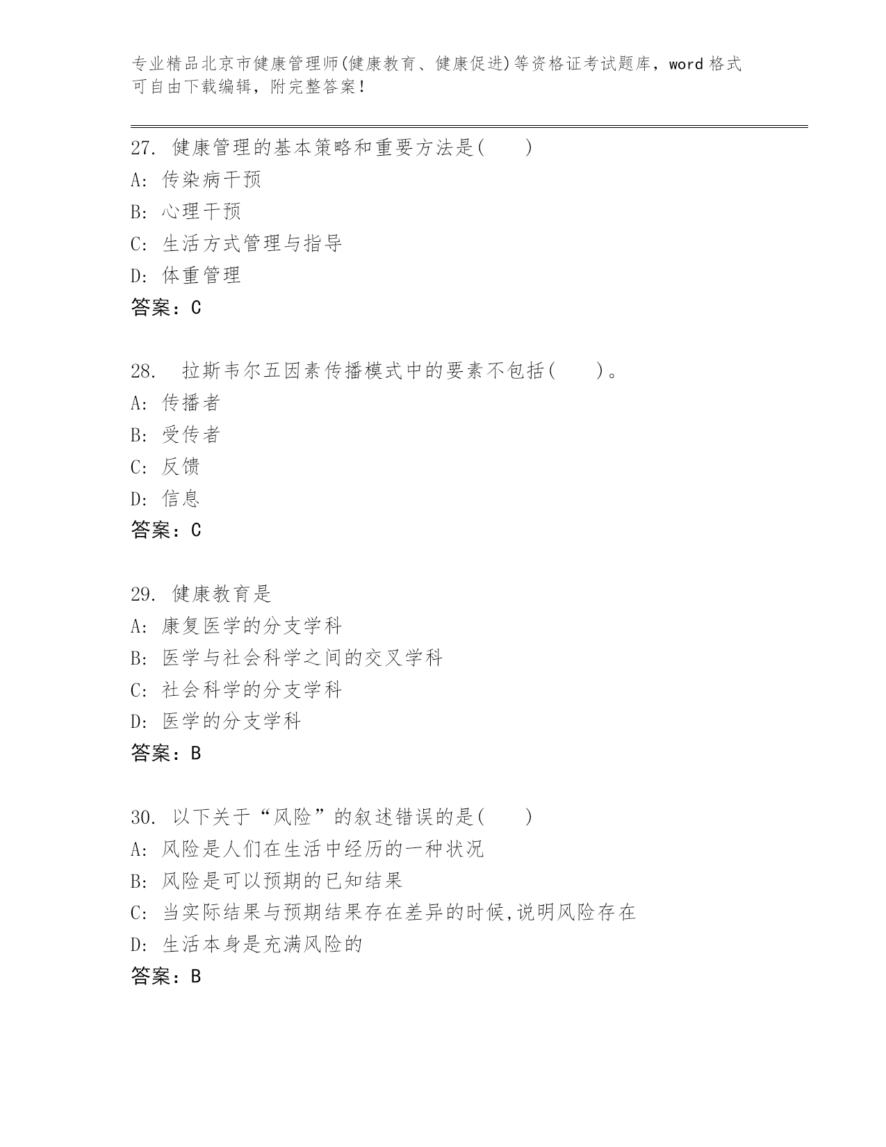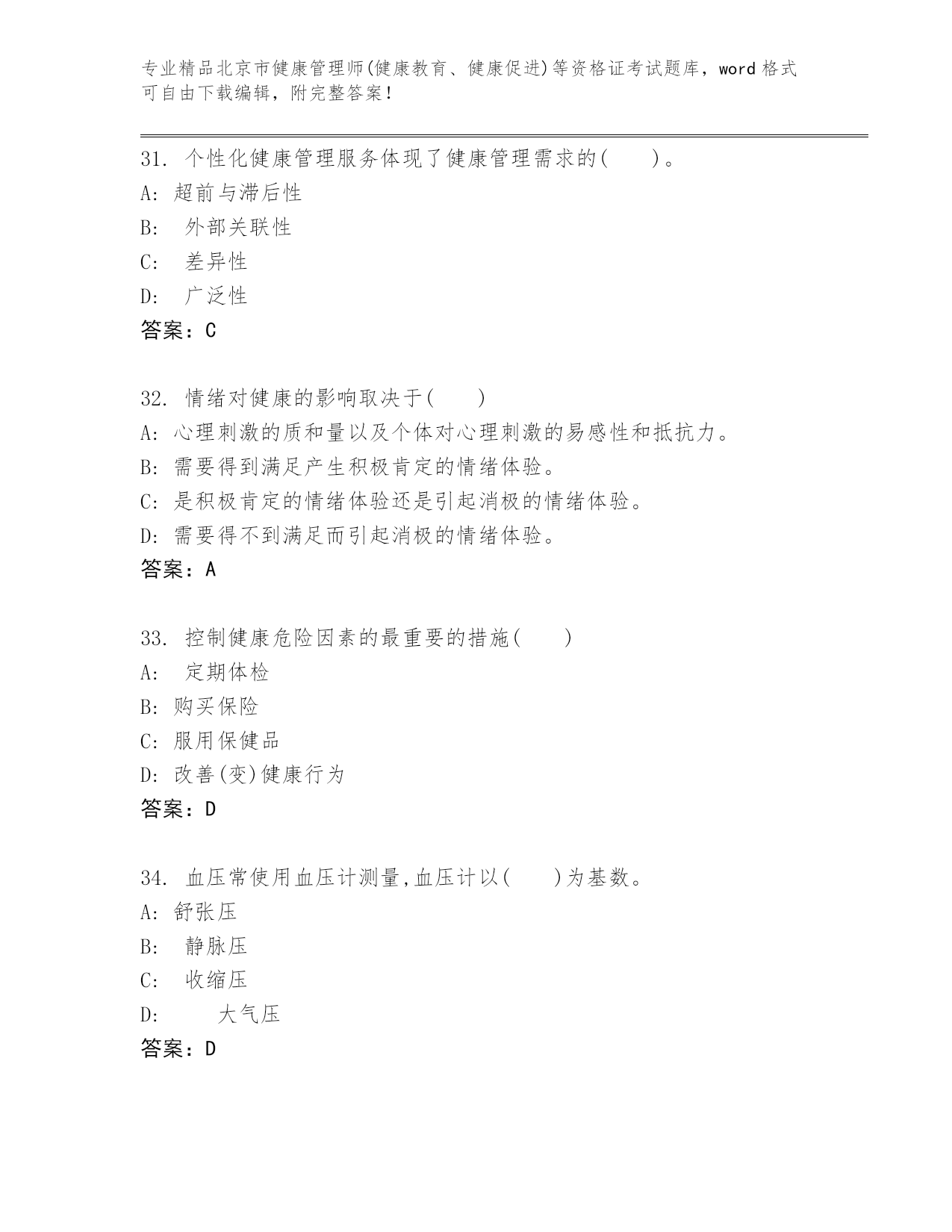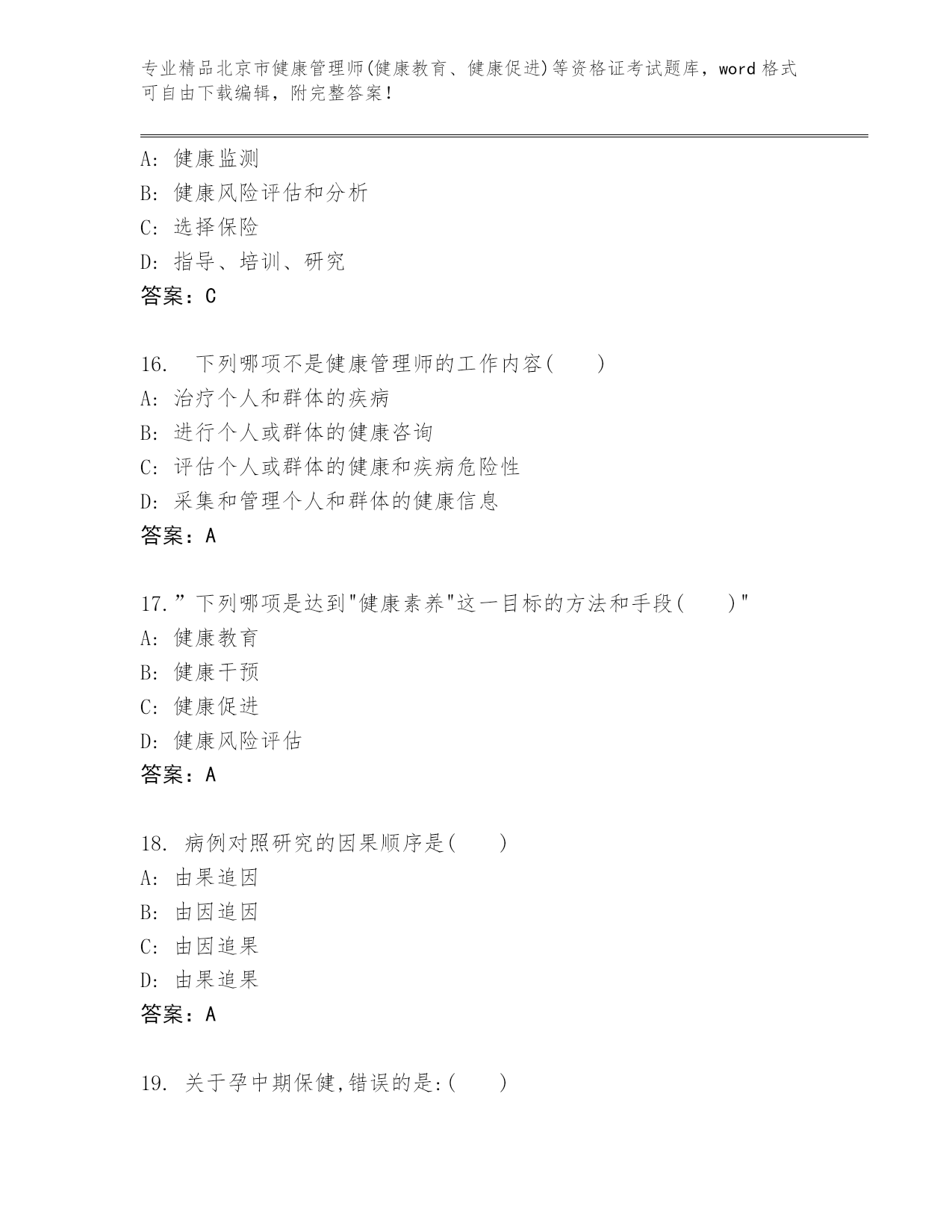 历年北京市健康管理师(健康教育、健康促进)等资格证考试优选题库通用