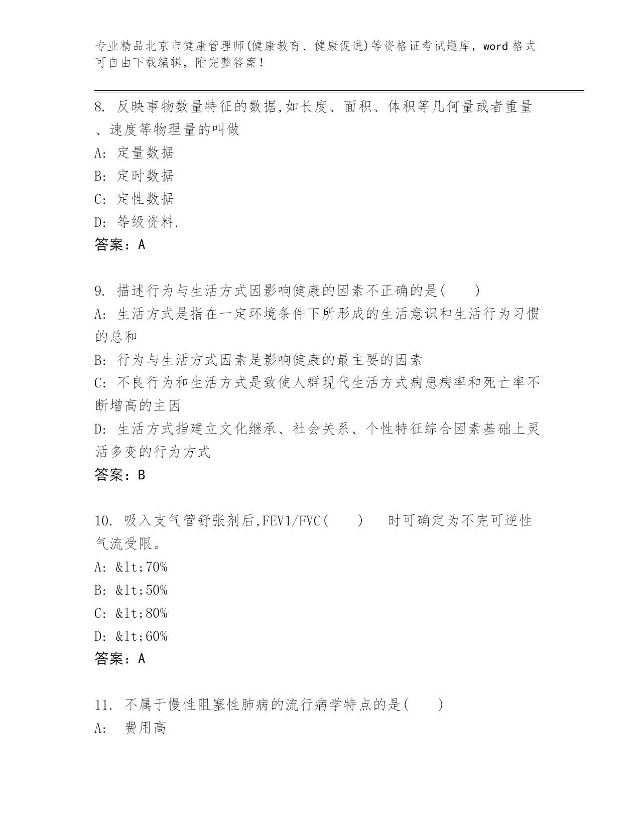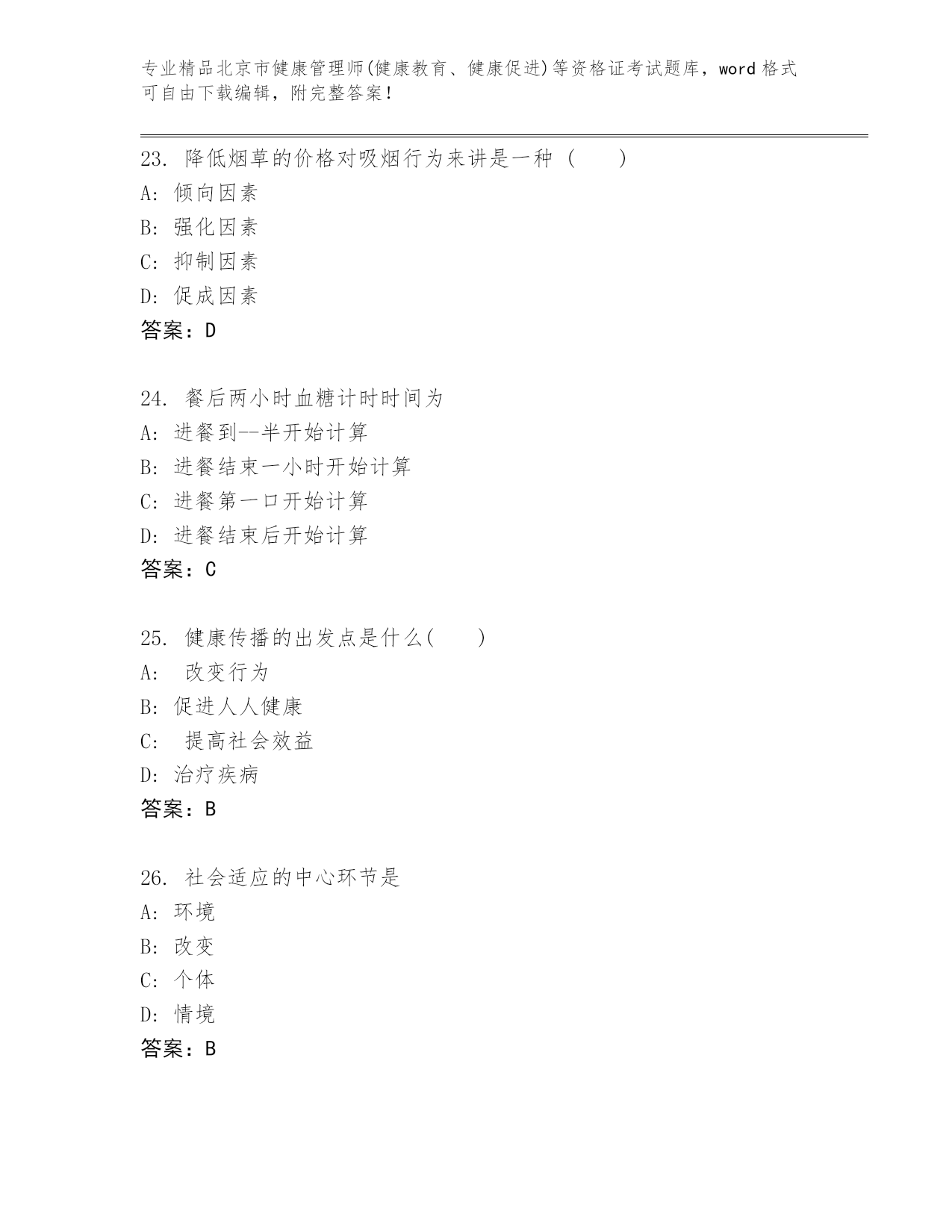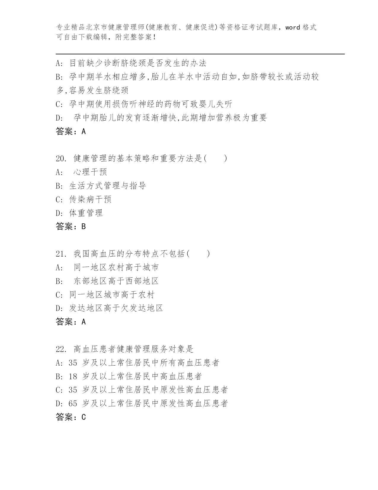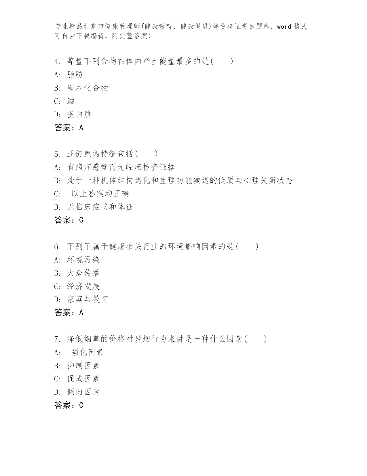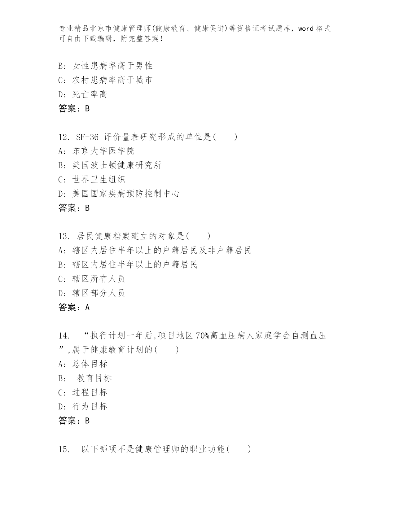 历年北京市健康管理师(健康教育、健康促进)等资格证考试优选题库通用